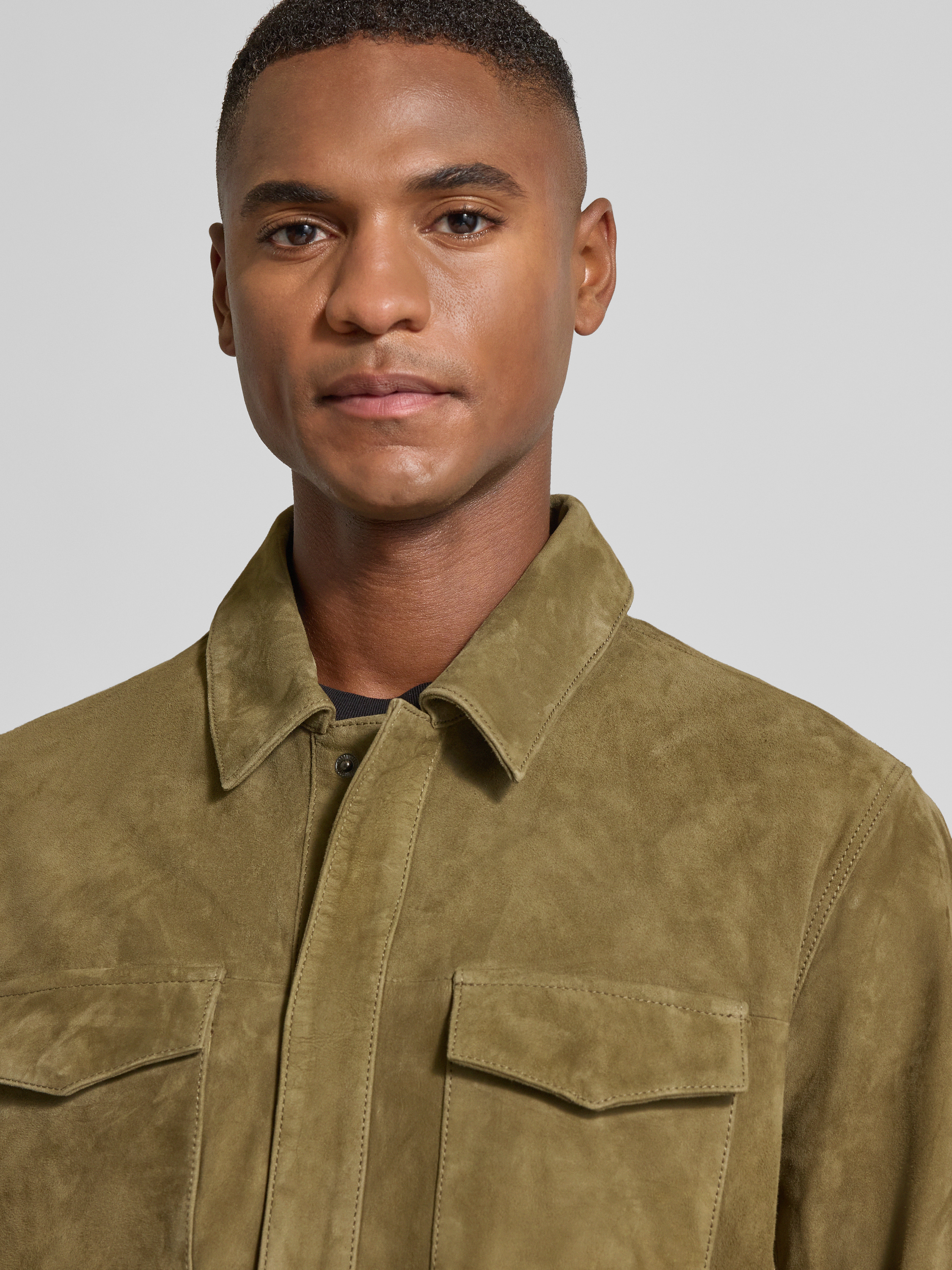 Slim fit overhemdjack van echt geitenleer, model 'Overshirt' in groen