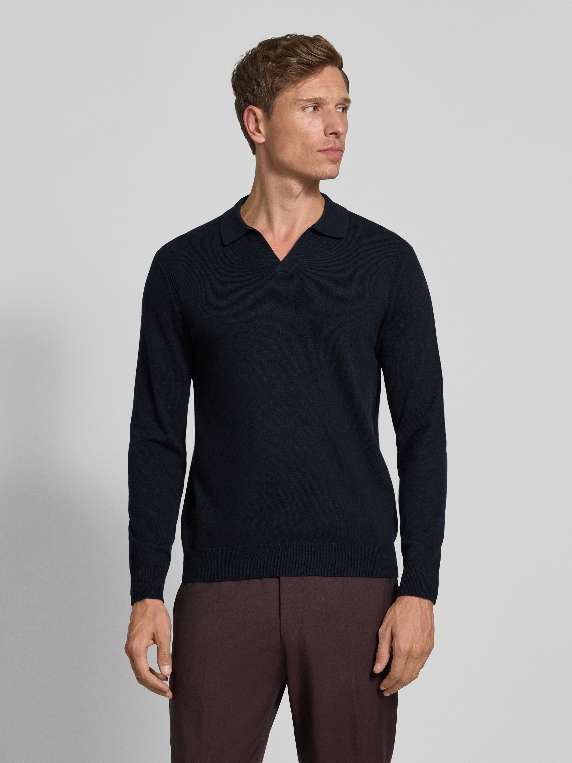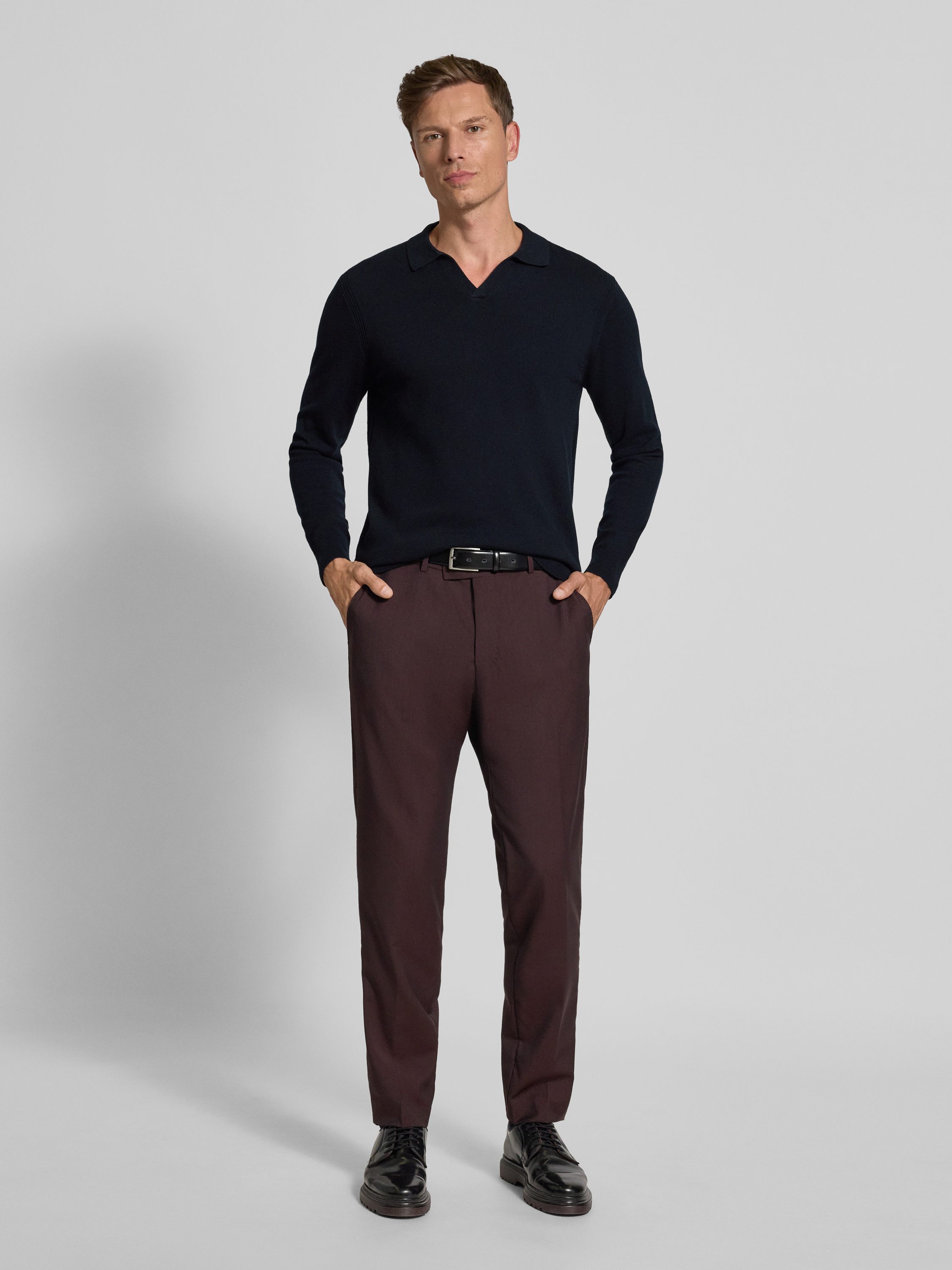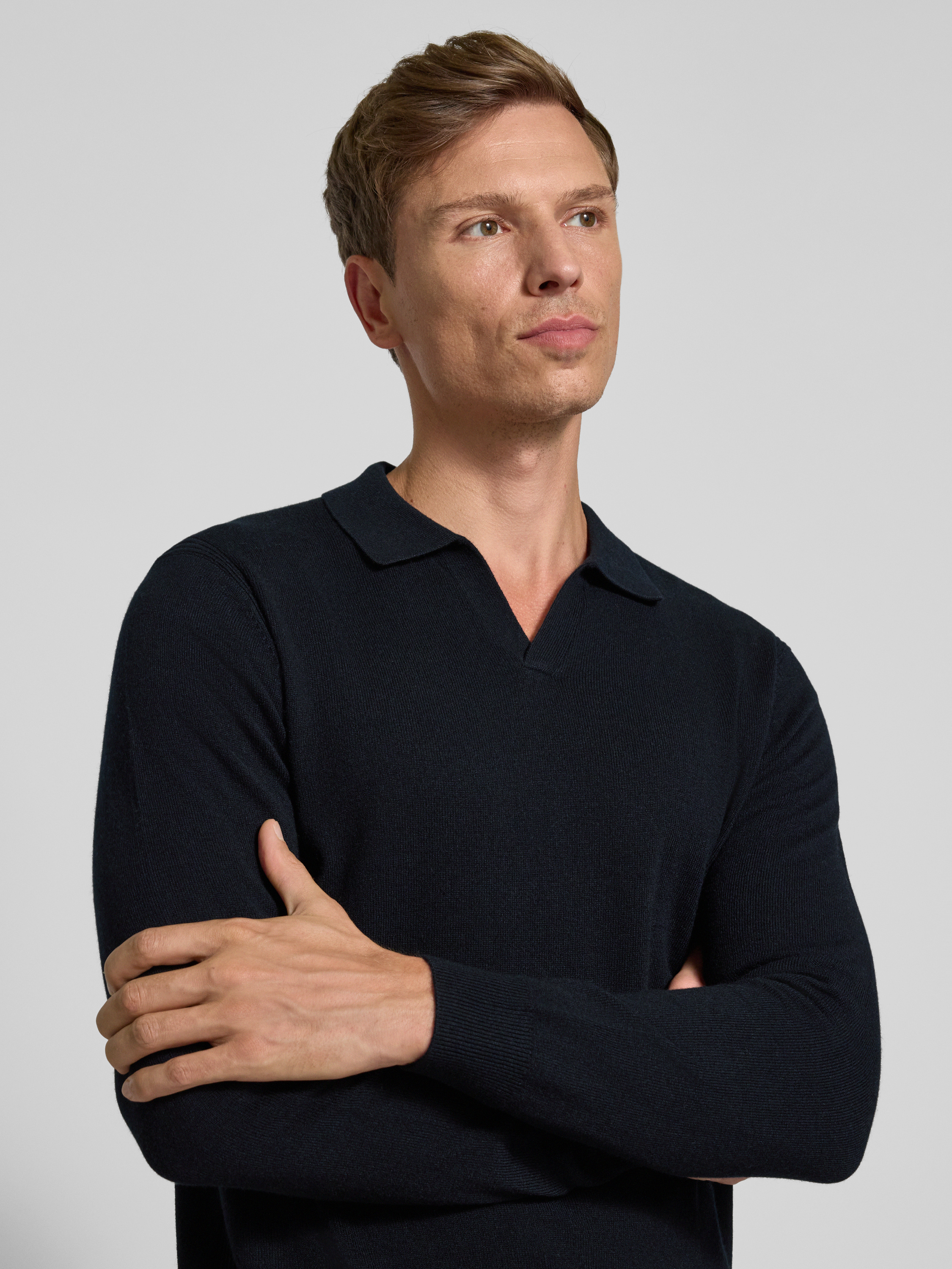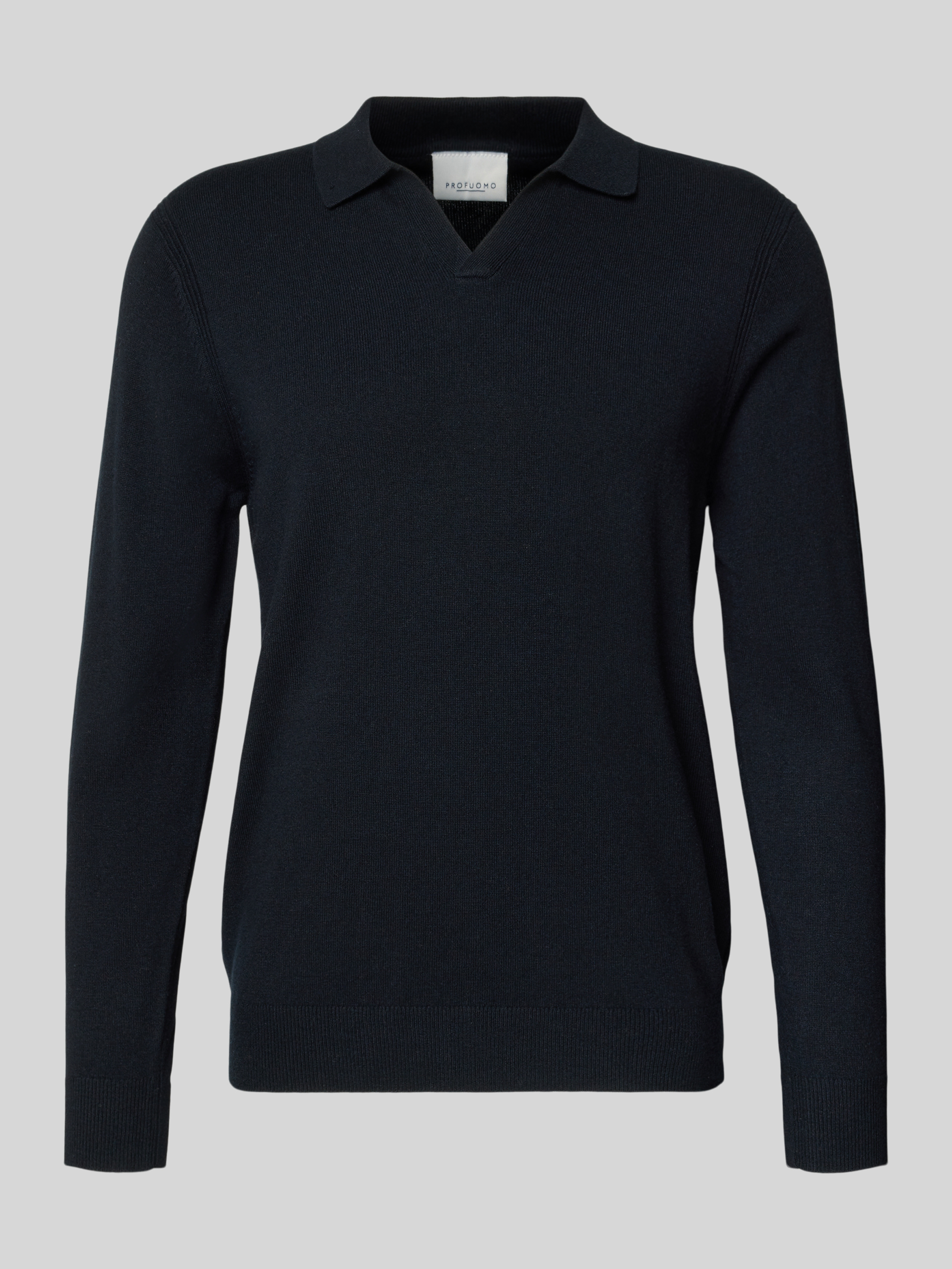 ProfuomoSlim fit poloshirt met V-hals in marineblauw