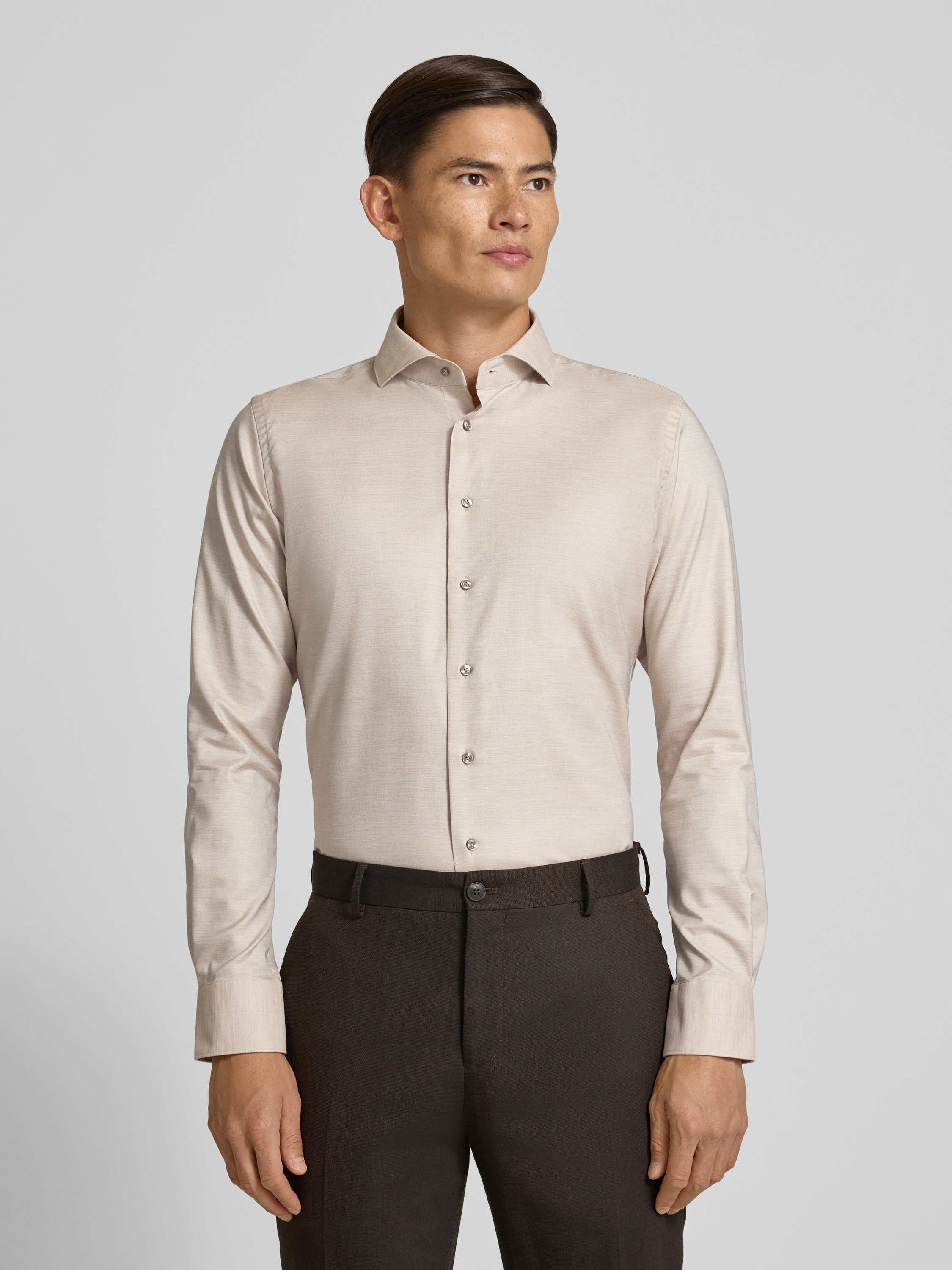 ProfuomoSlim fit zakelijk overhemd met haaikraag in zand