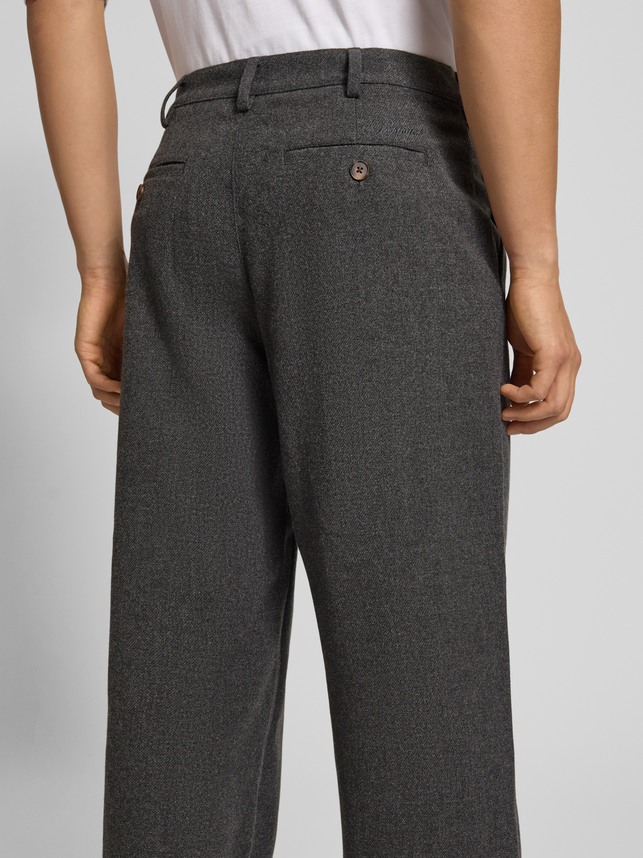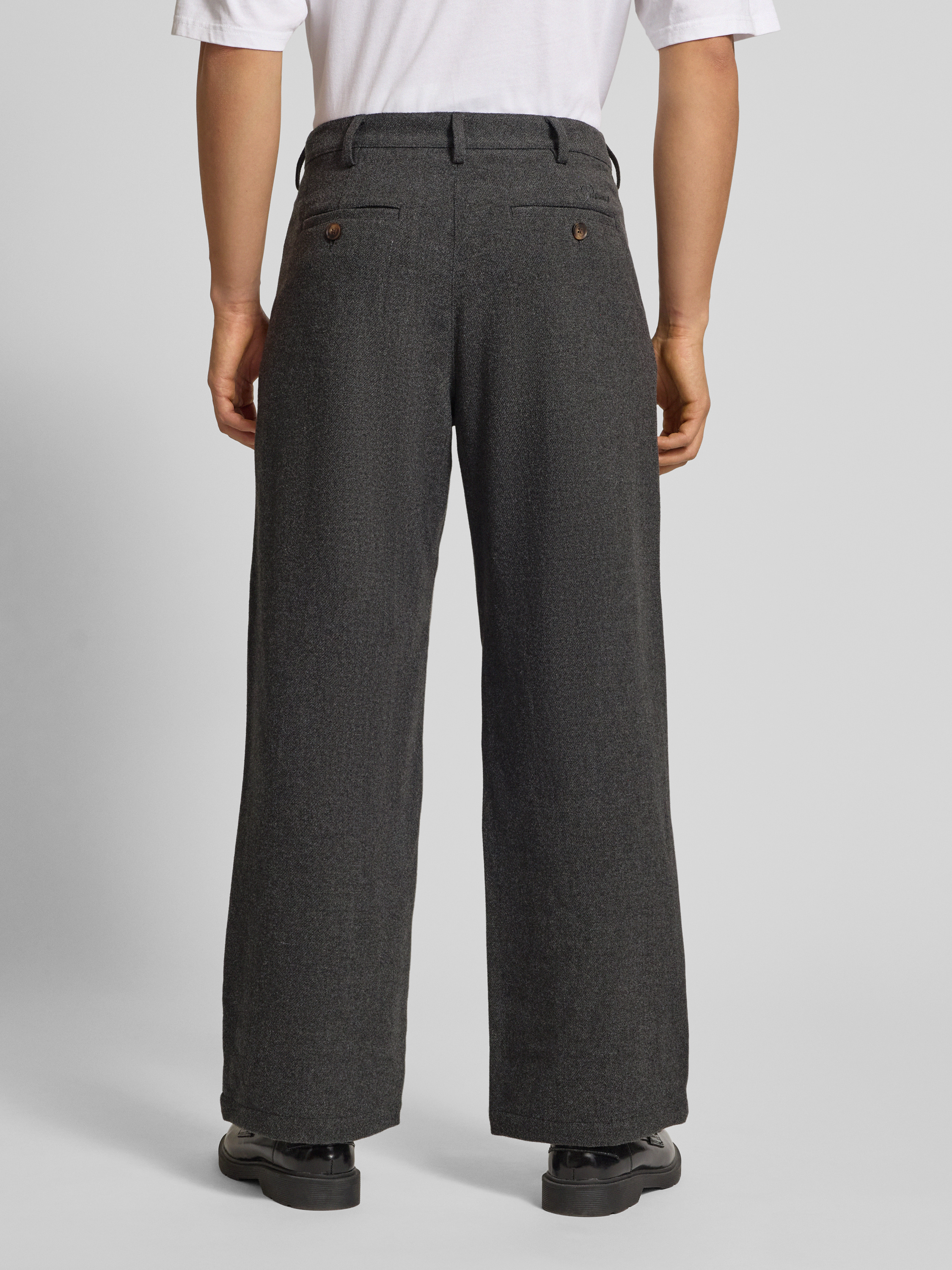 Broek met plooien en achterzakken in donkergrijs