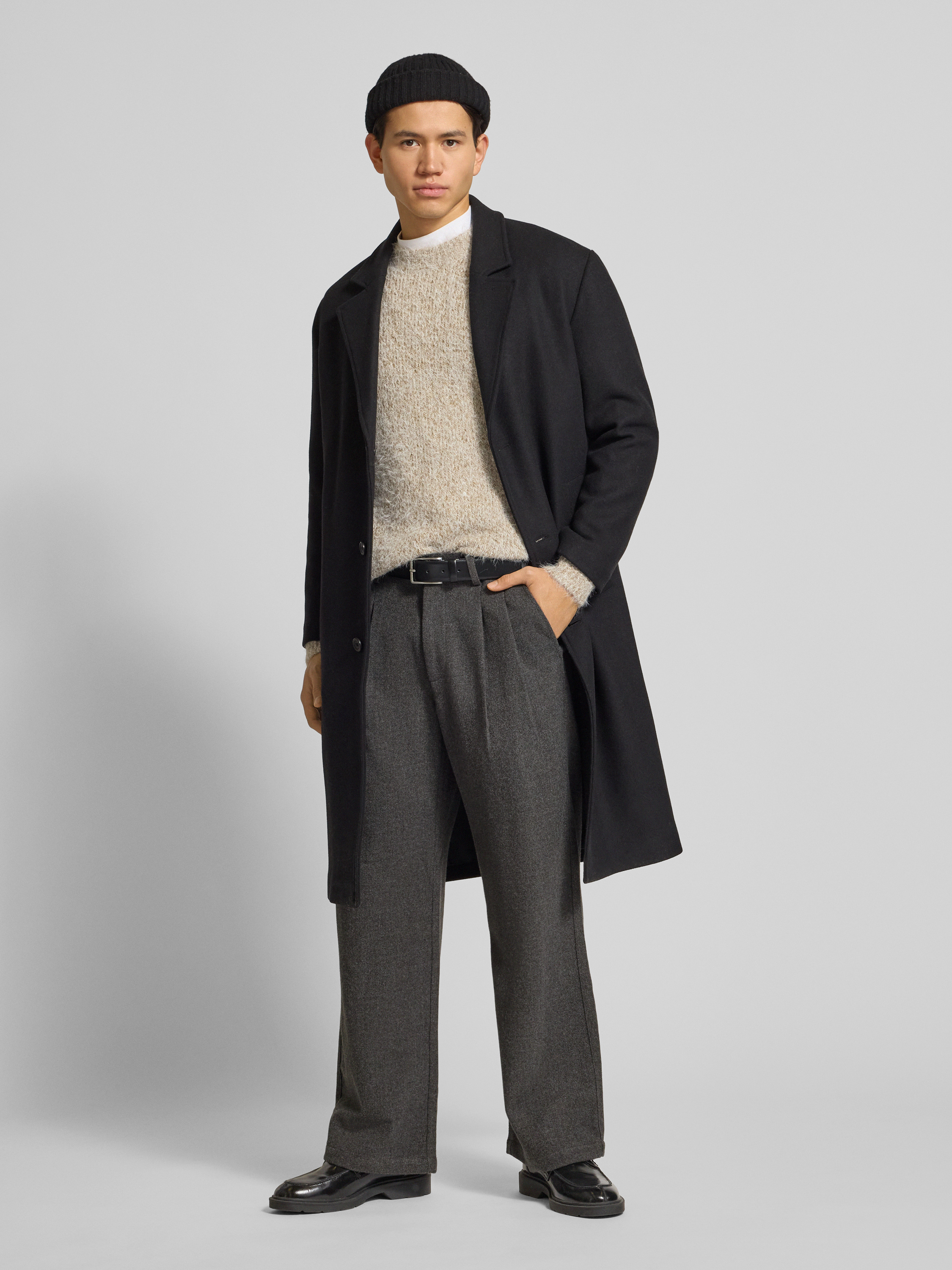 Relaxed fit lange wollen jas met reverskraag, model 'MILOS'