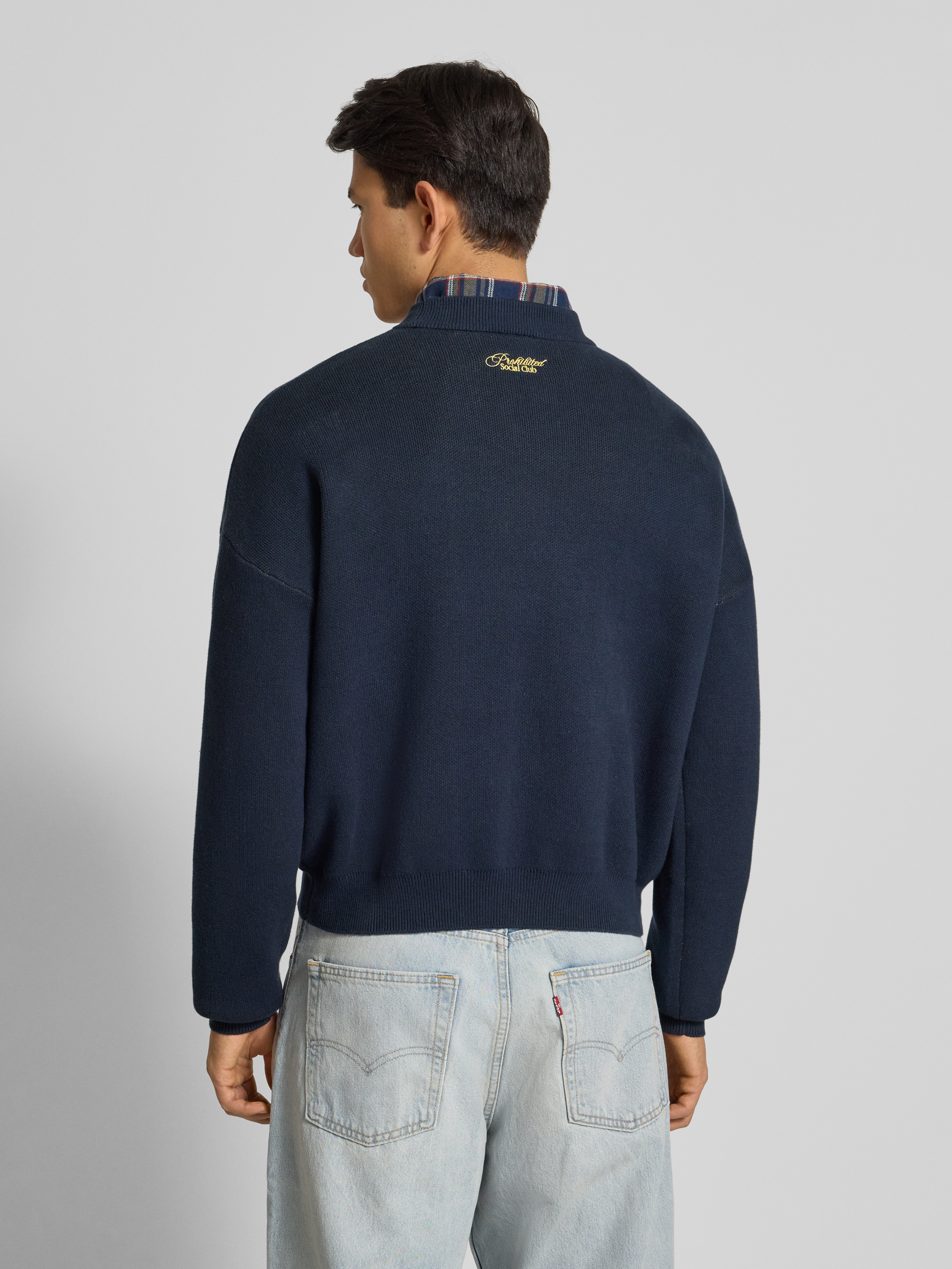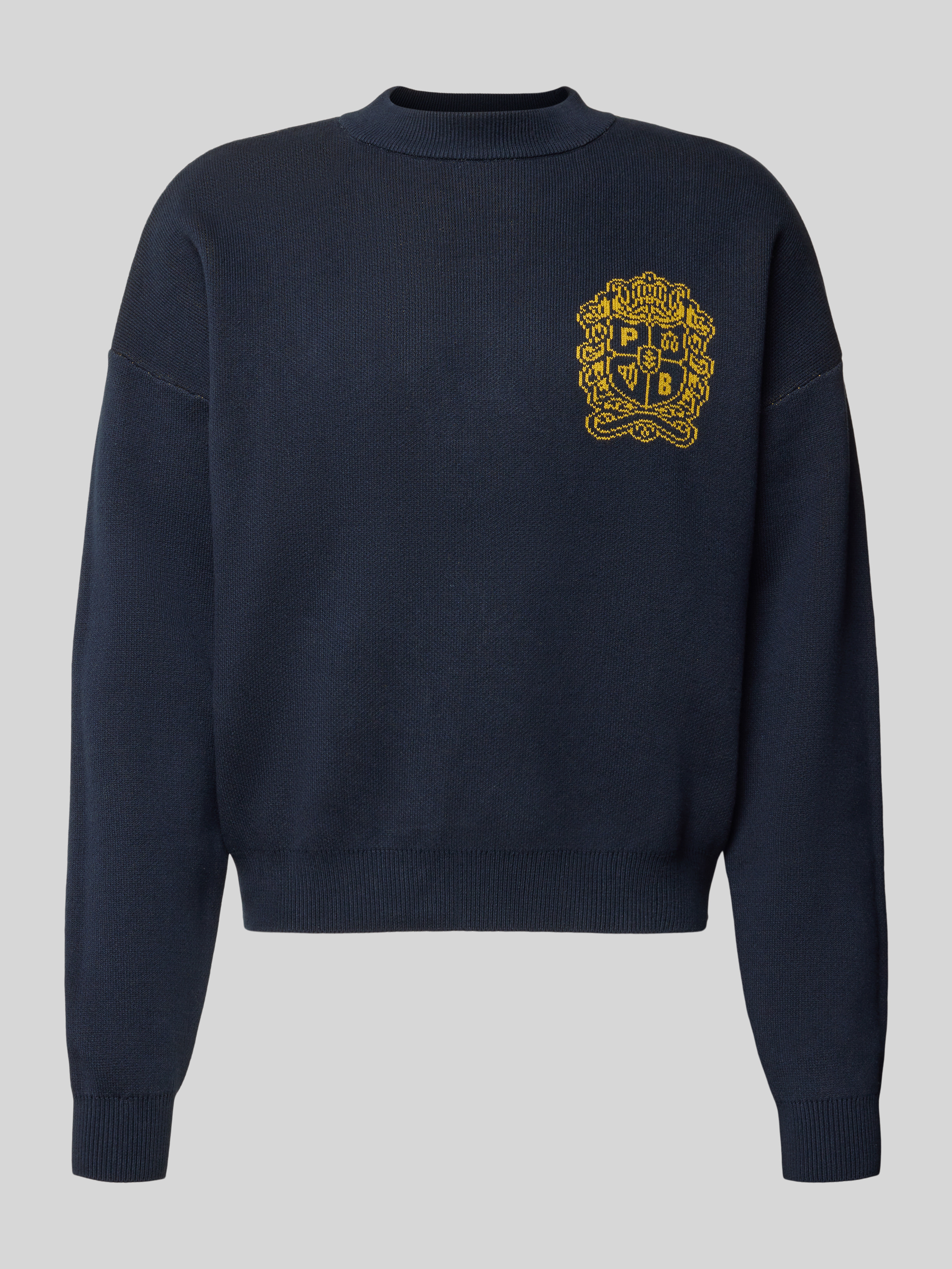 Gebreide pullover met embleem en ronde hals in marineblauw