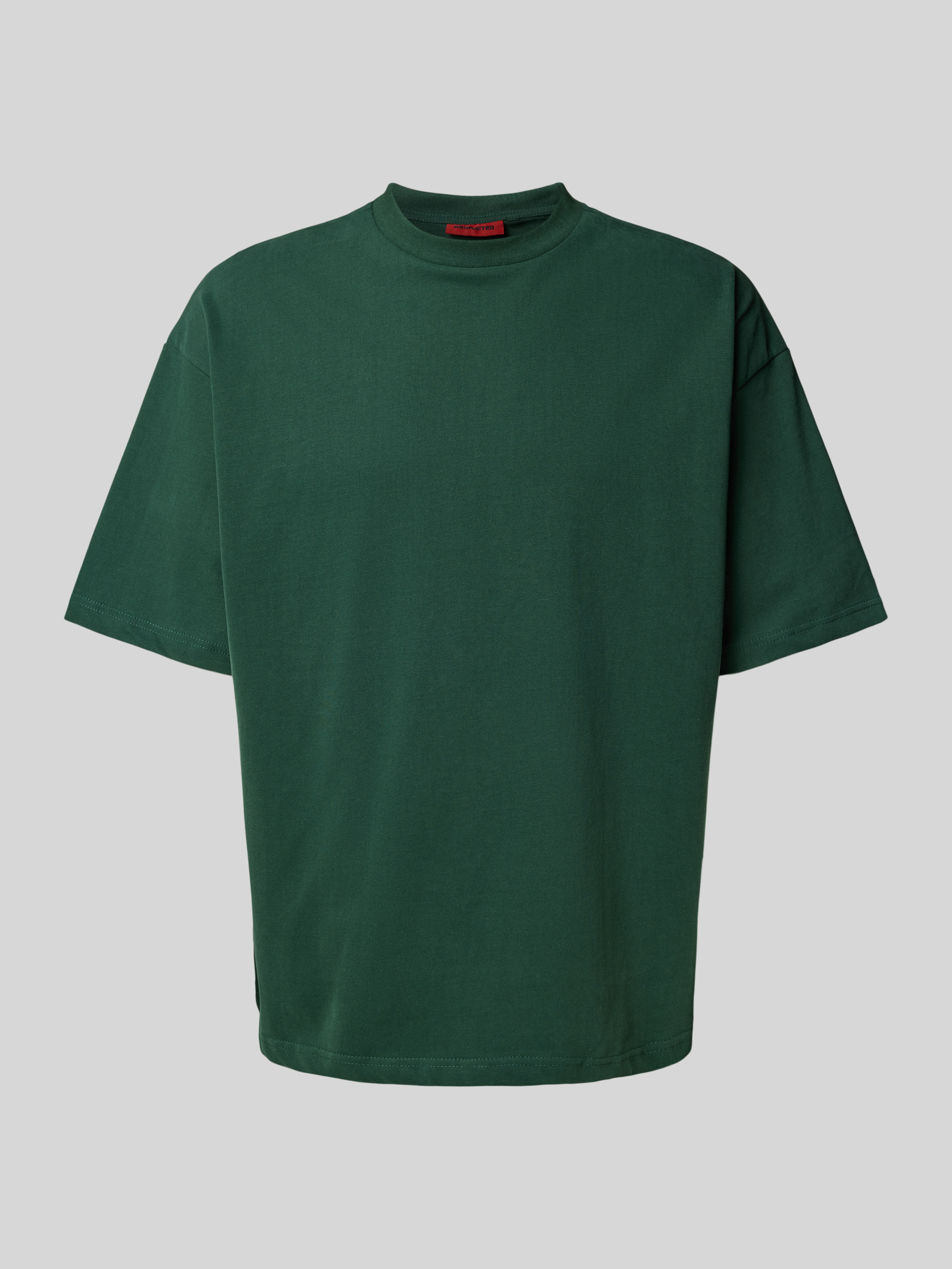 Oversized T-shirt met geribde ronde hals in donkergroen