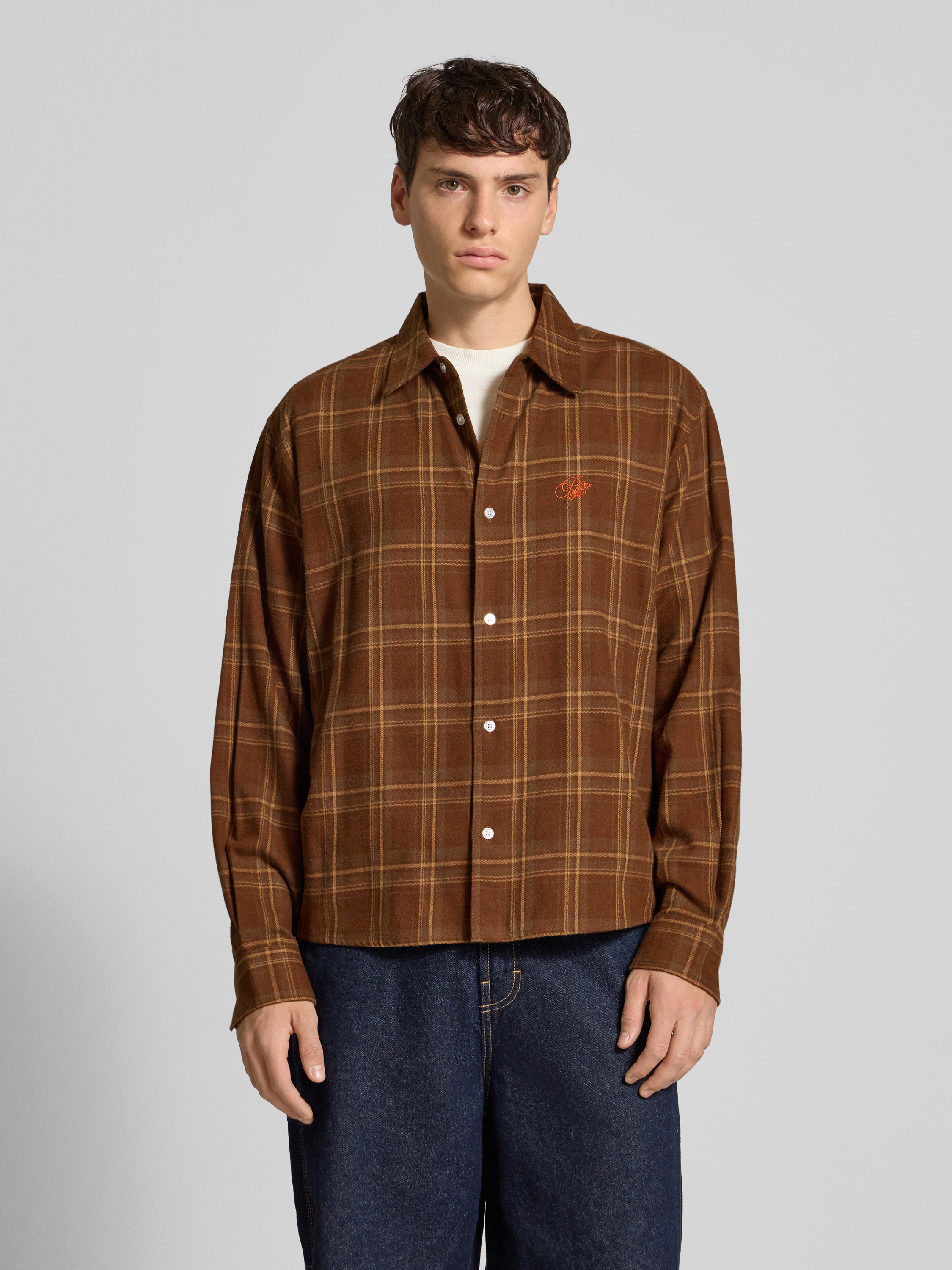 Vrijetijdsoverhemd met knoopsluiting in donkerbruin