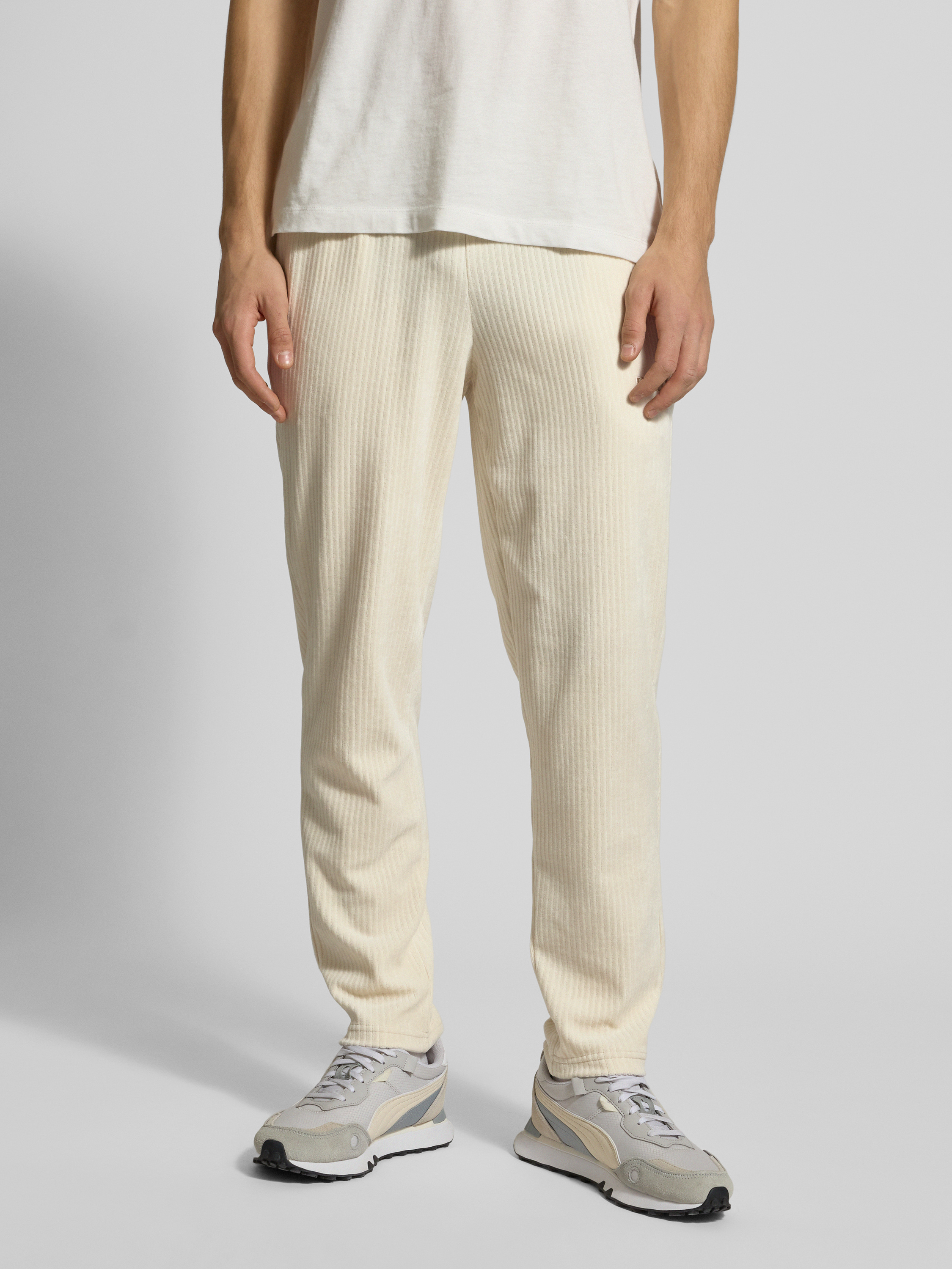 Corduroy broek met elastische band in offwhite