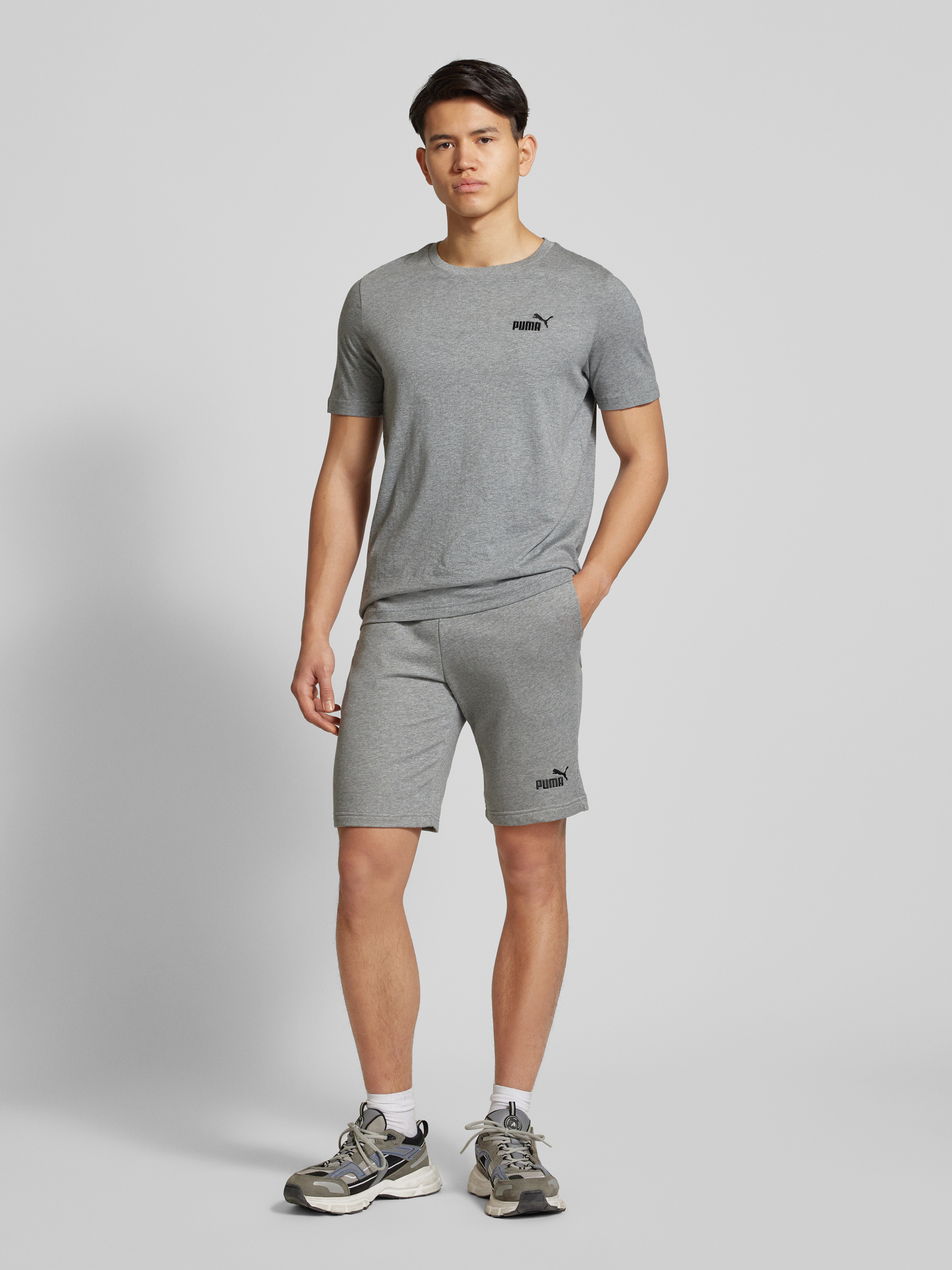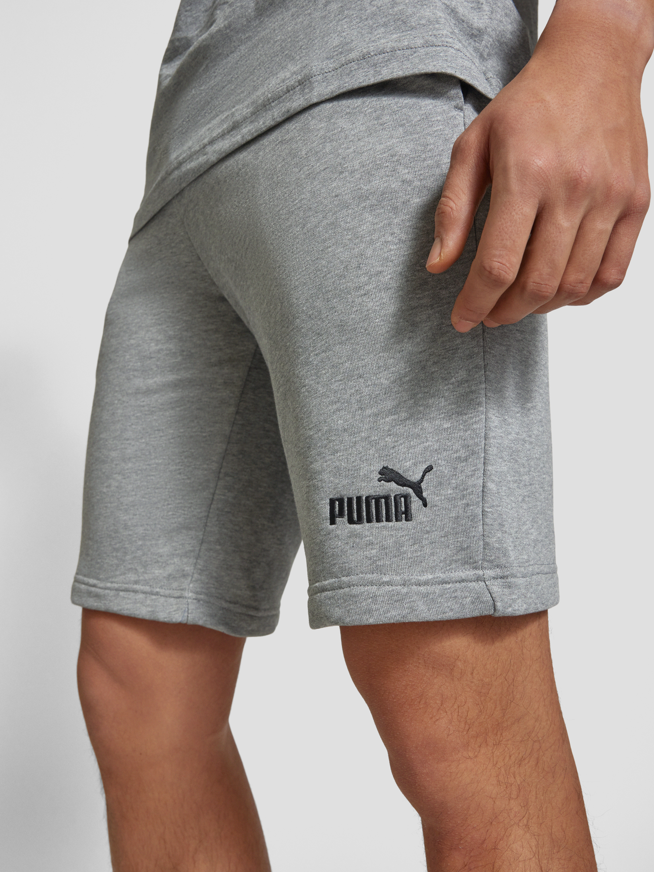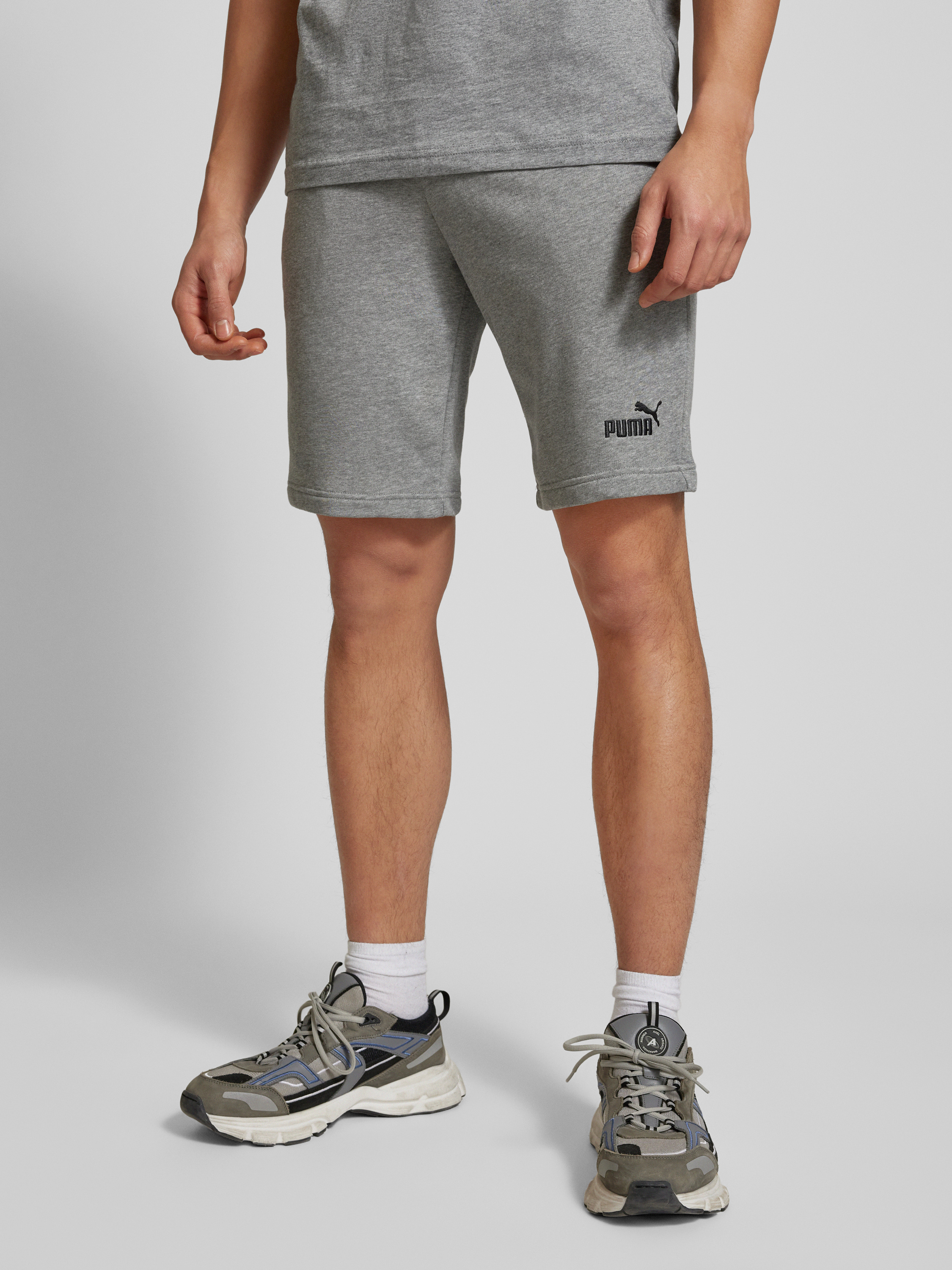 Regular fit sweatshorts met labelstitching, model 'ESS No. 1' in middengrijs gemêleerd