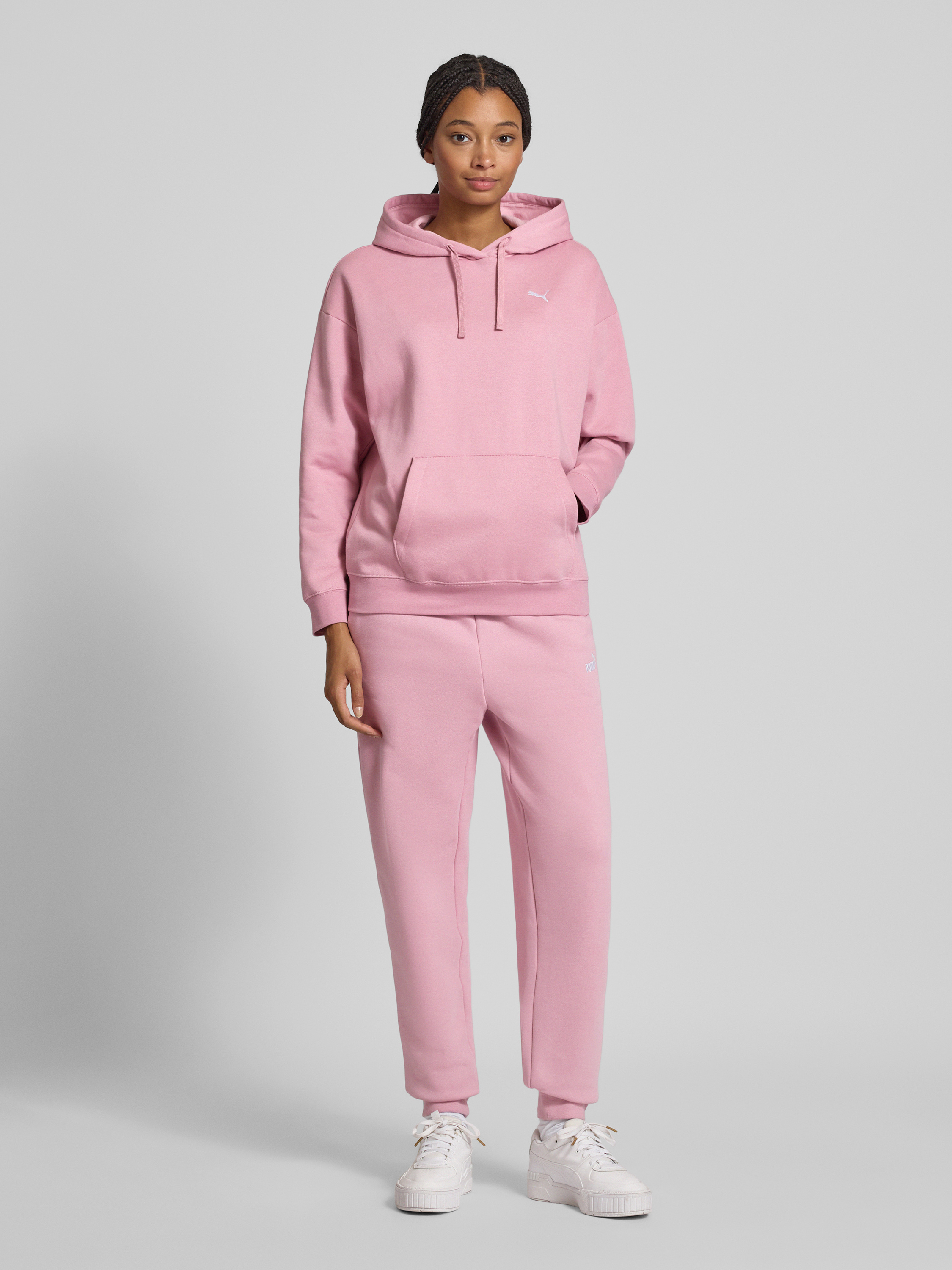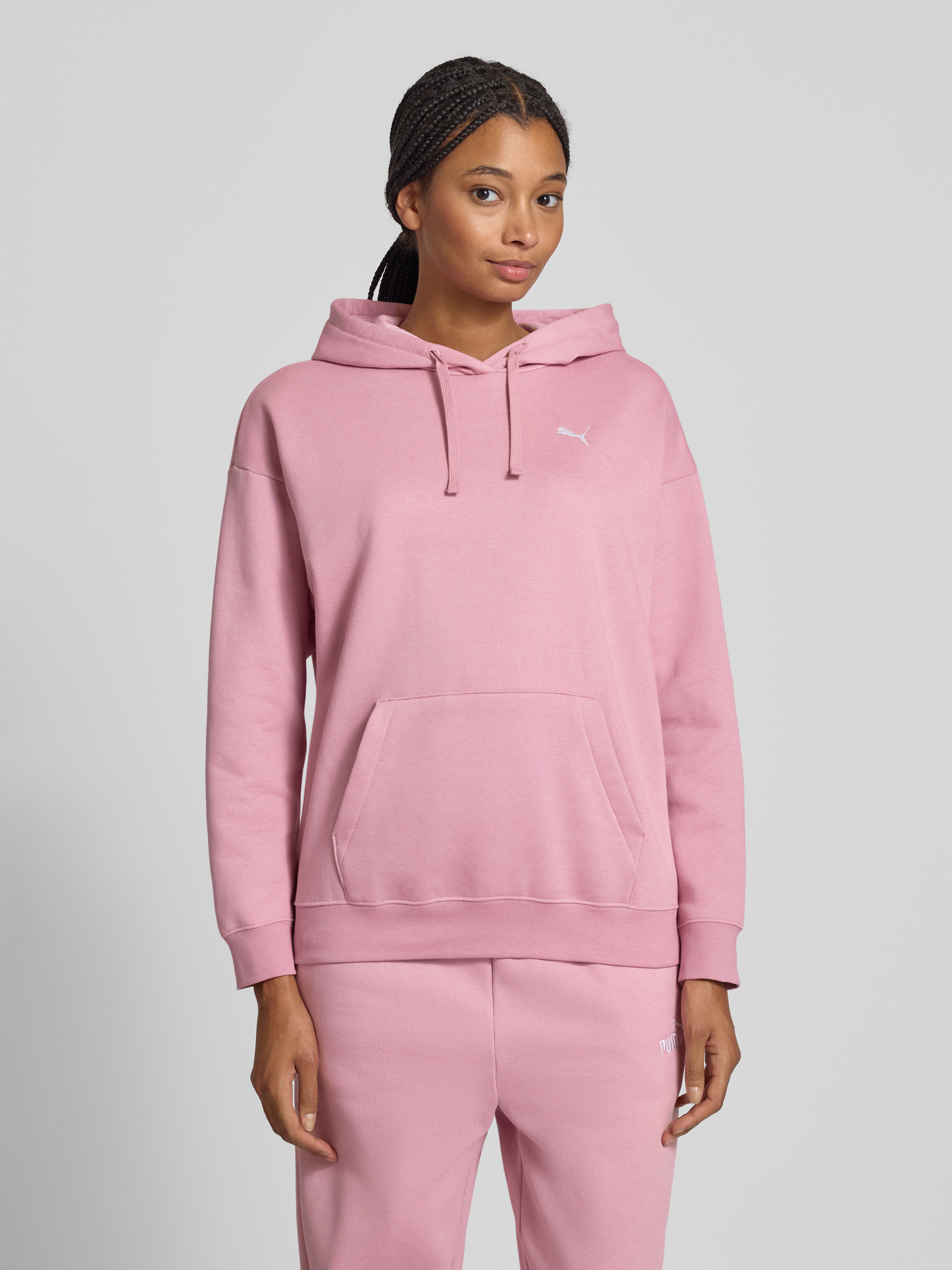 Relaxed fit hoodie met labelstitching en kangoeroezak in roze