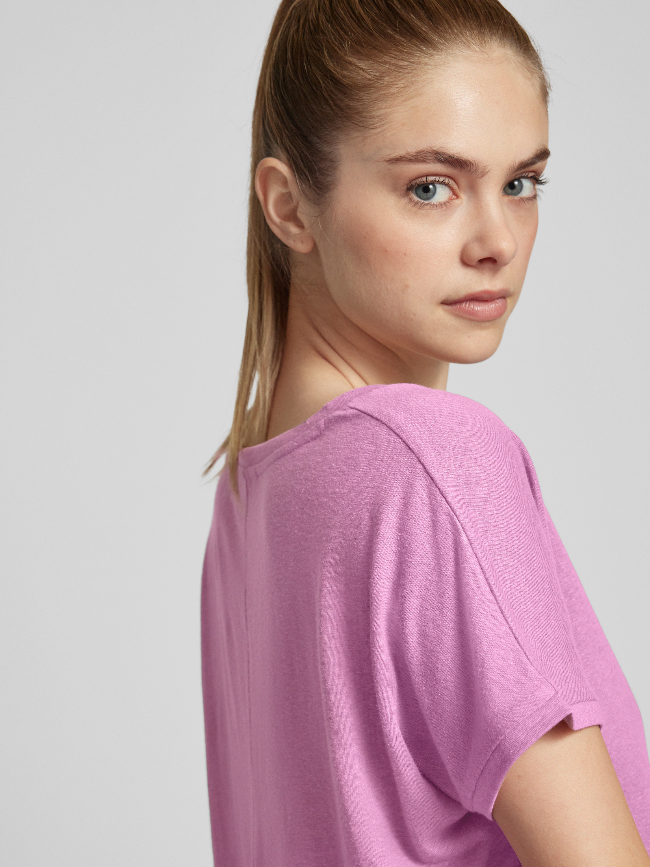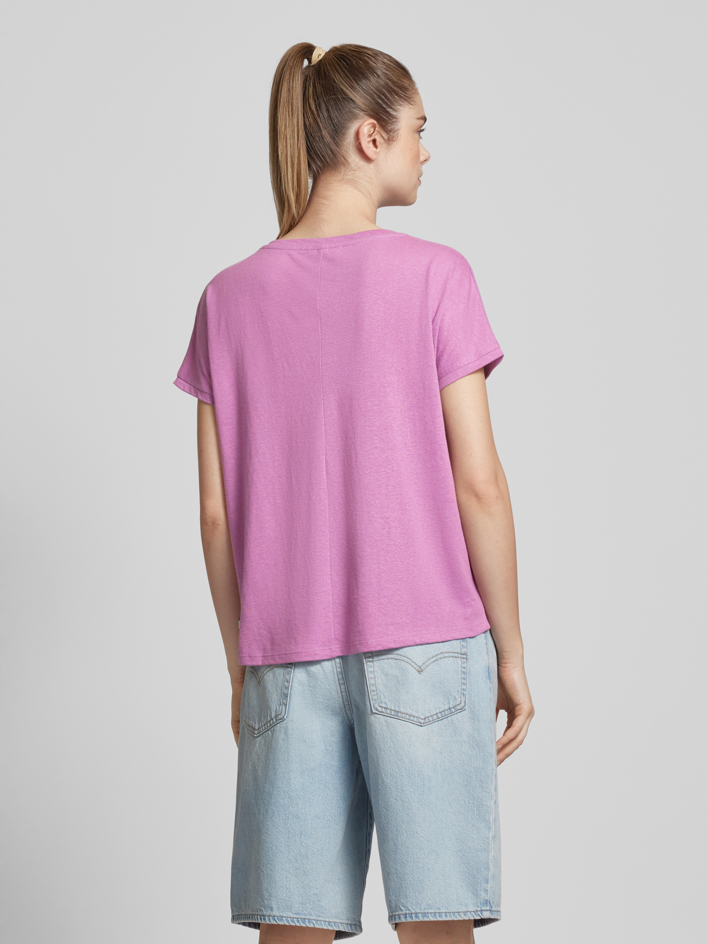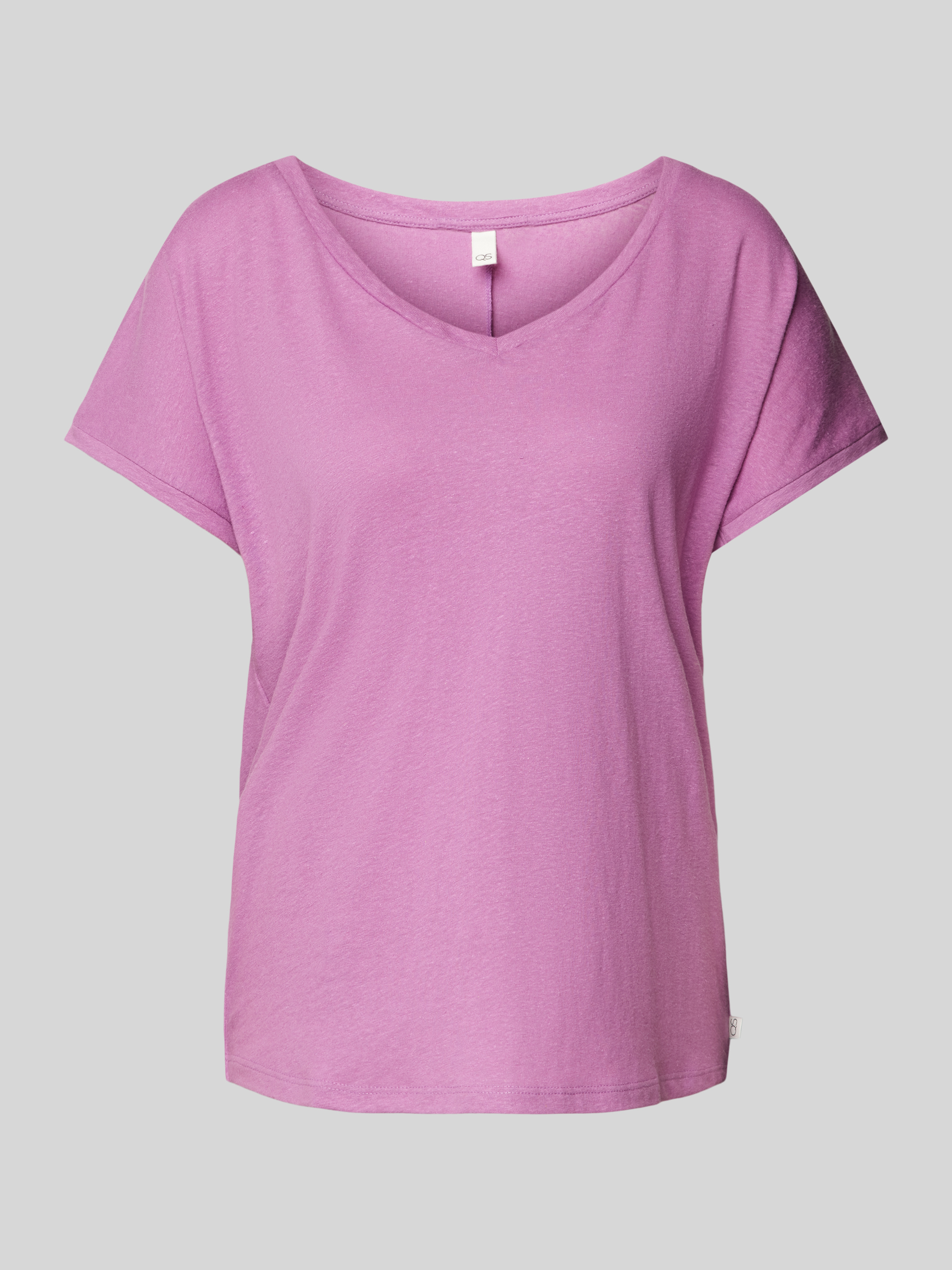 Linnen T-shirt met V-hals in felroze