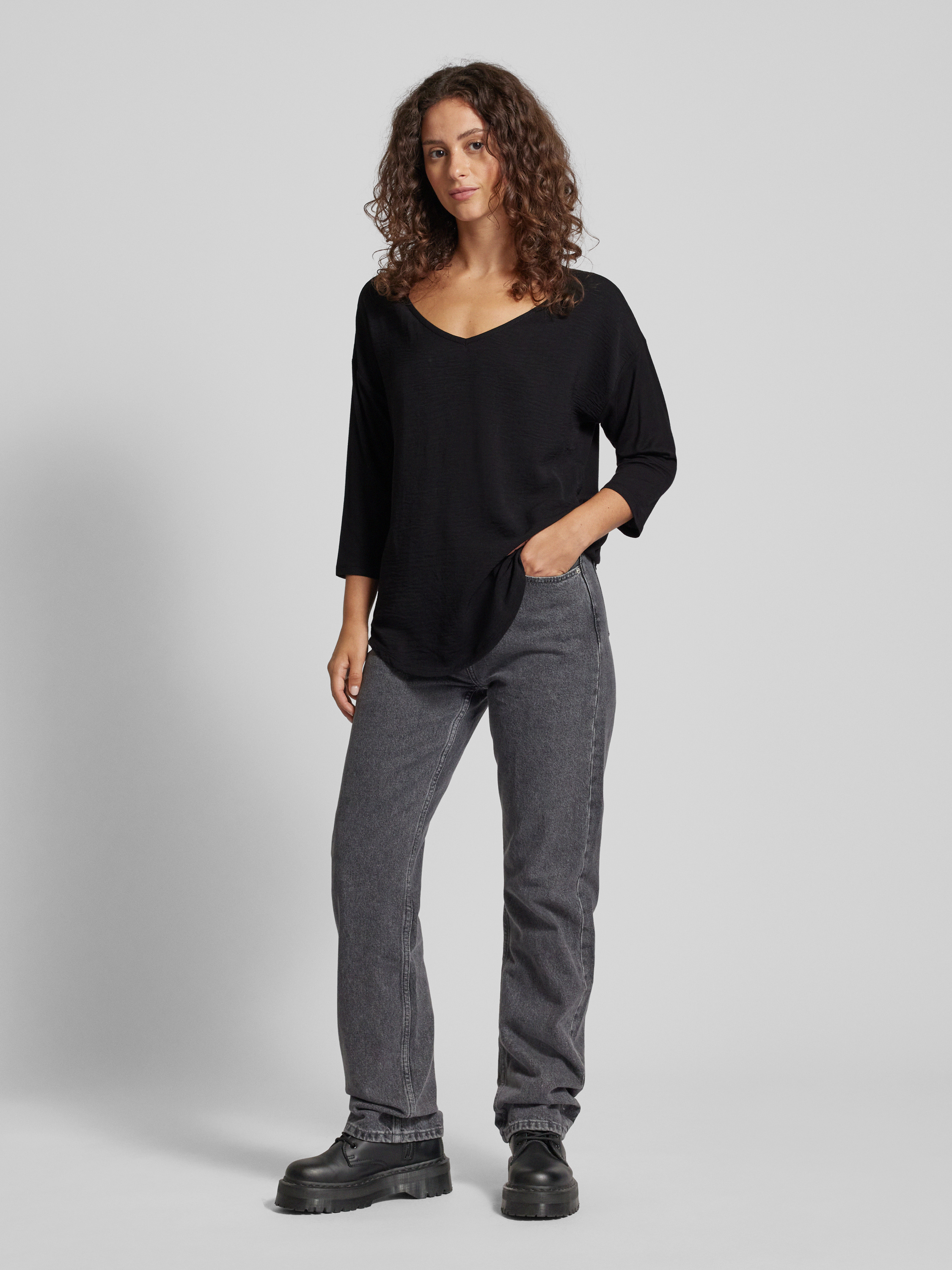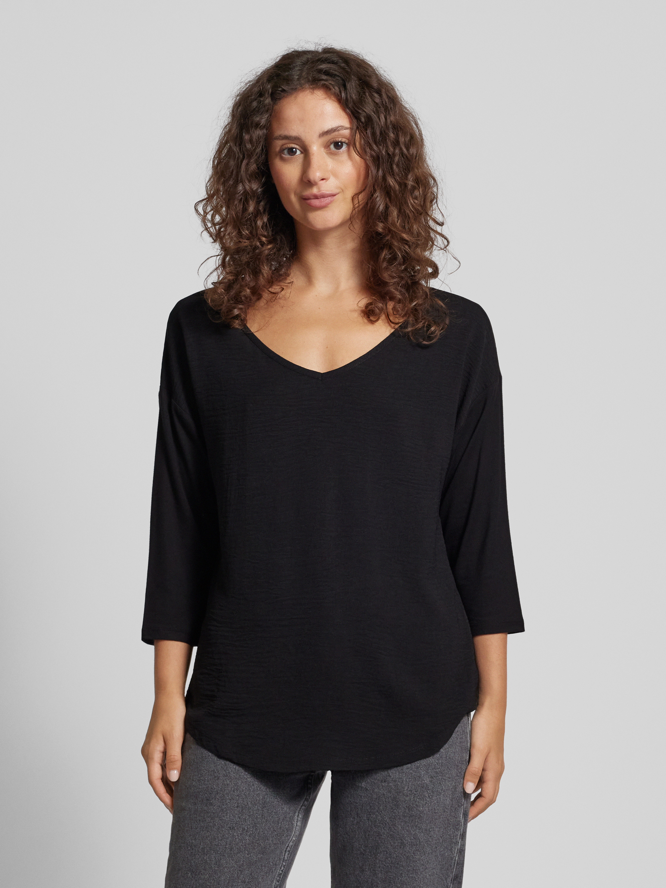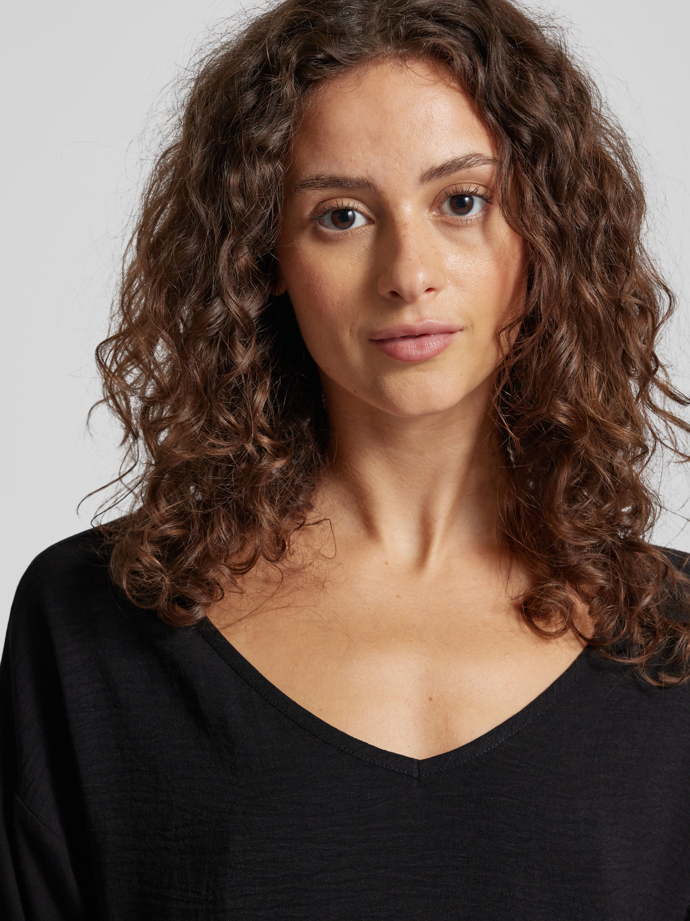 Shirt met 3/4-mouwen en extra brede schouders in zwart