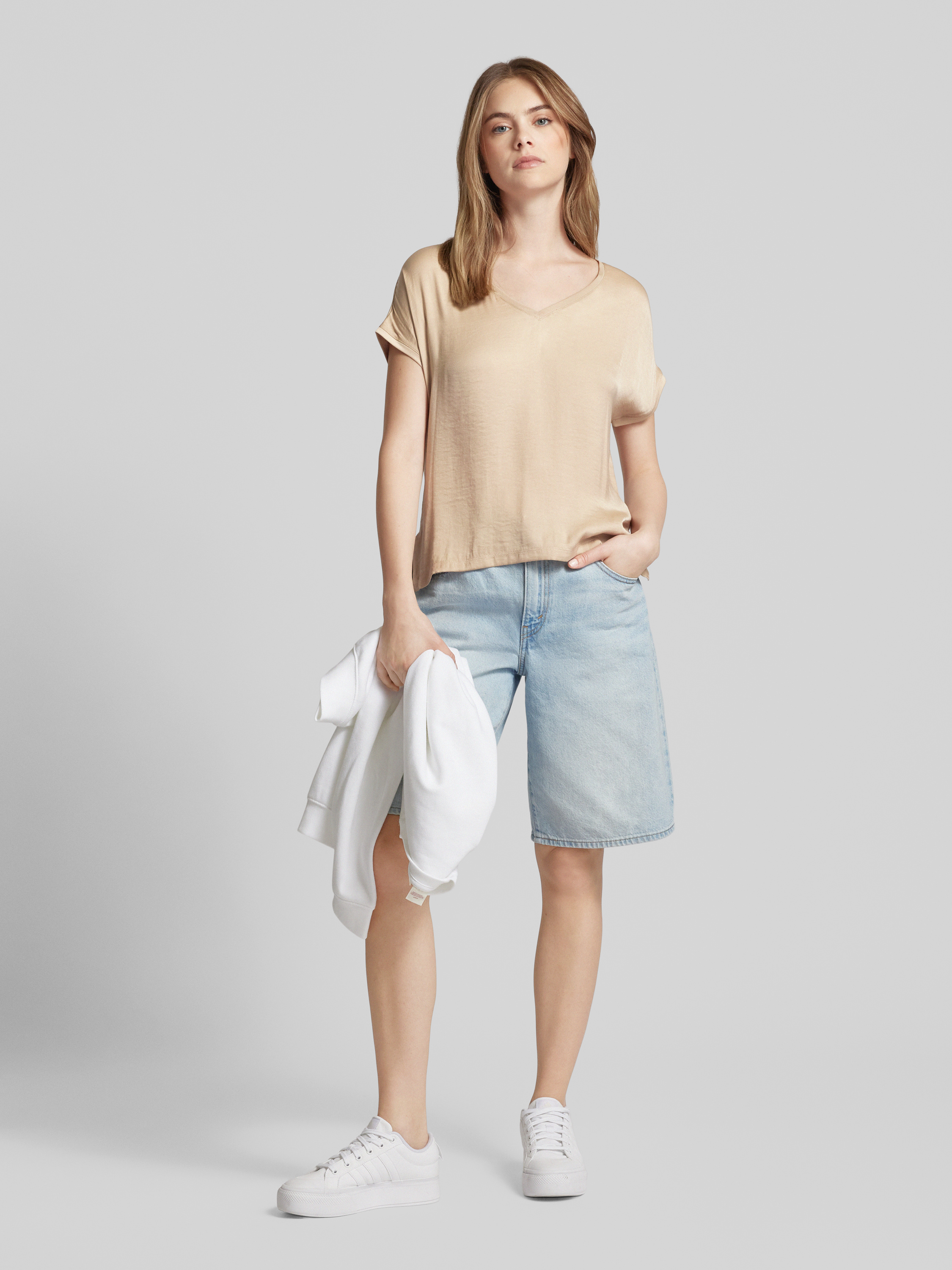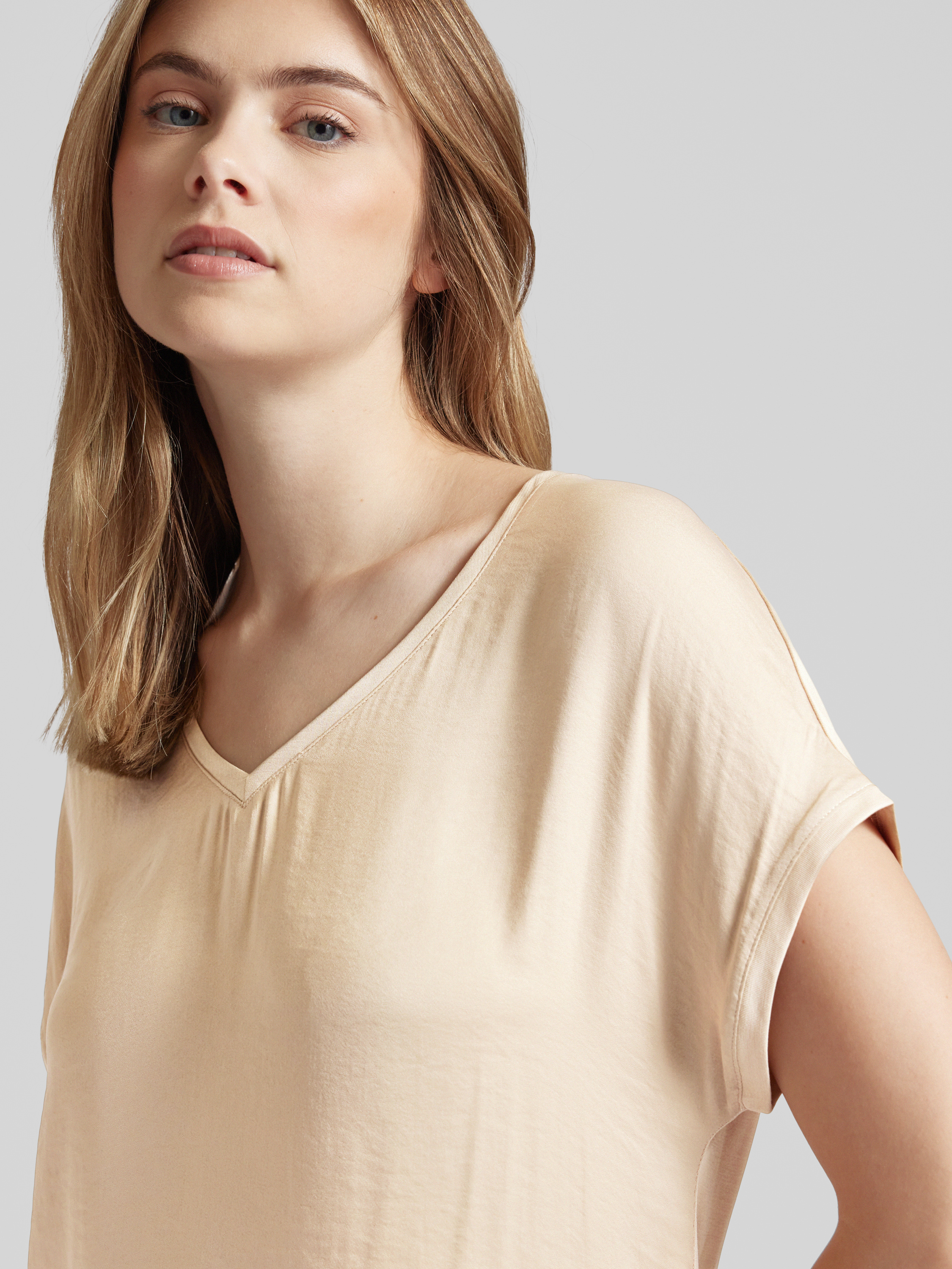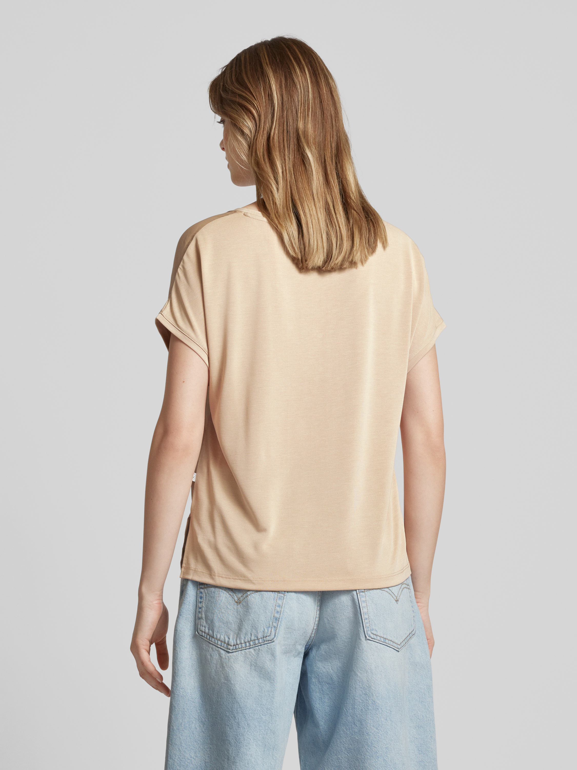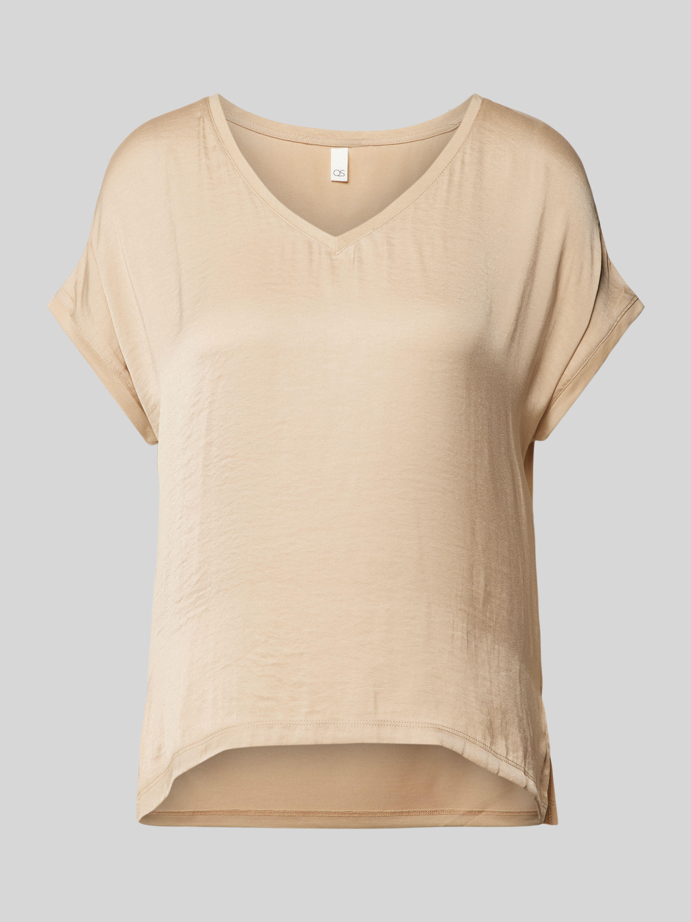 T-shirt met afgeronde V-hals in beige