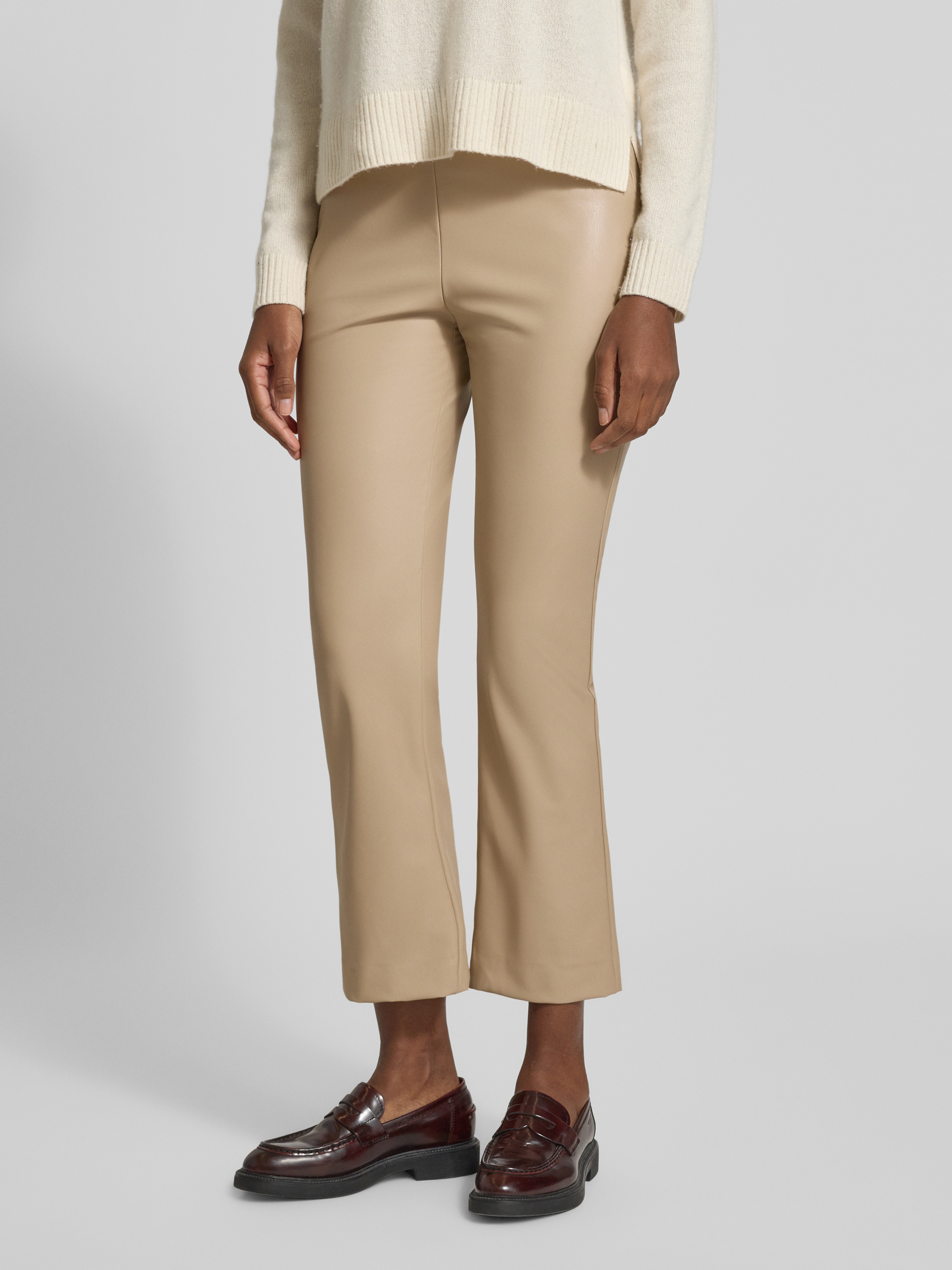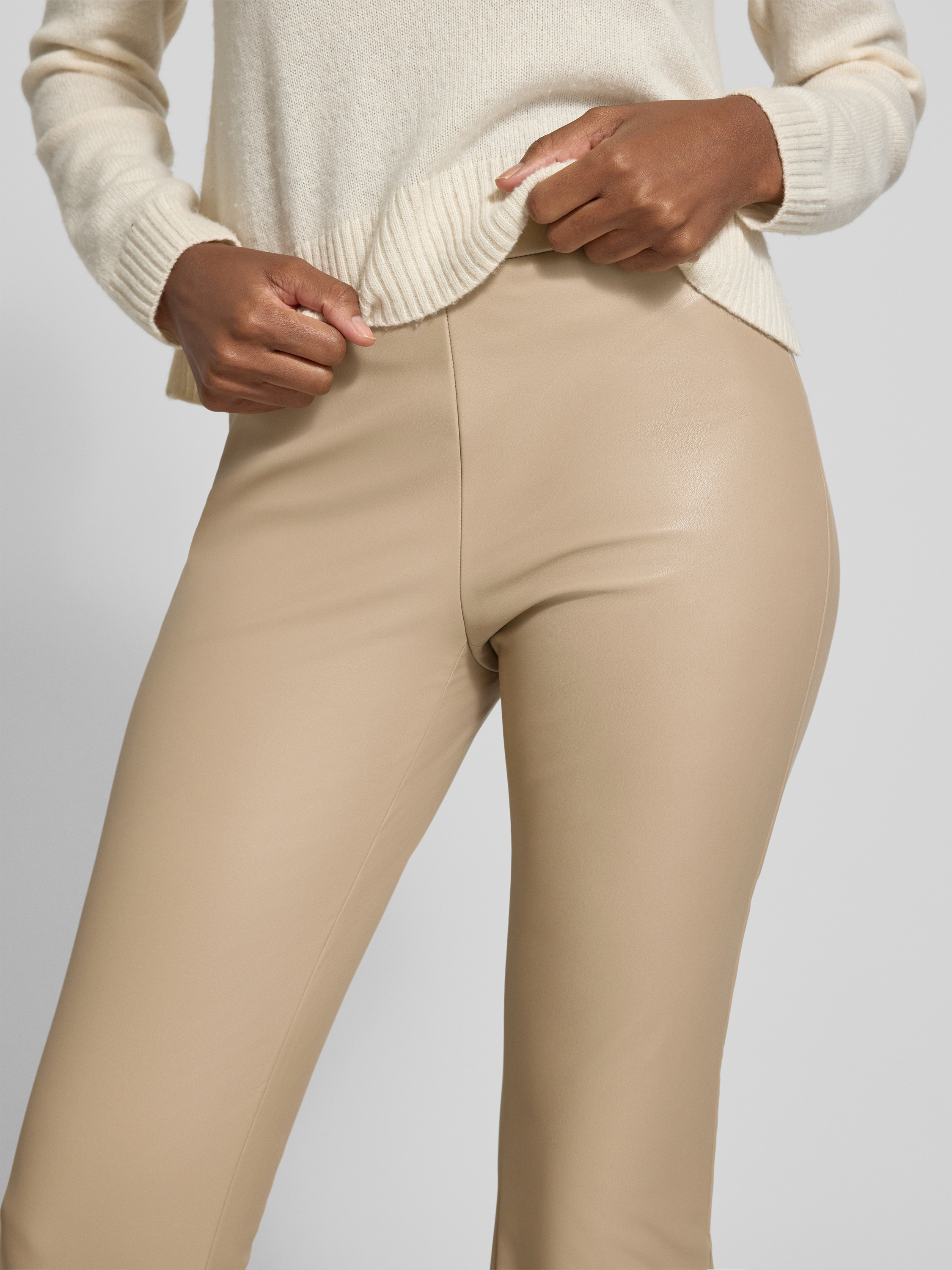 Flared bootcut broek in leerlook, model 'MACY' in zand