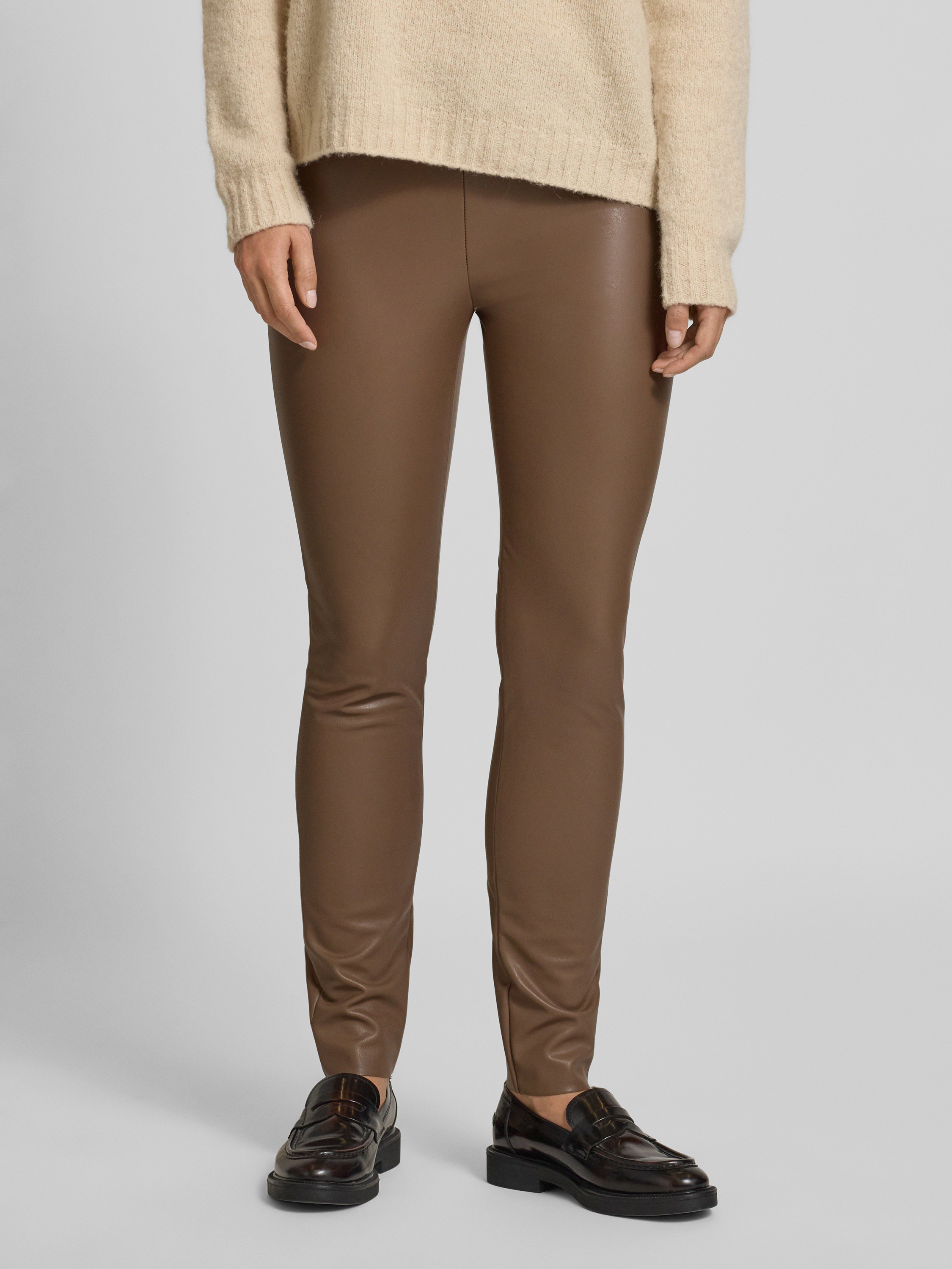 Skinny fit broek in leerlook, model 'RESA' in lichtbruin