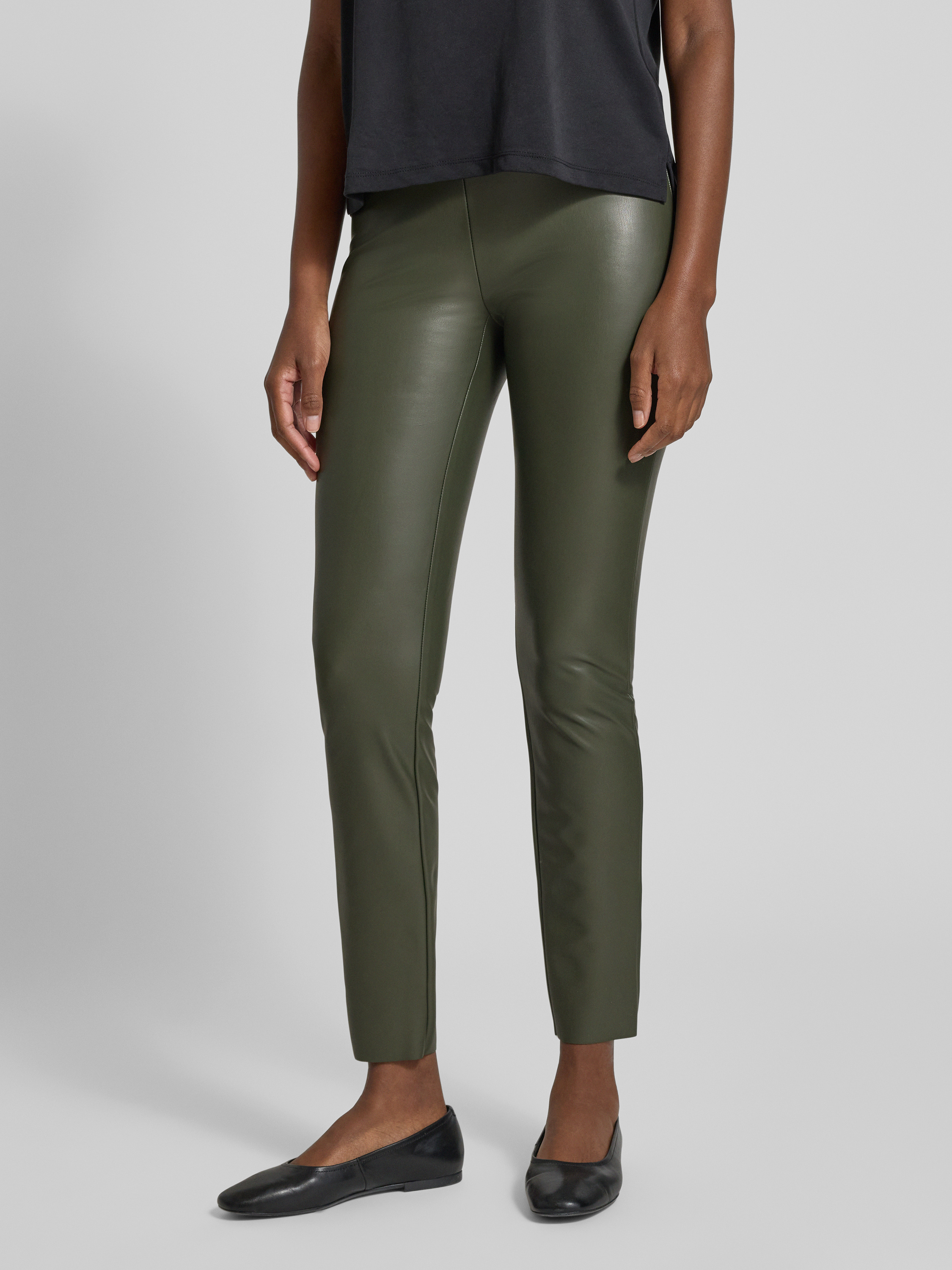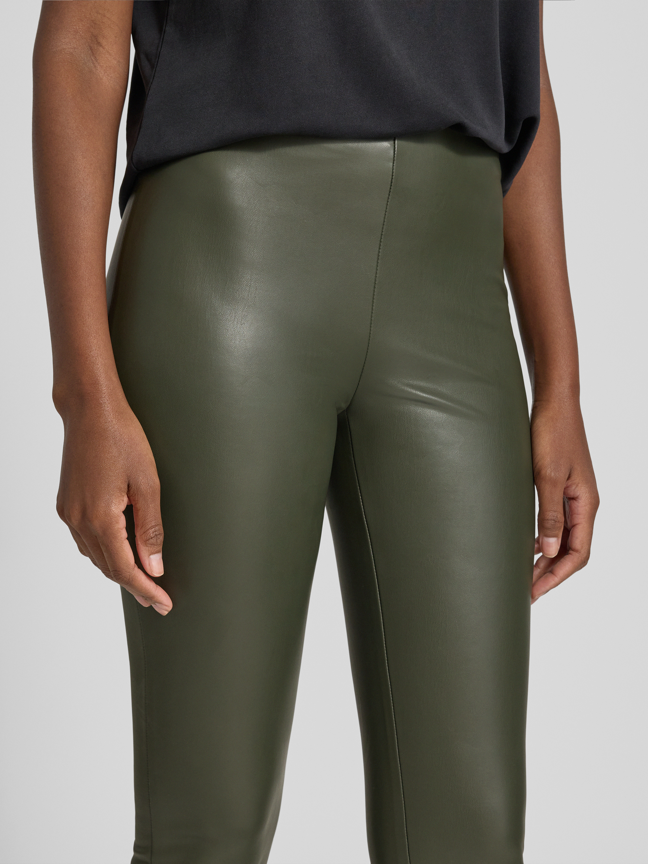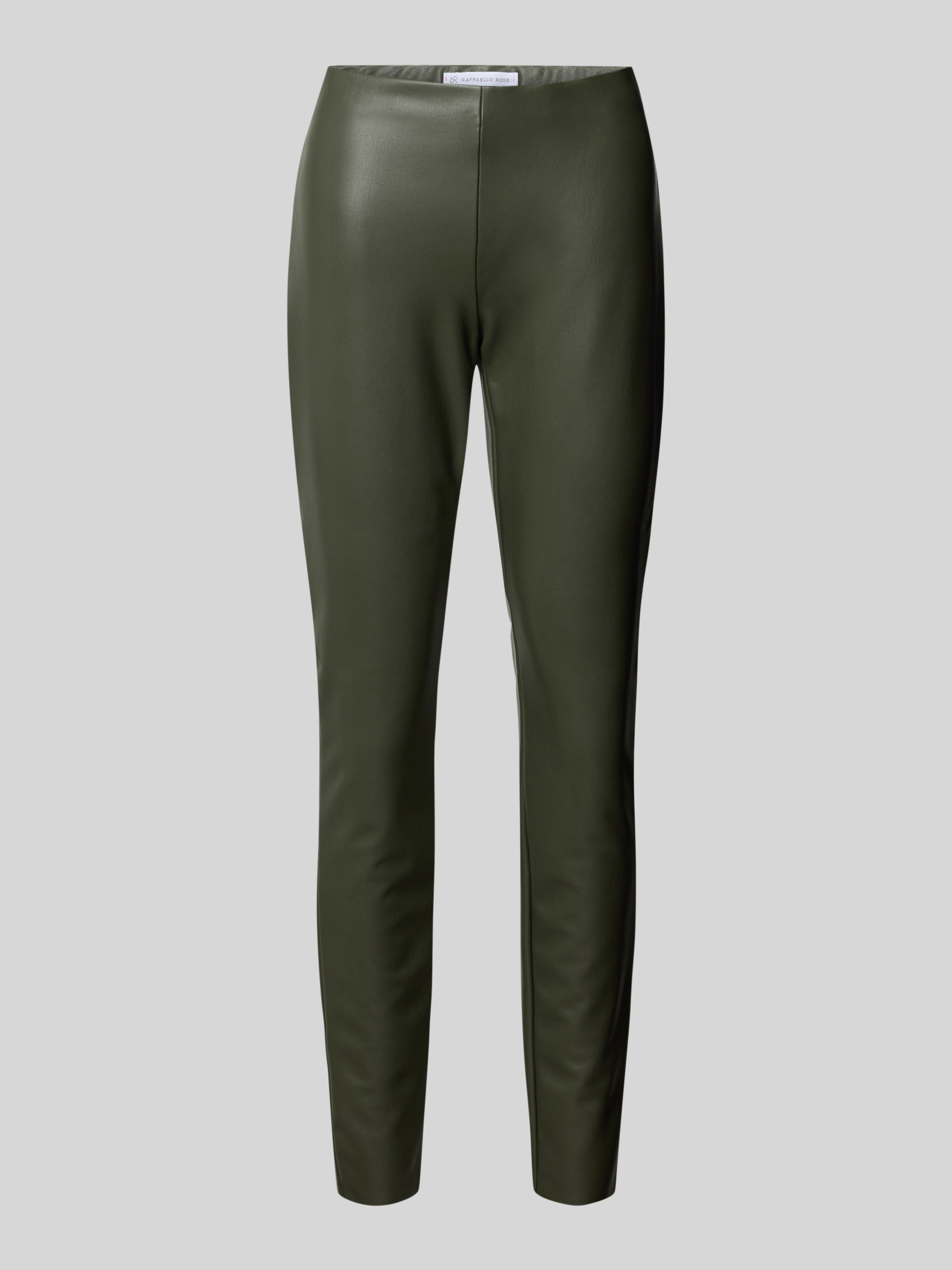 Skinny fit broek in leerlook, model 'RESA' in olijfgroen