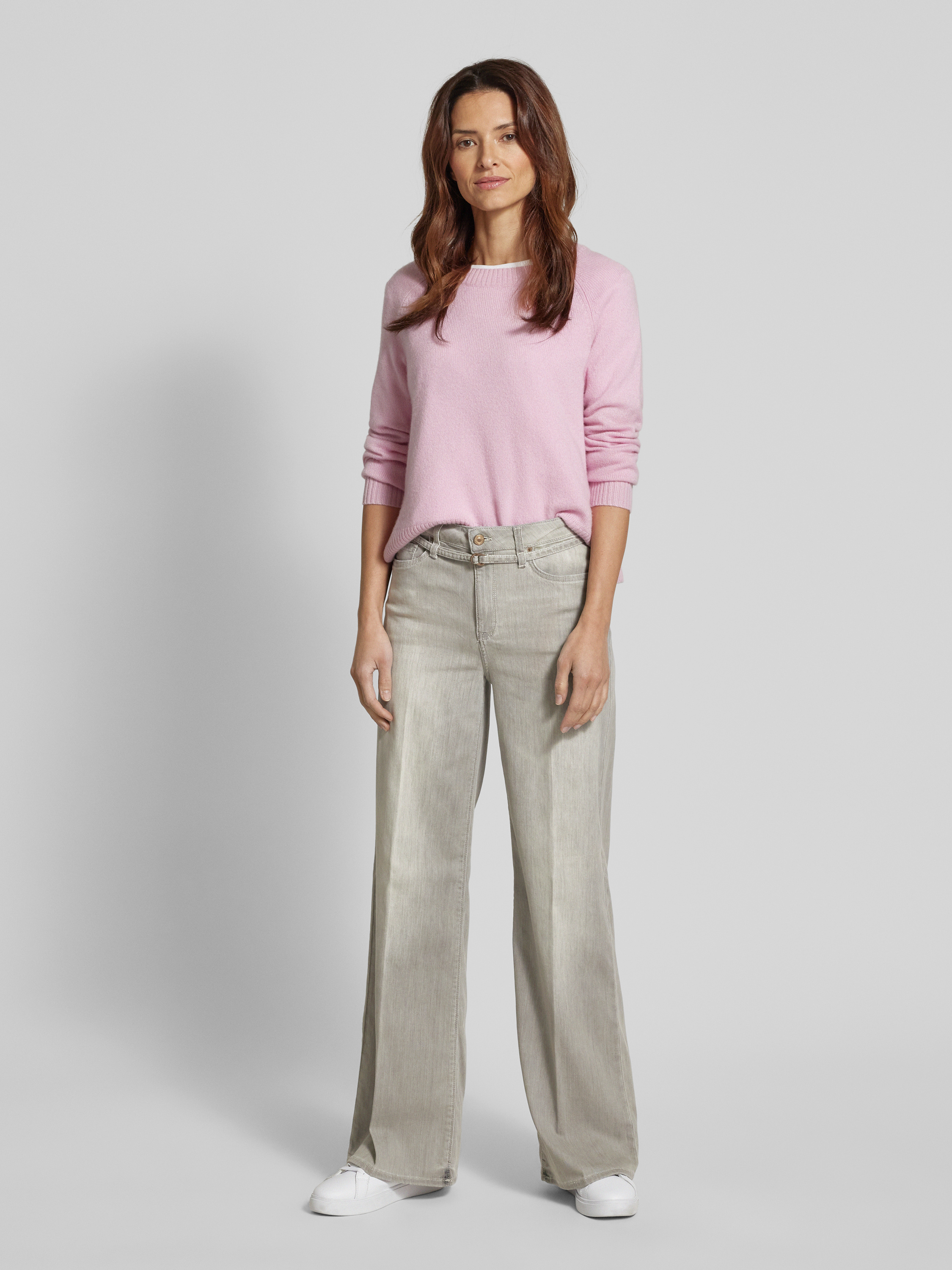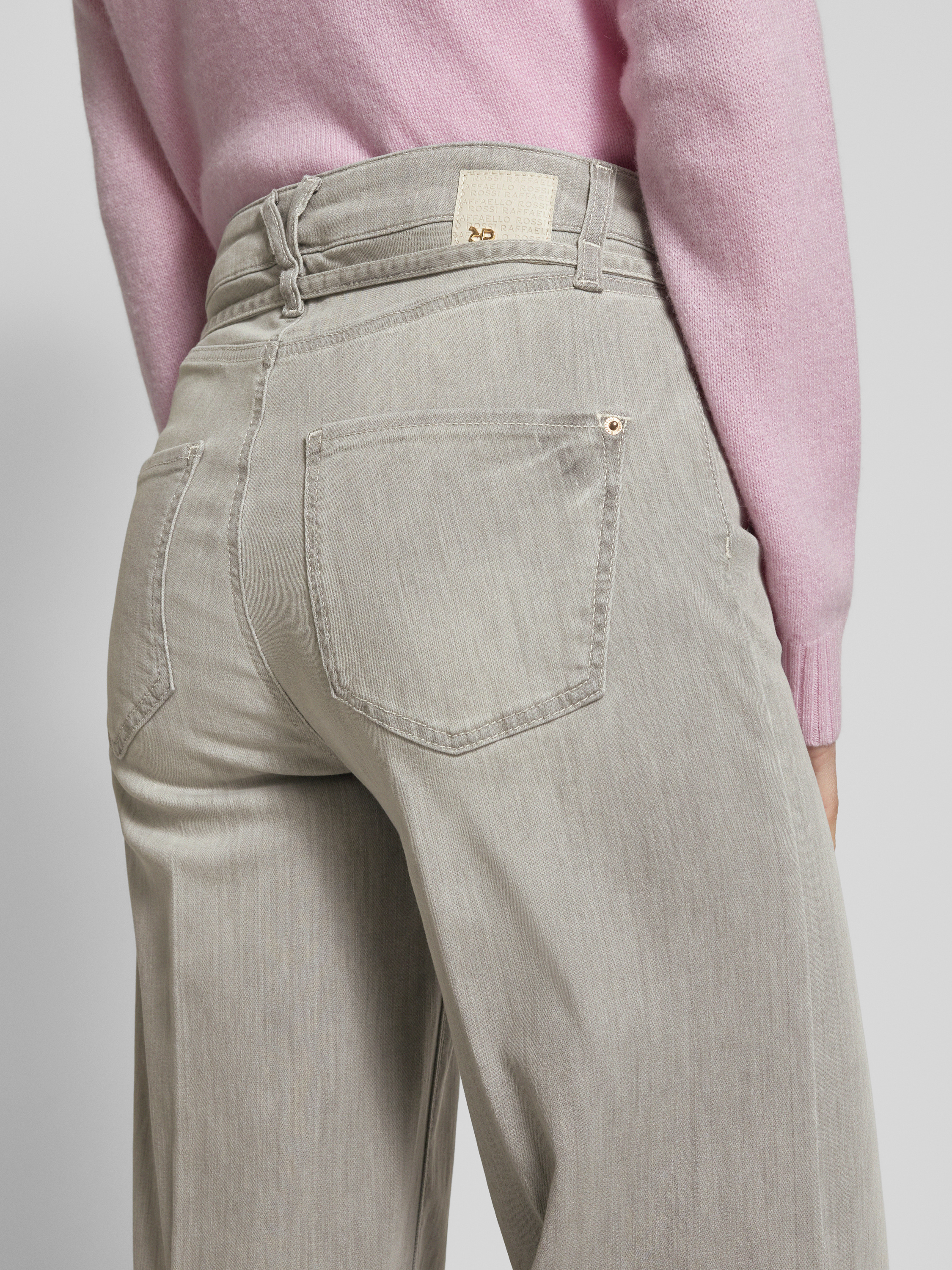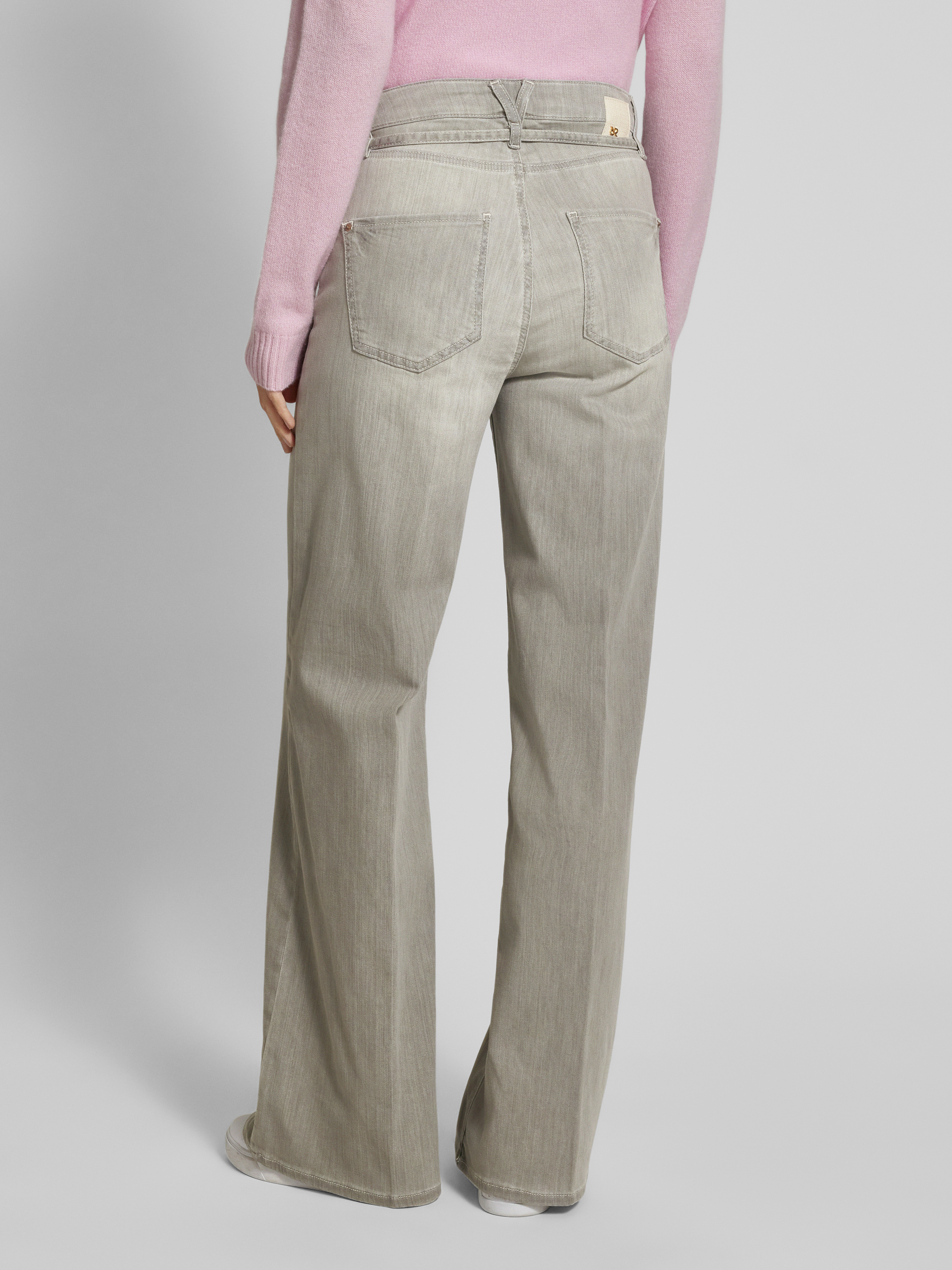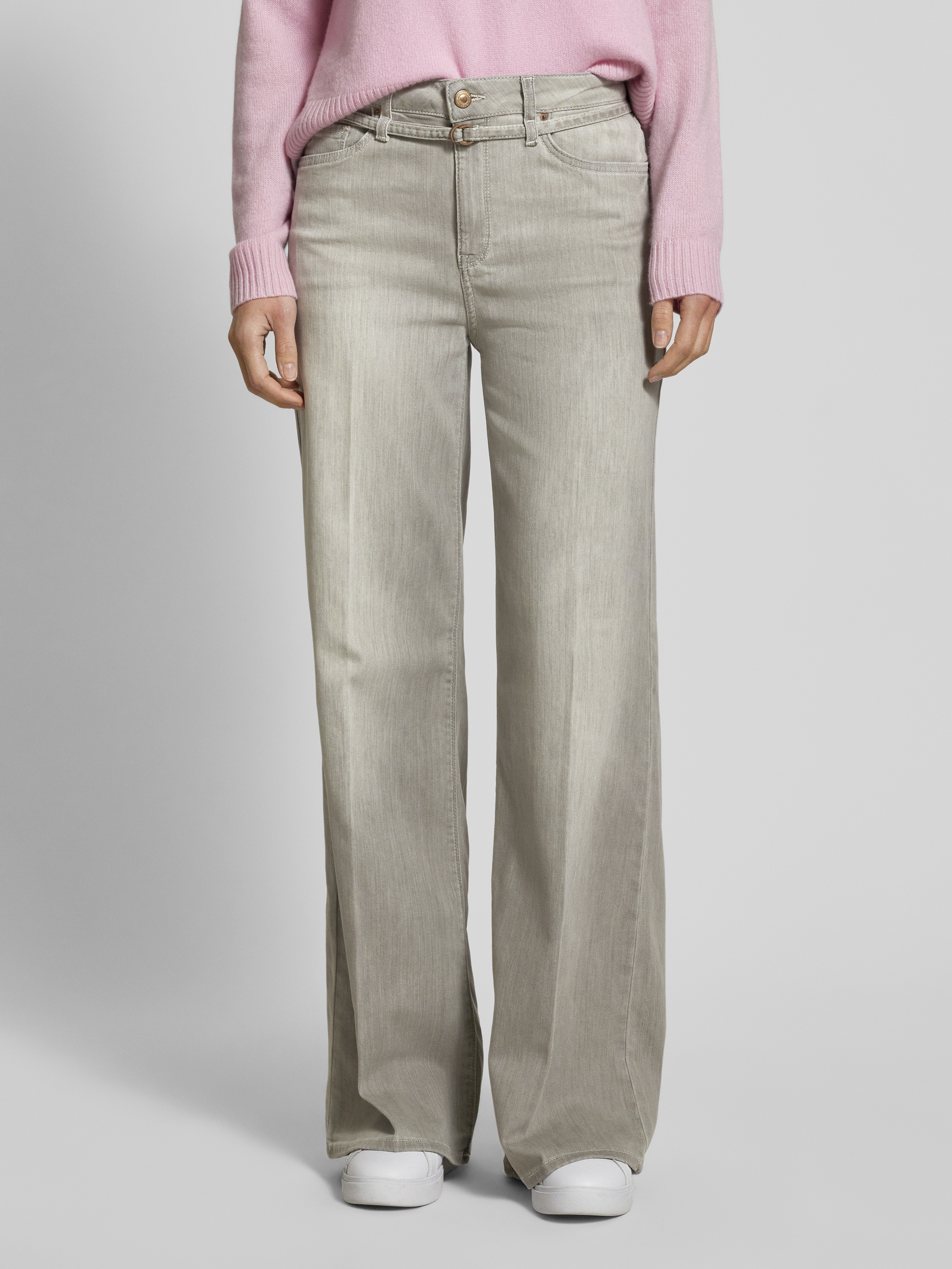 Raffaello RossiWide leg jeans met ceintuur, model 'Sventy B' in lichtgrijs