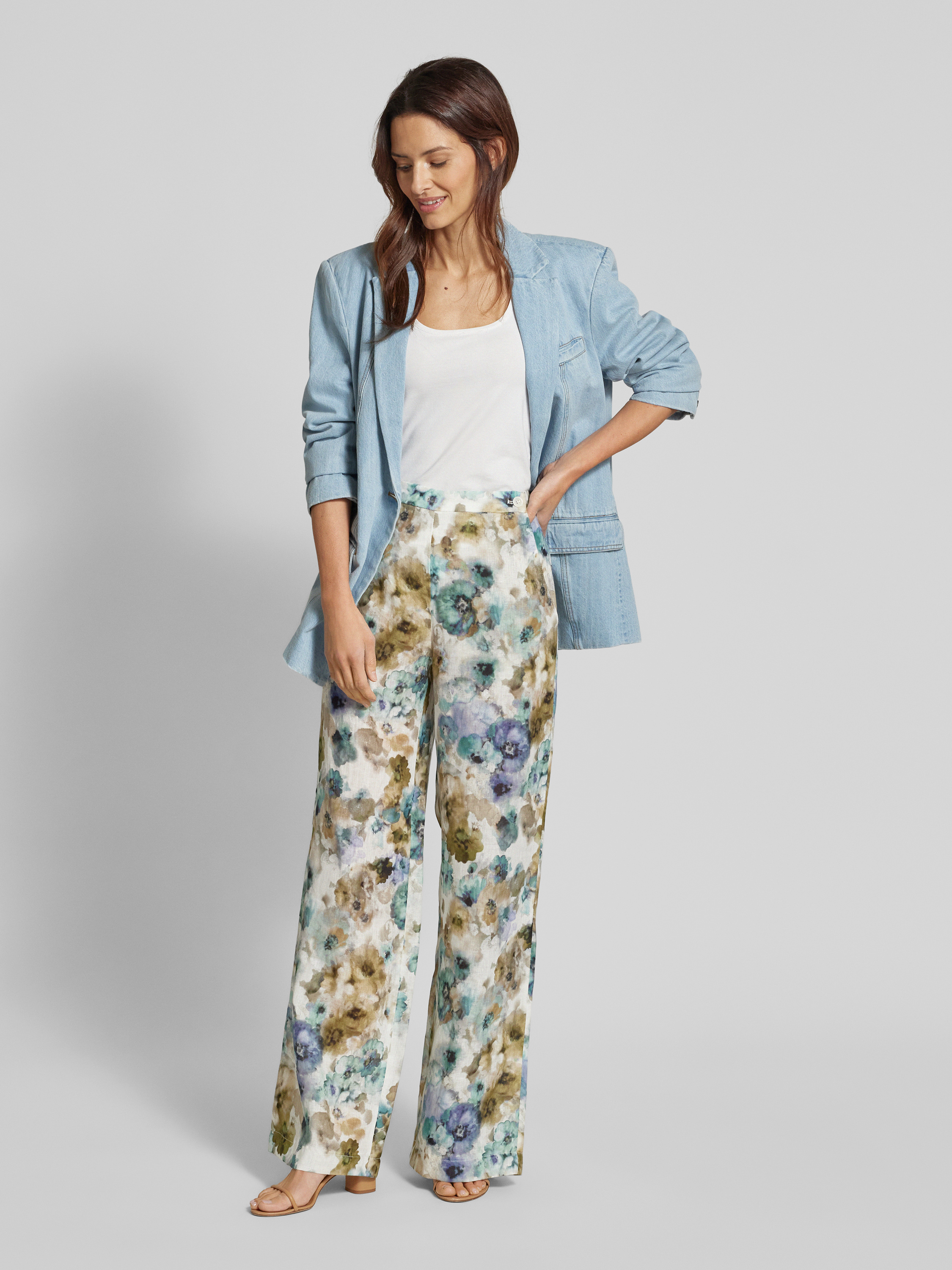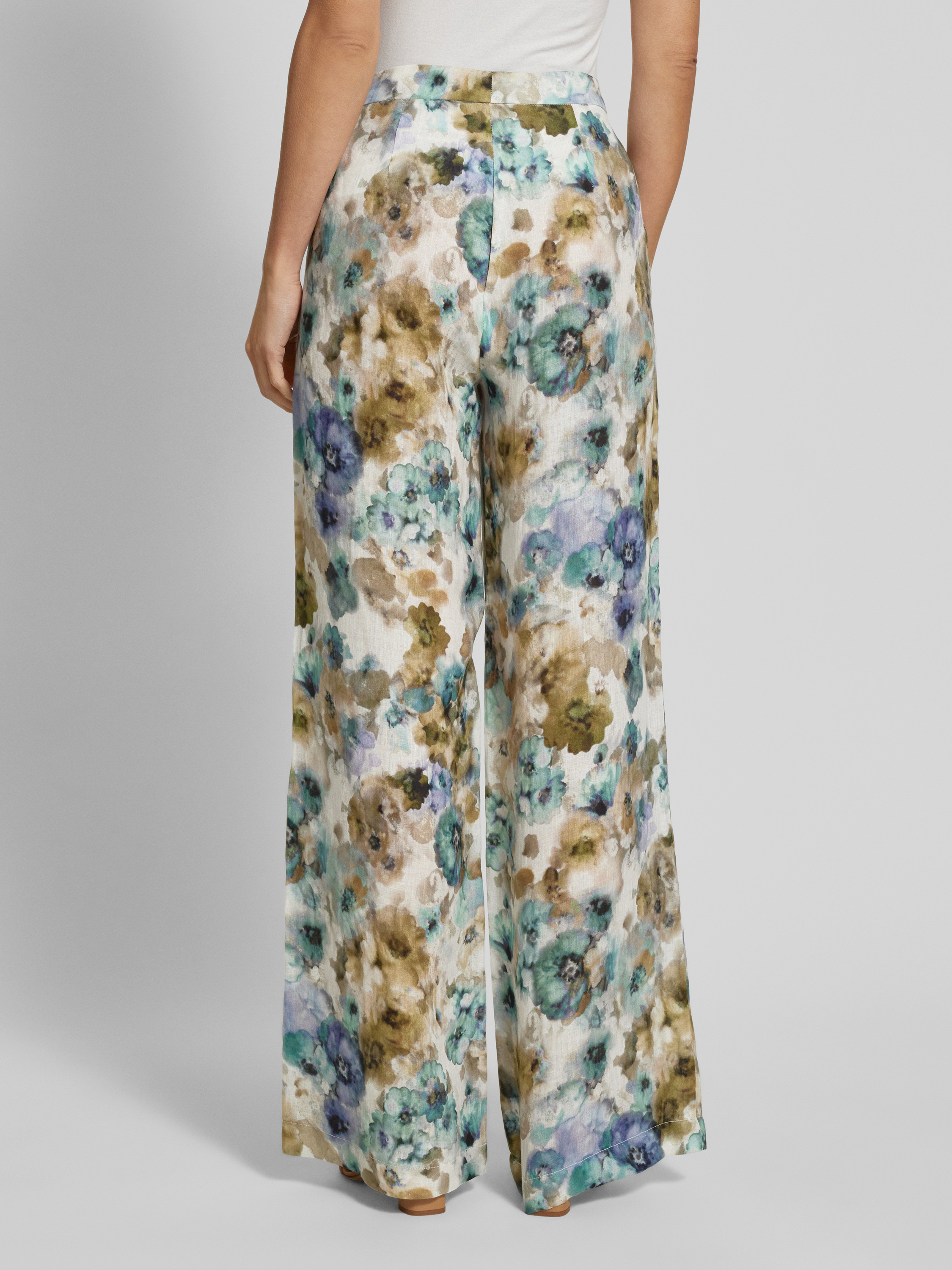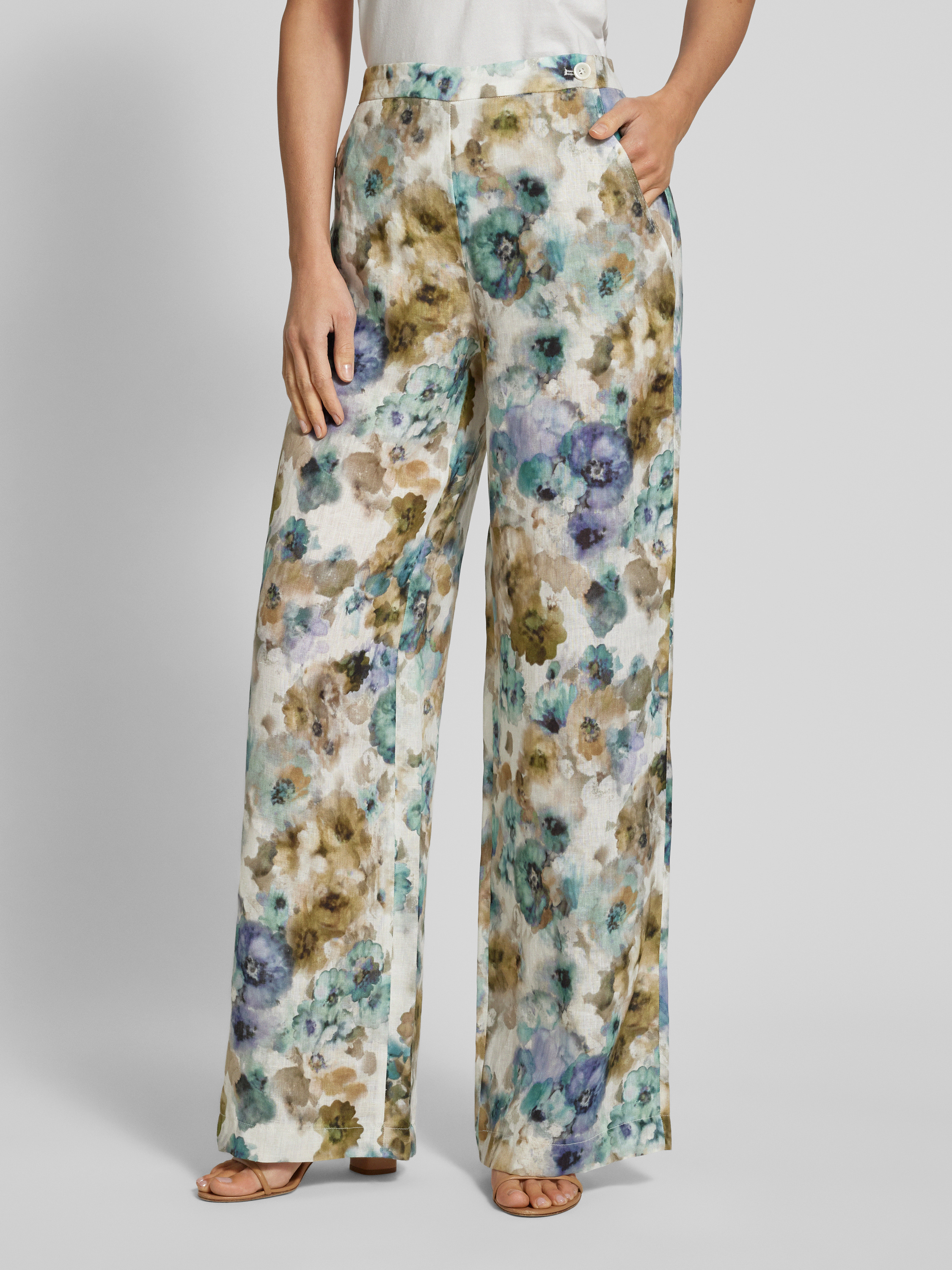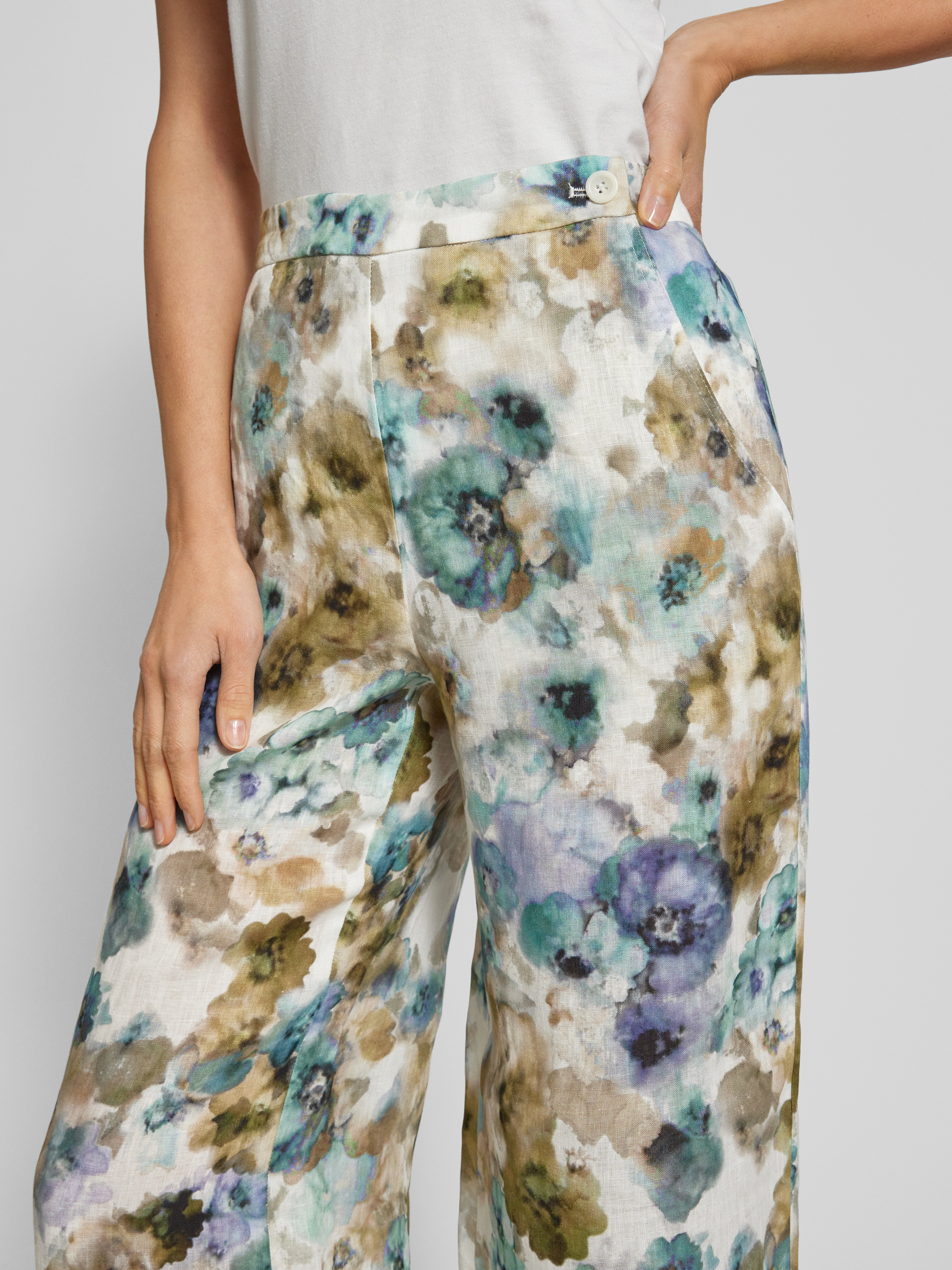Wide leg linnen broek met knoopsluiting, model 'ALBENA' in offwhite