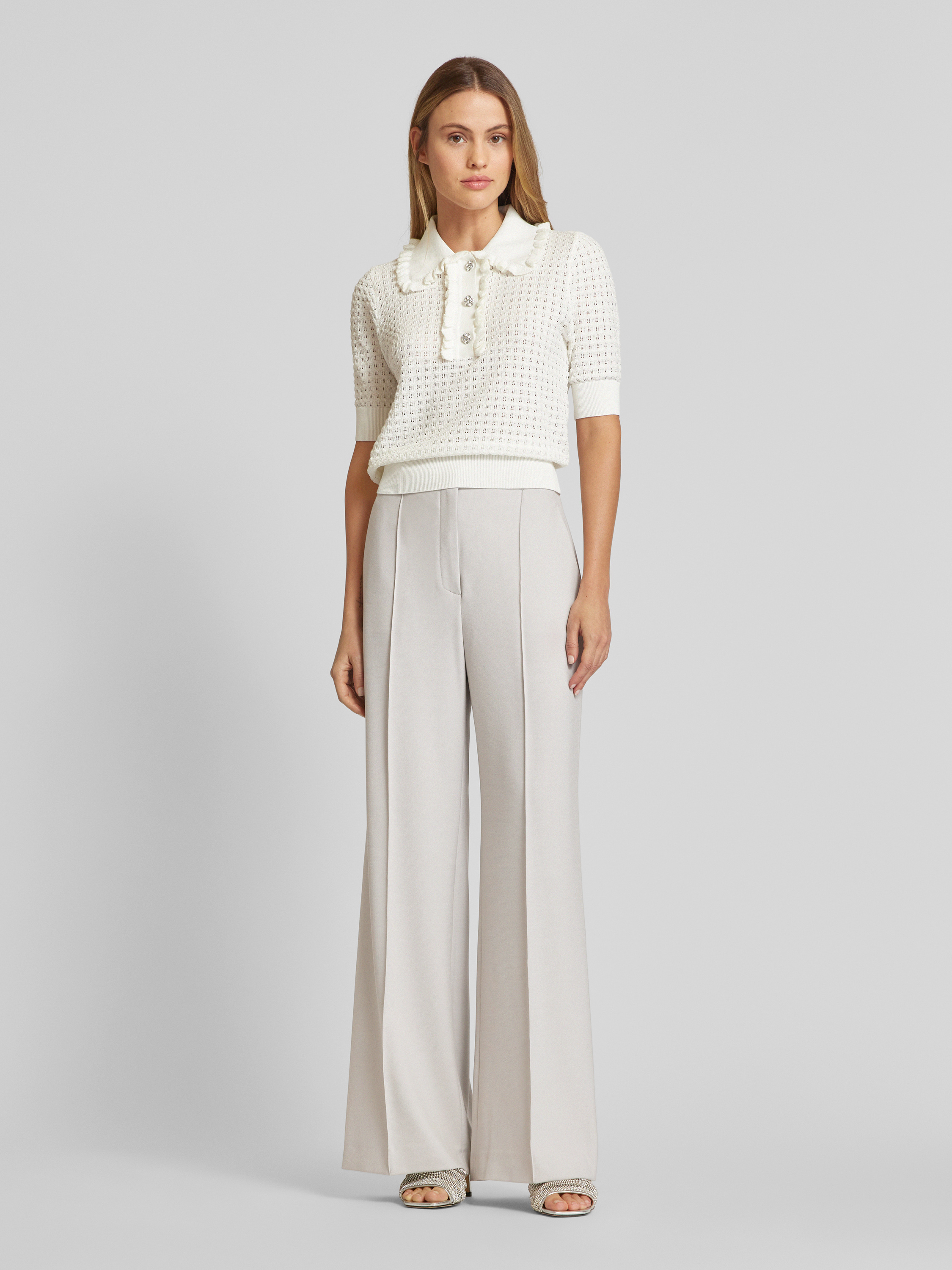Raffaello RossiWide leg stoffen broek met structuurmotief, model 'AGATHA' in lichtgrijs