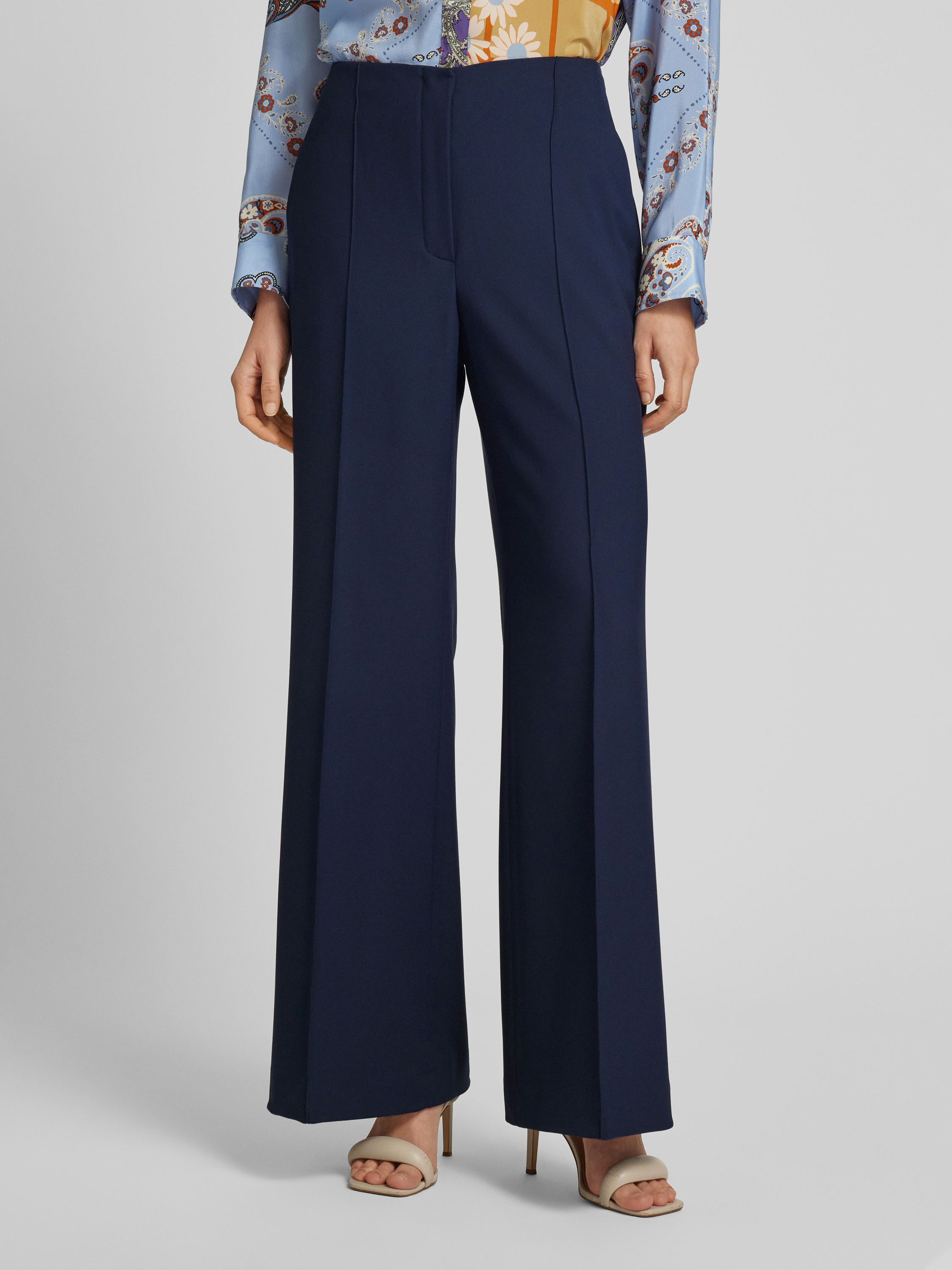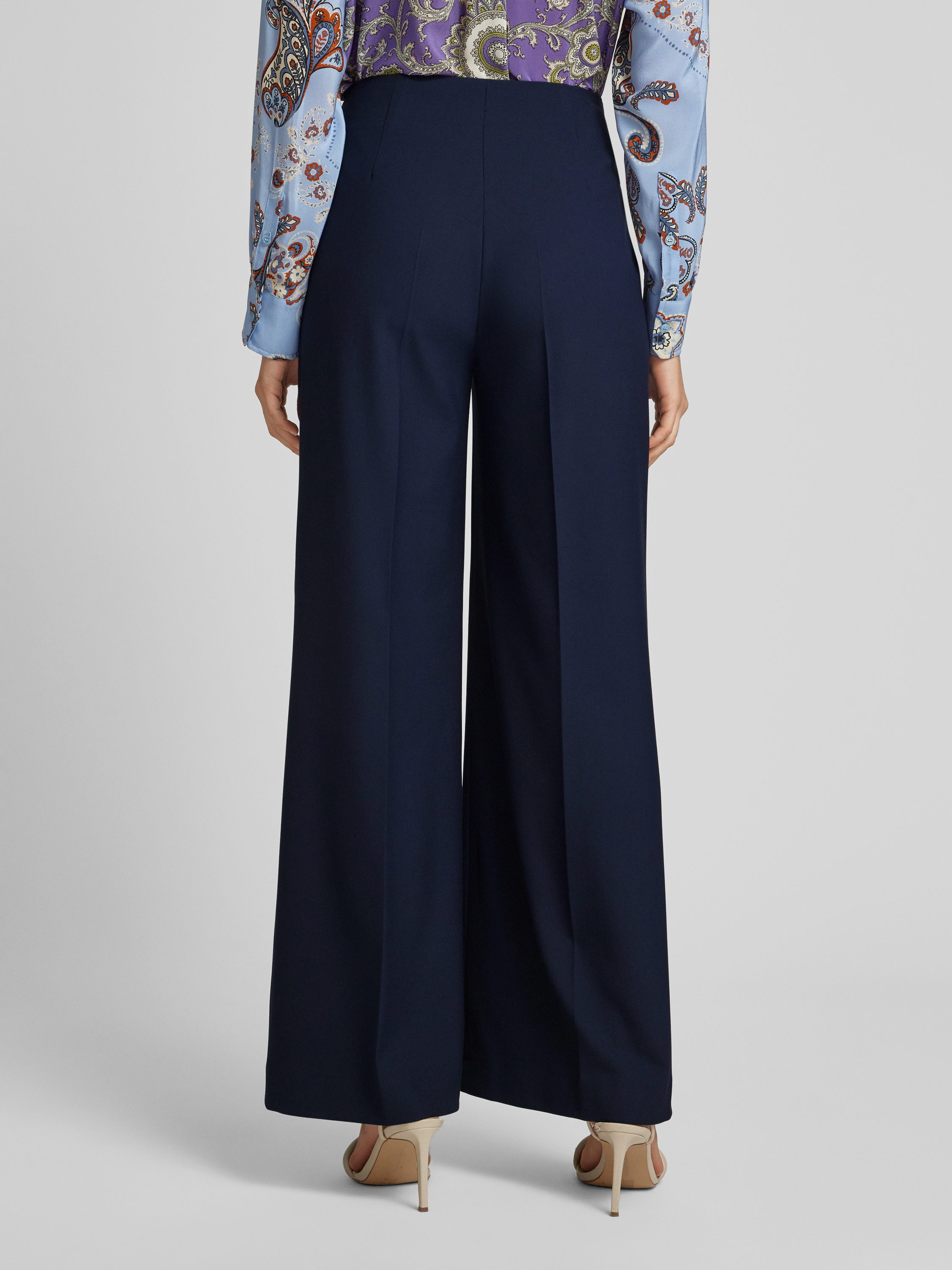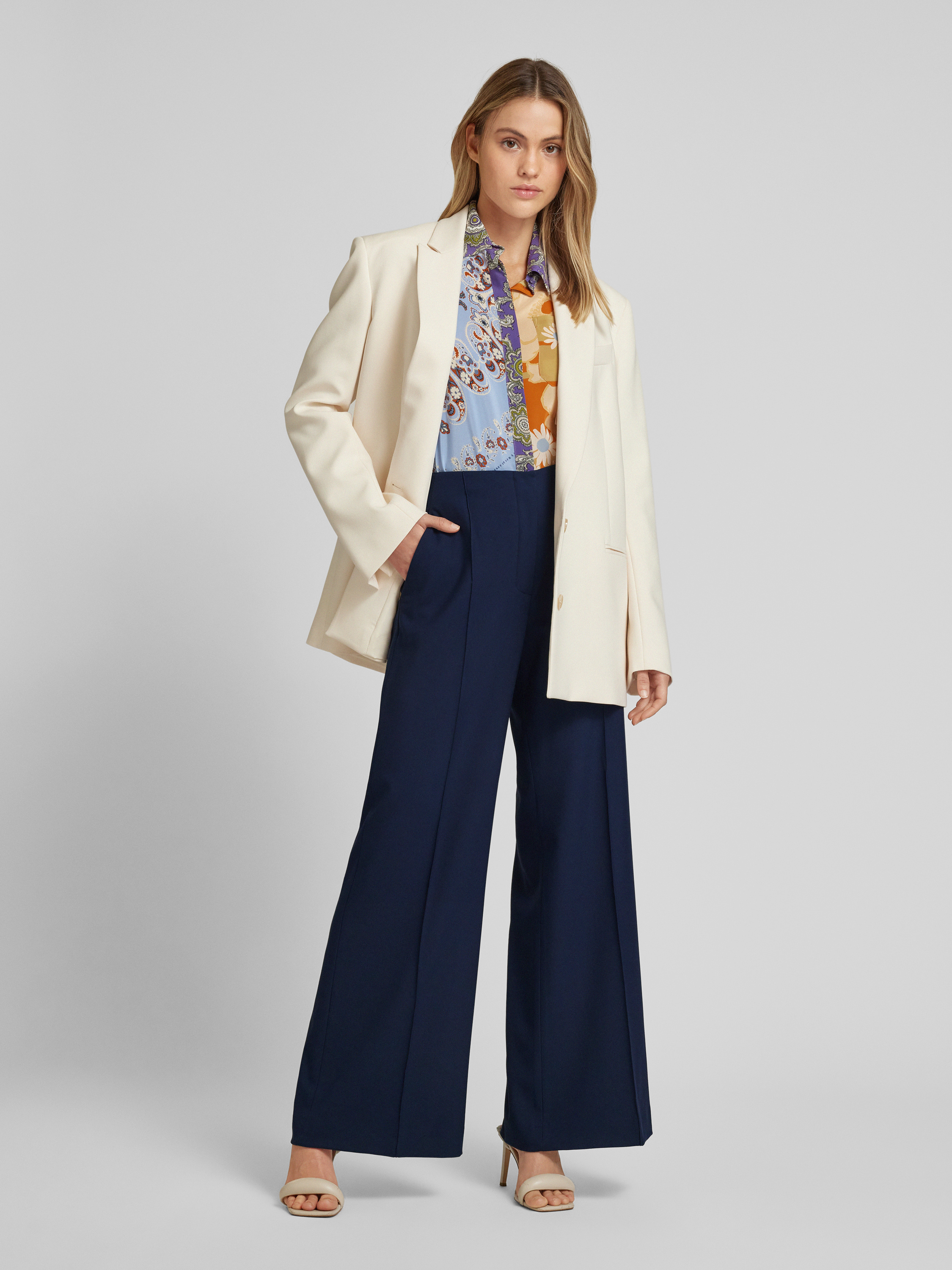 Raffaello RossiWide leg stoffen broek met structuurmotief, model 'AGATHA' in marineblauw