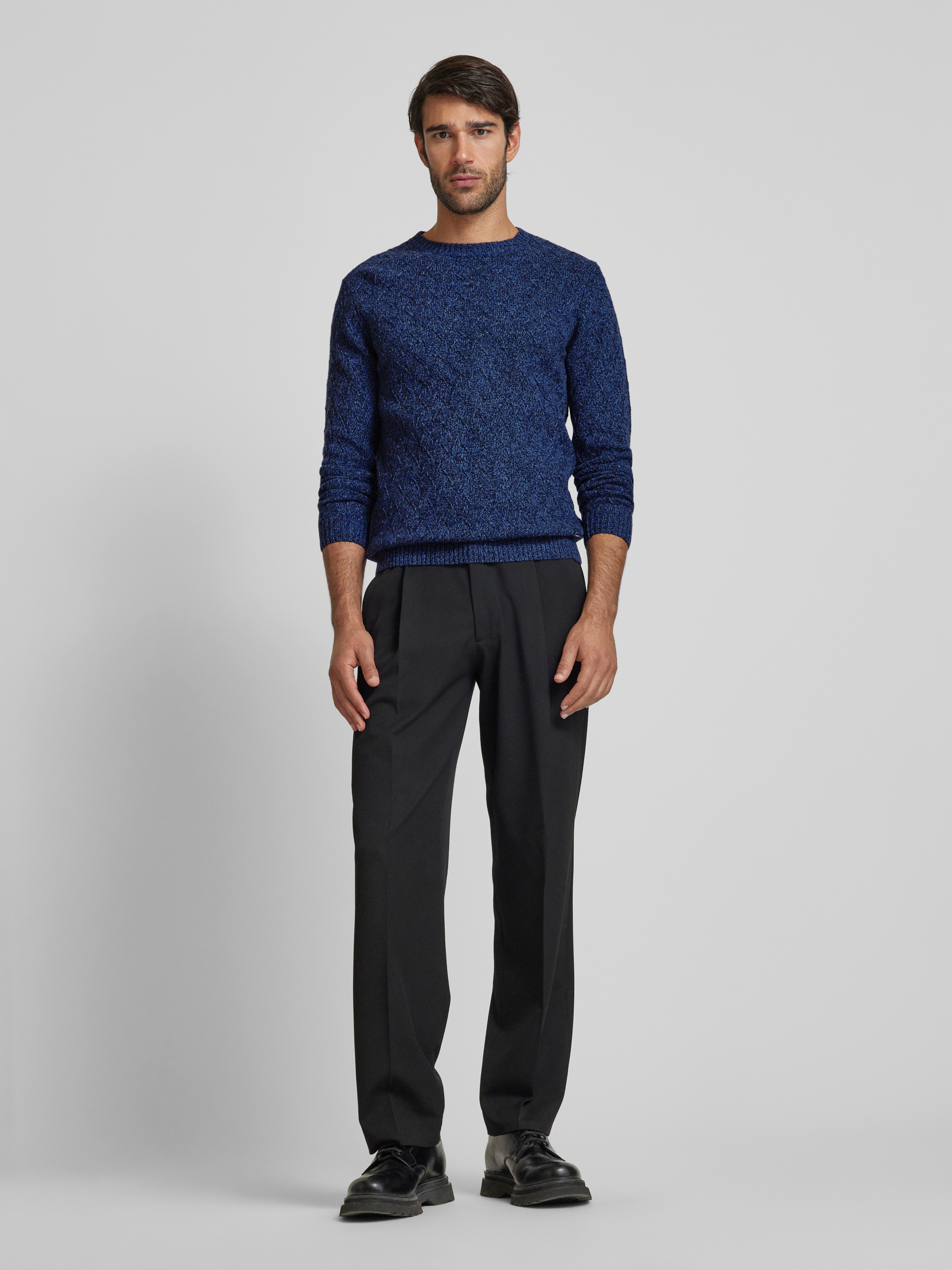 Gebreide pullover met structuurmotief in marineblauw