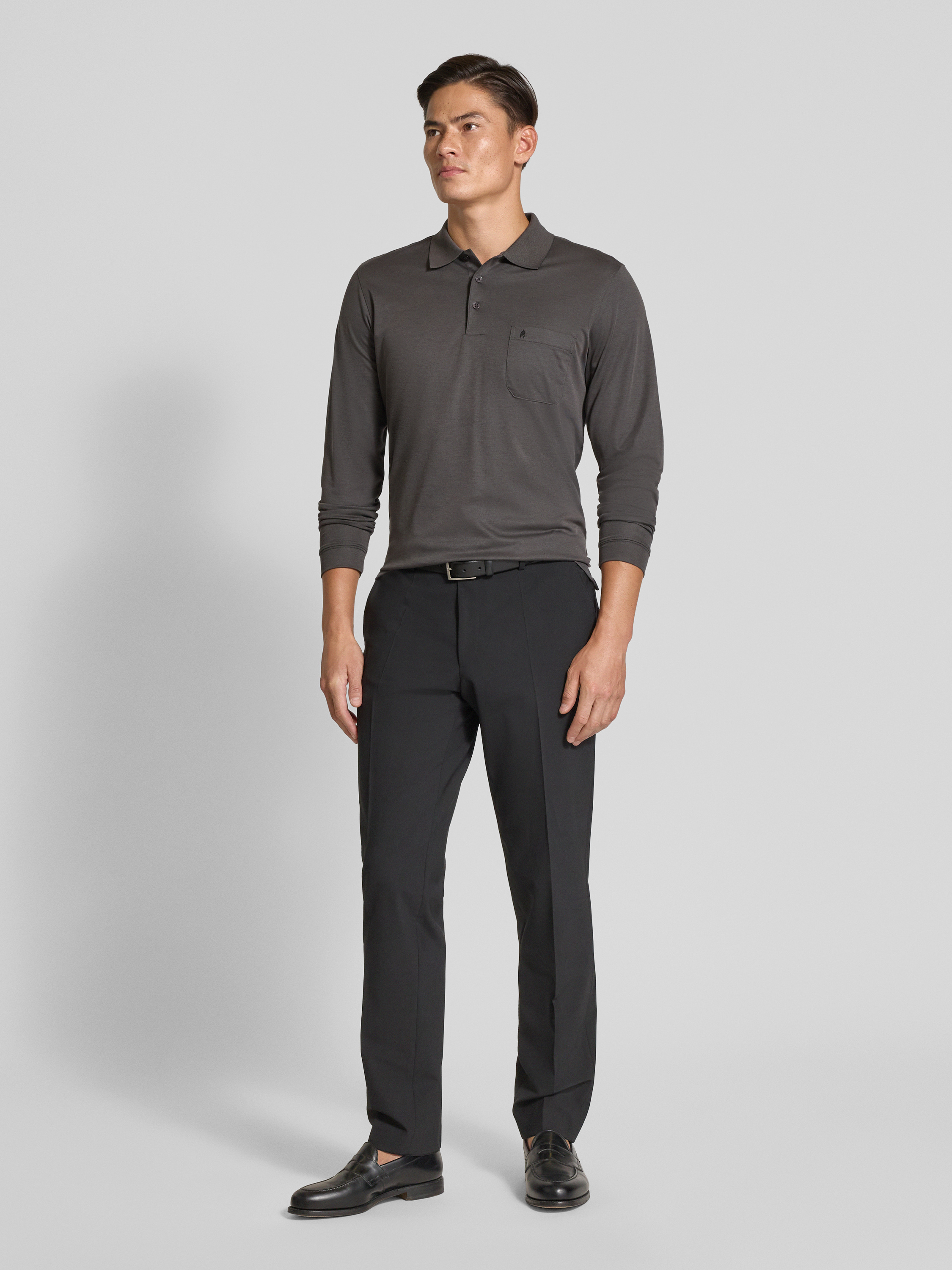 Regular fit poloshirt met borstzak in antraciet