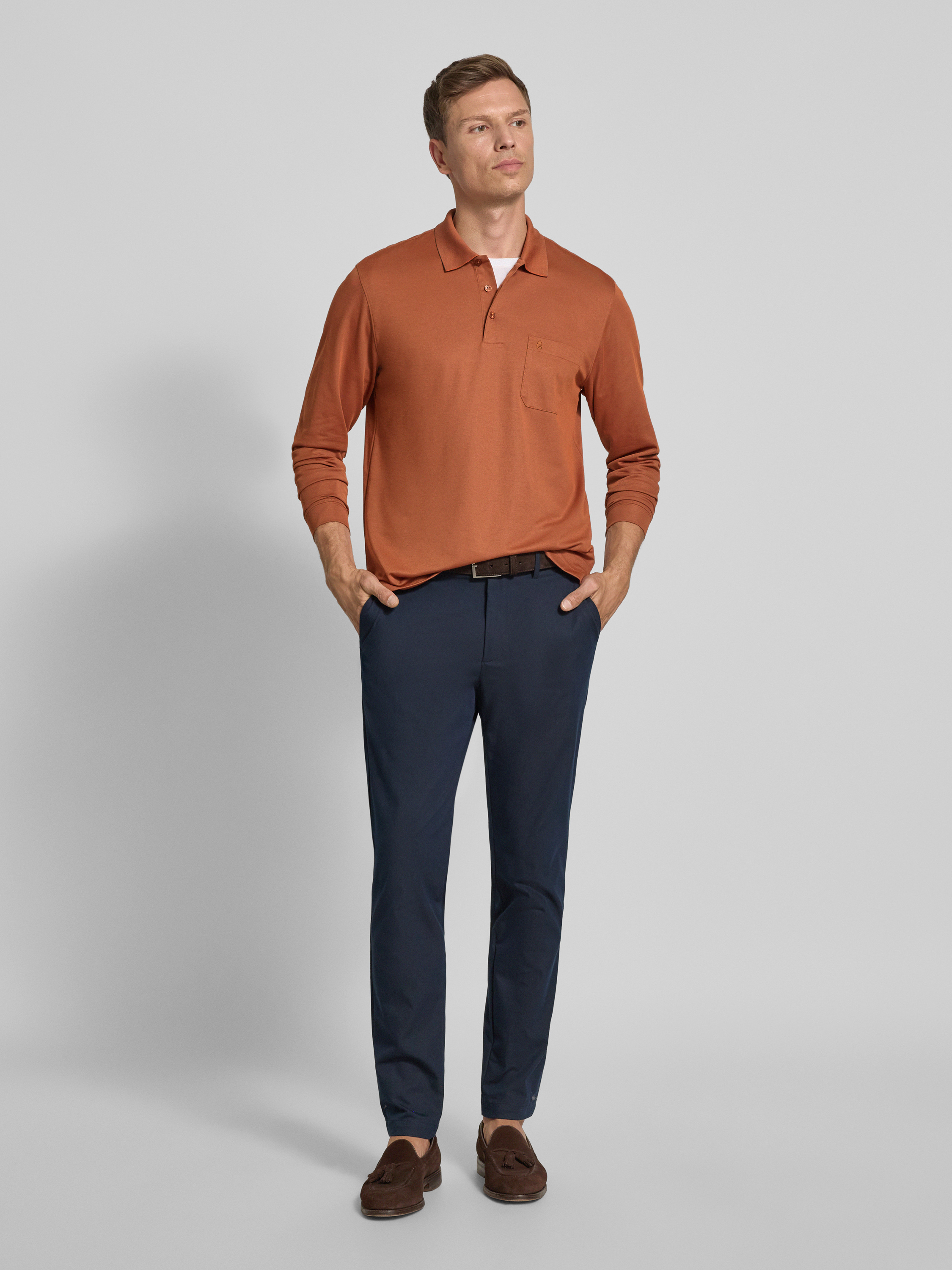 Regular fit poloshirt met borstzak in roestrood