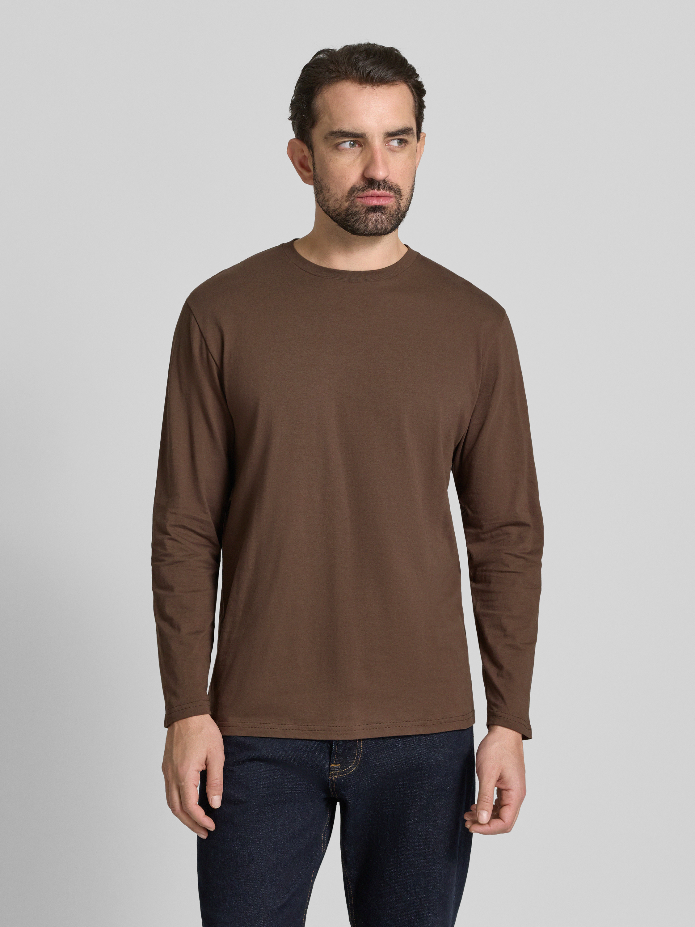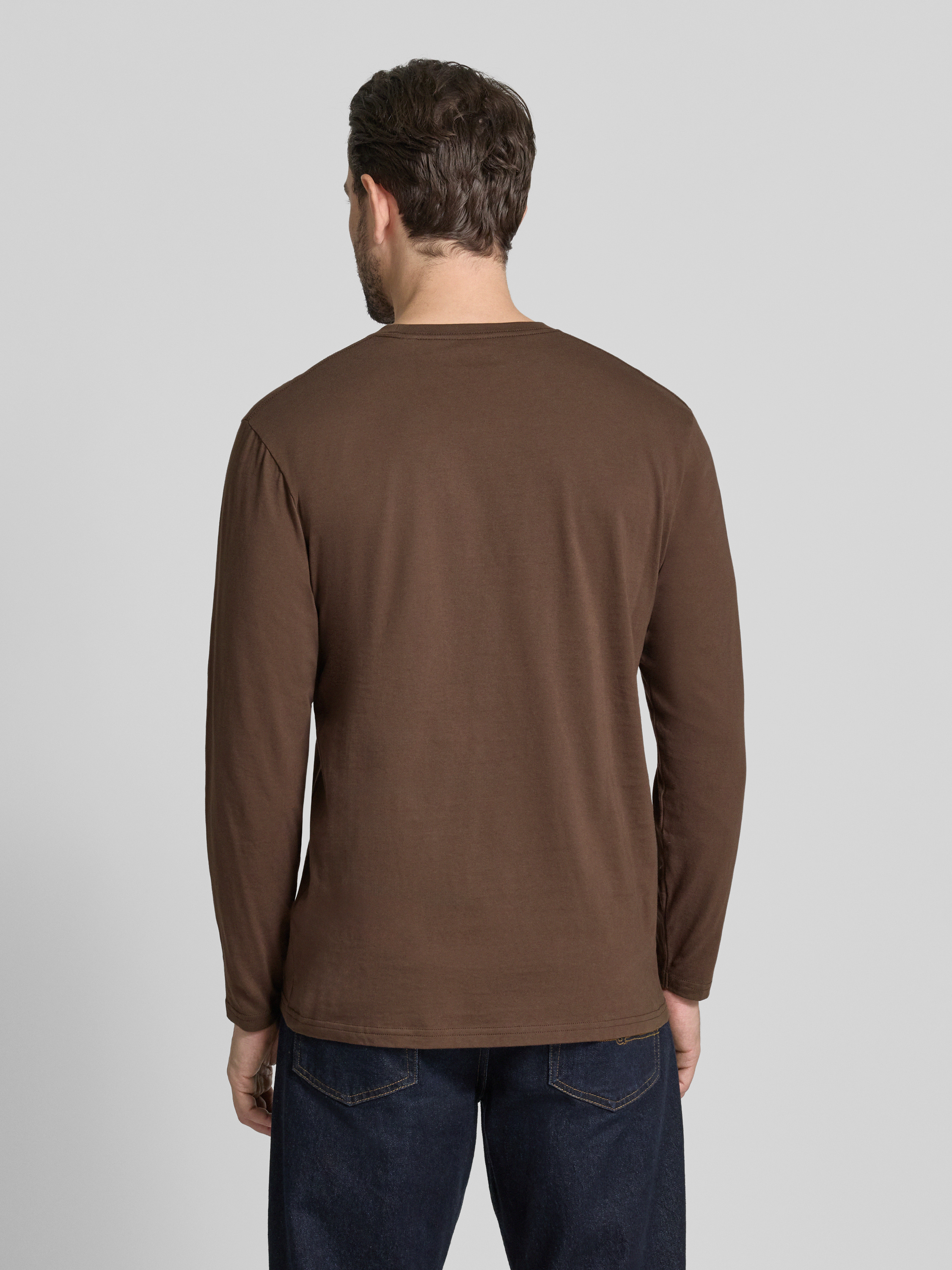 Shirt met lange mouwen en geribde ronde hals in donkerbruin