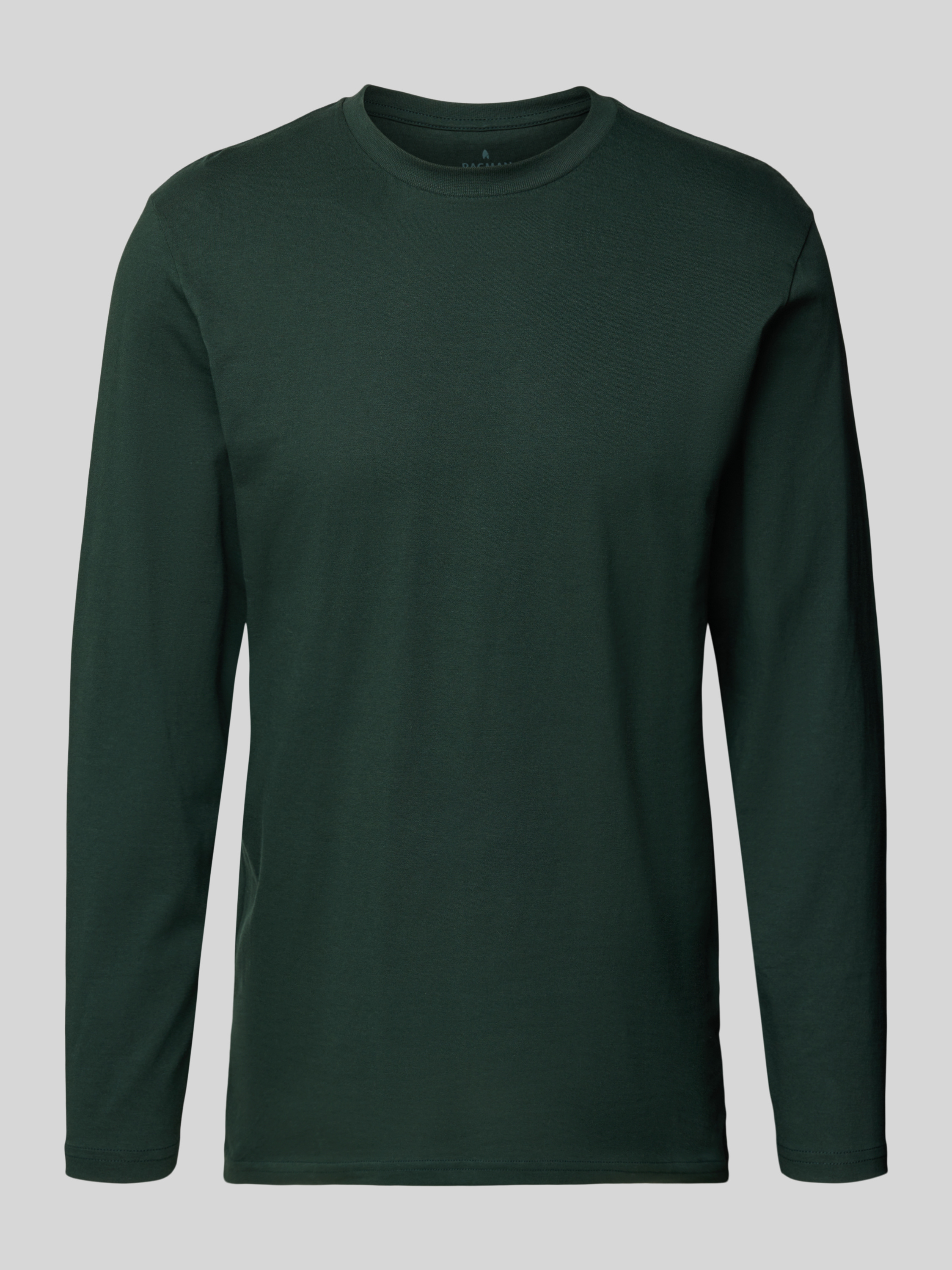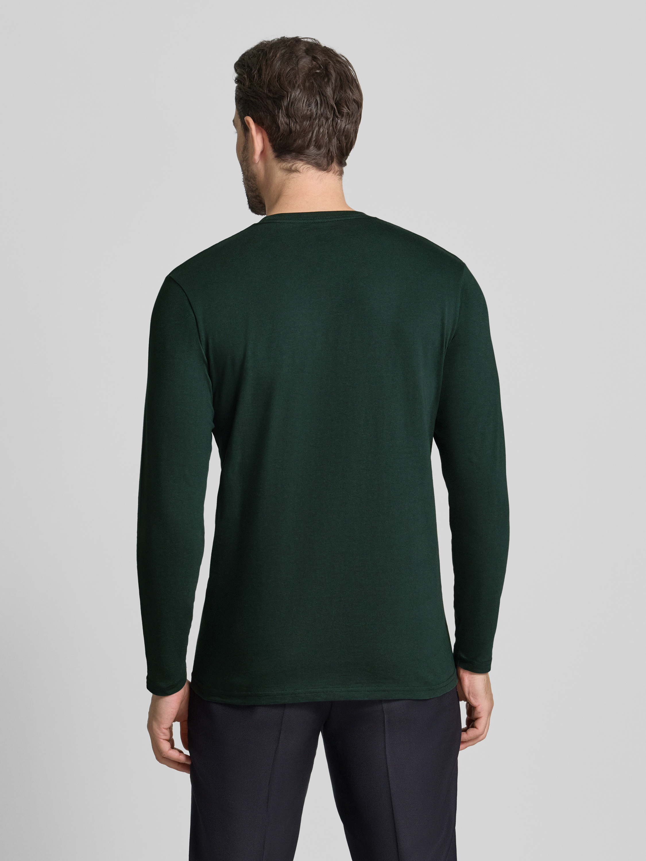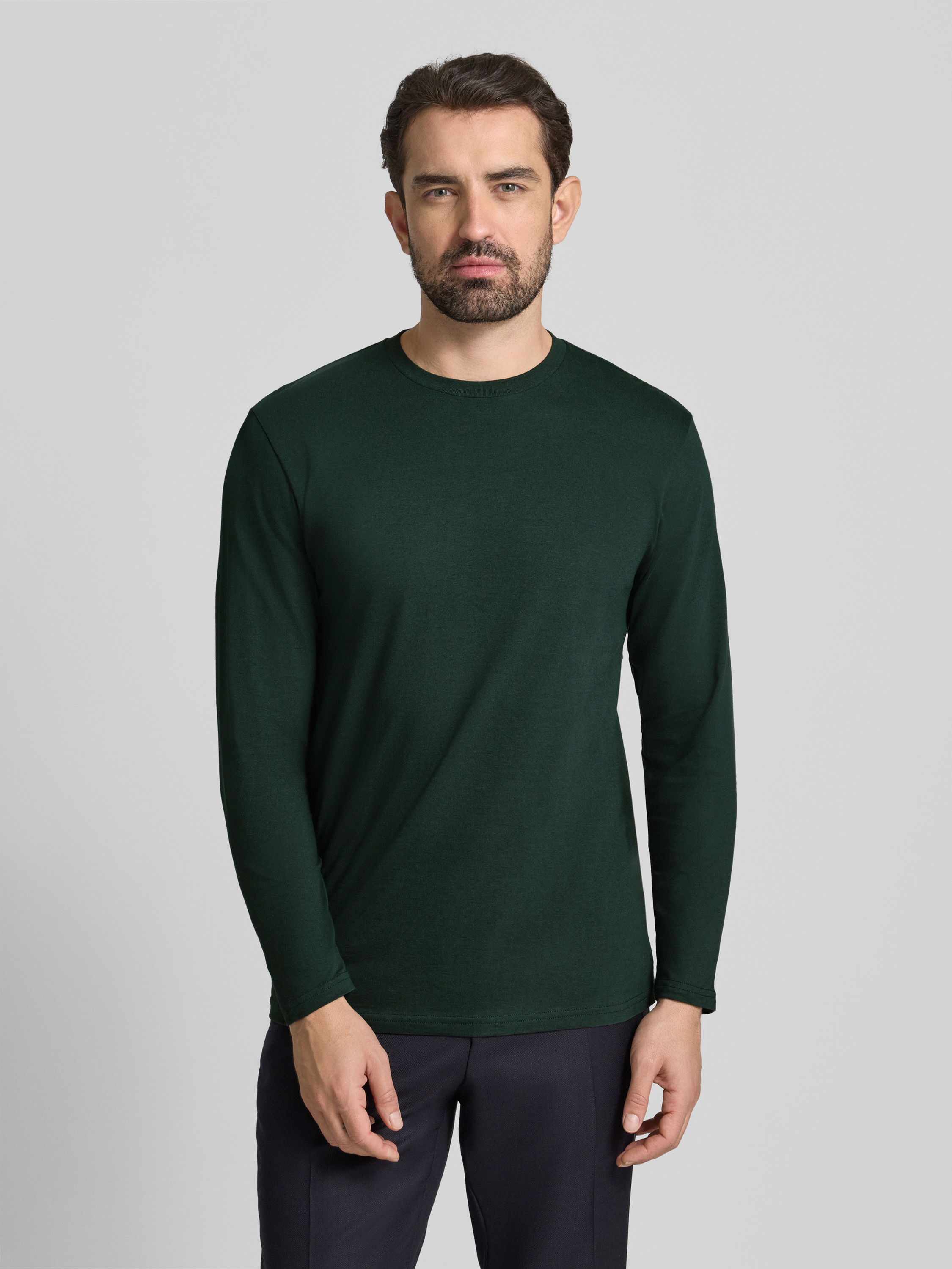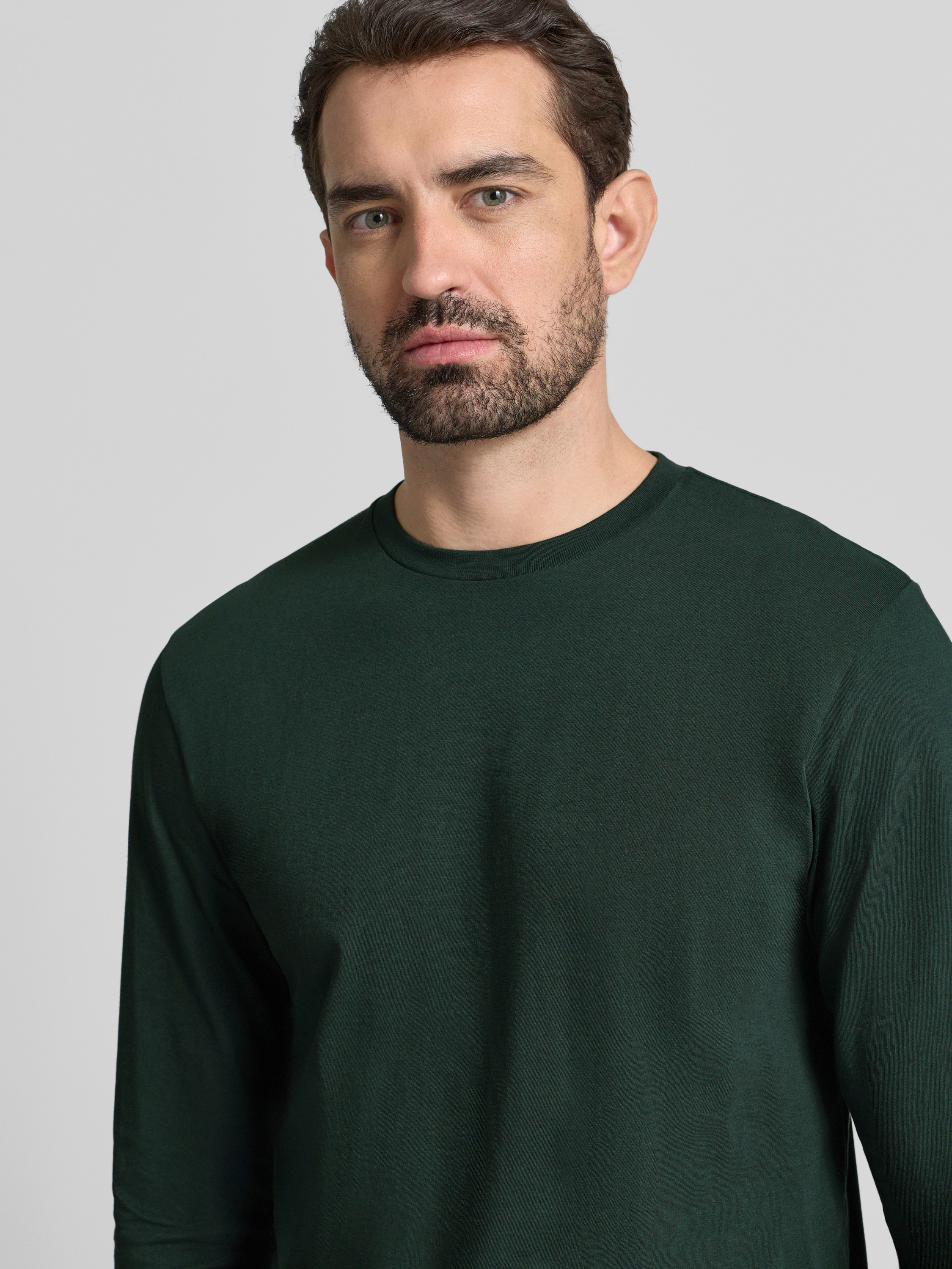 Shirt met lange mouwen en geribde ronde hals in flessengroen