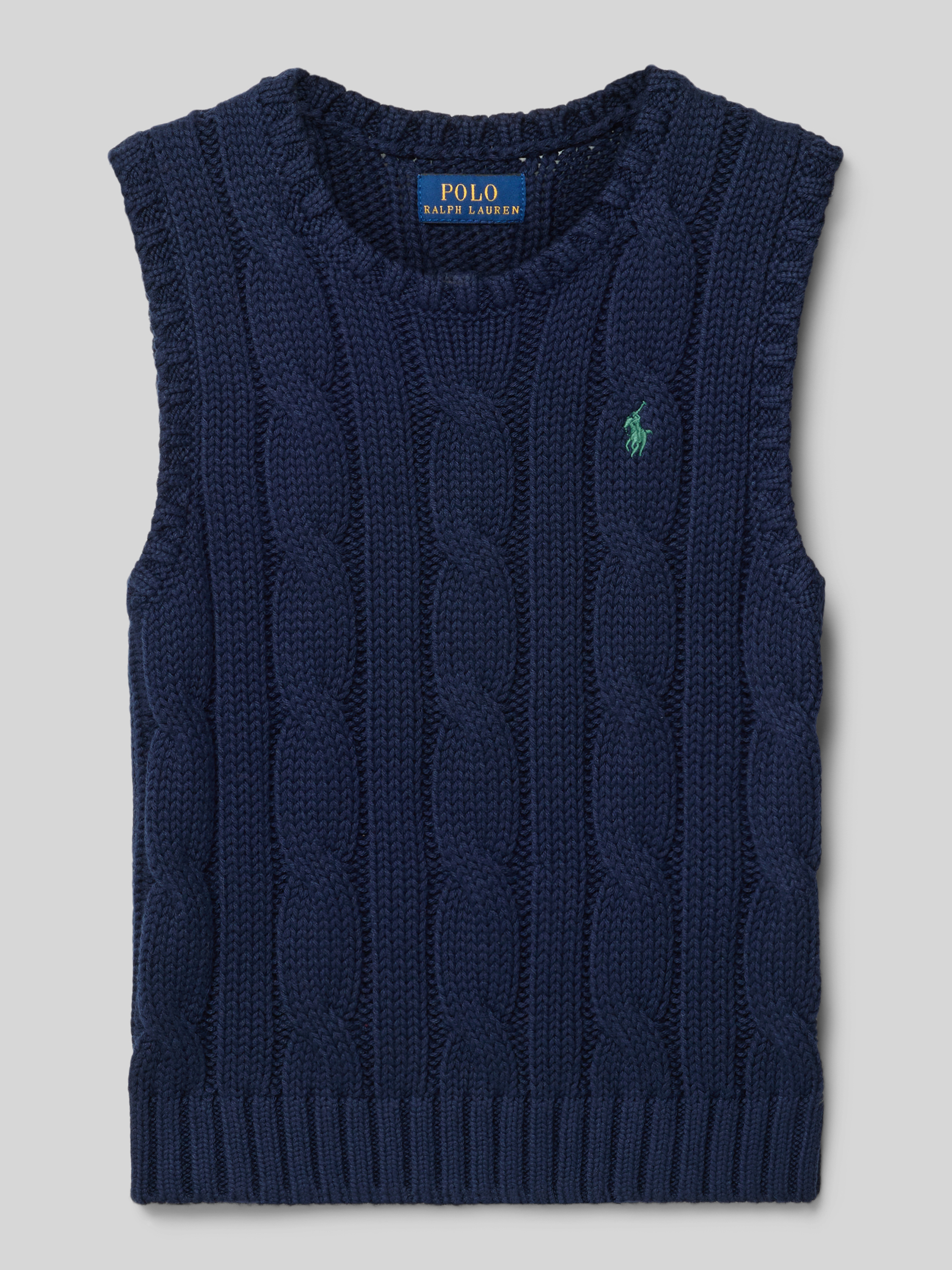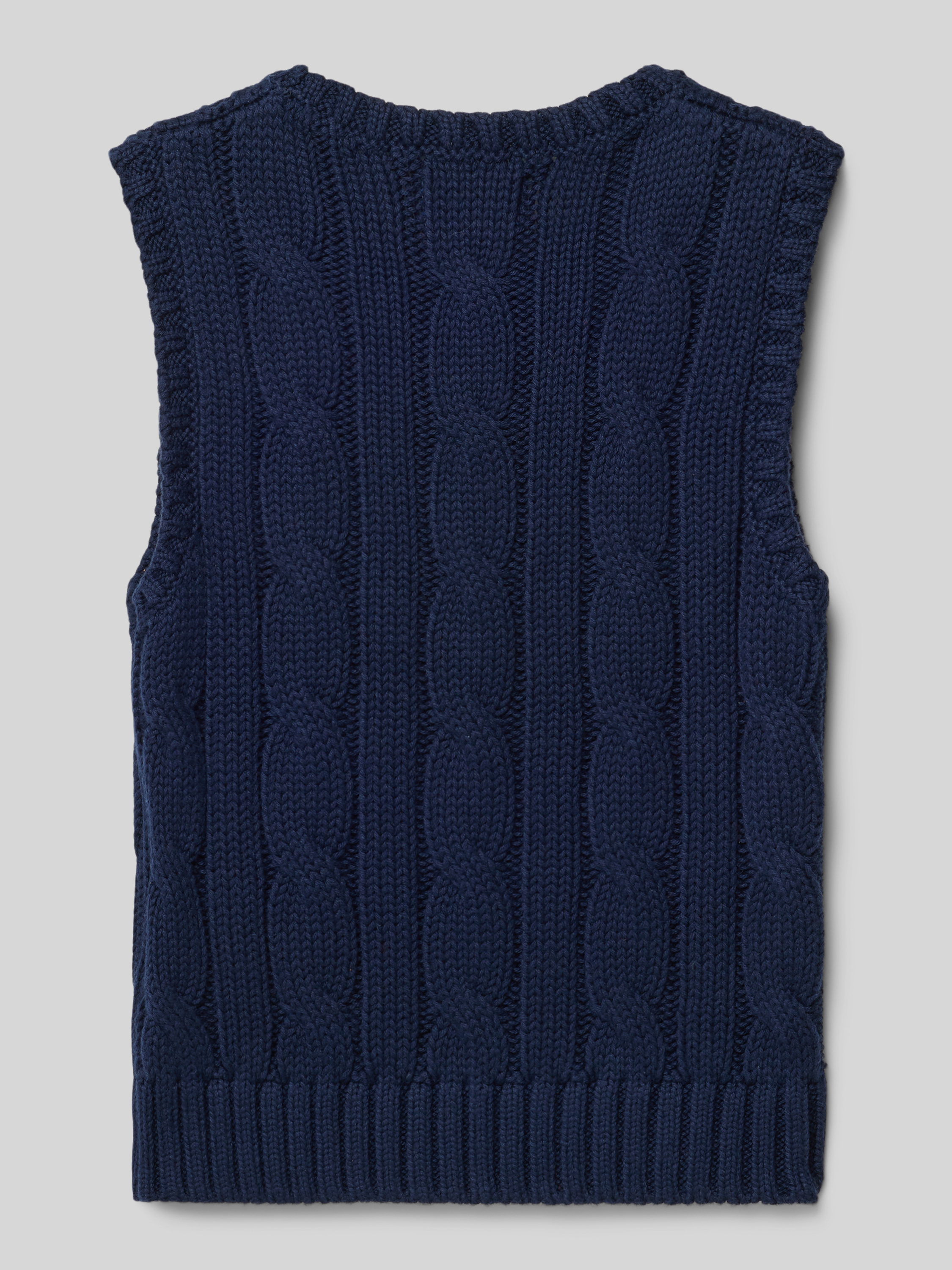 Regular fit spencer in gebreide look met logostitching in marineblauw