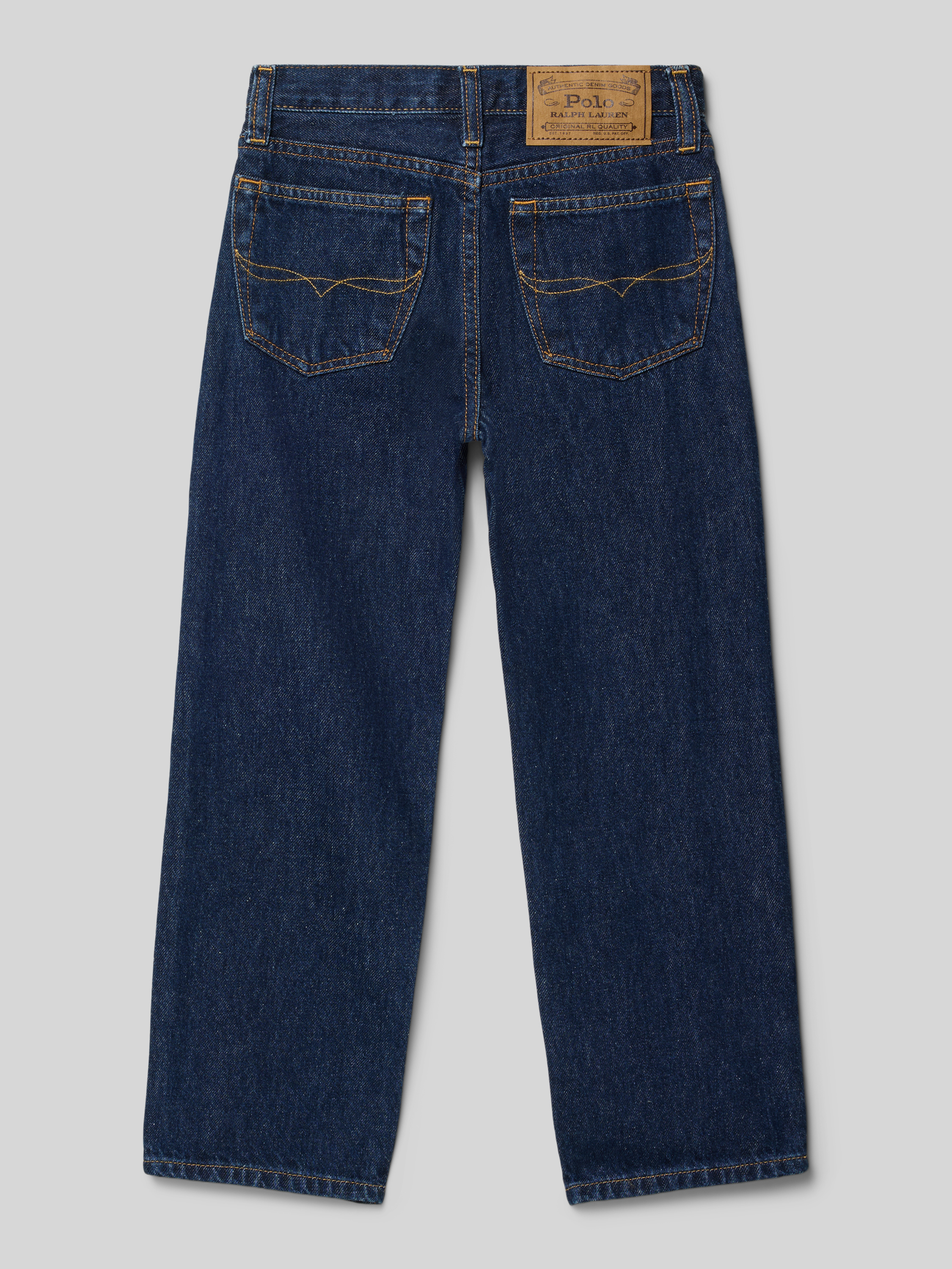 Straight fit jeans met logopatch in donkerblauw