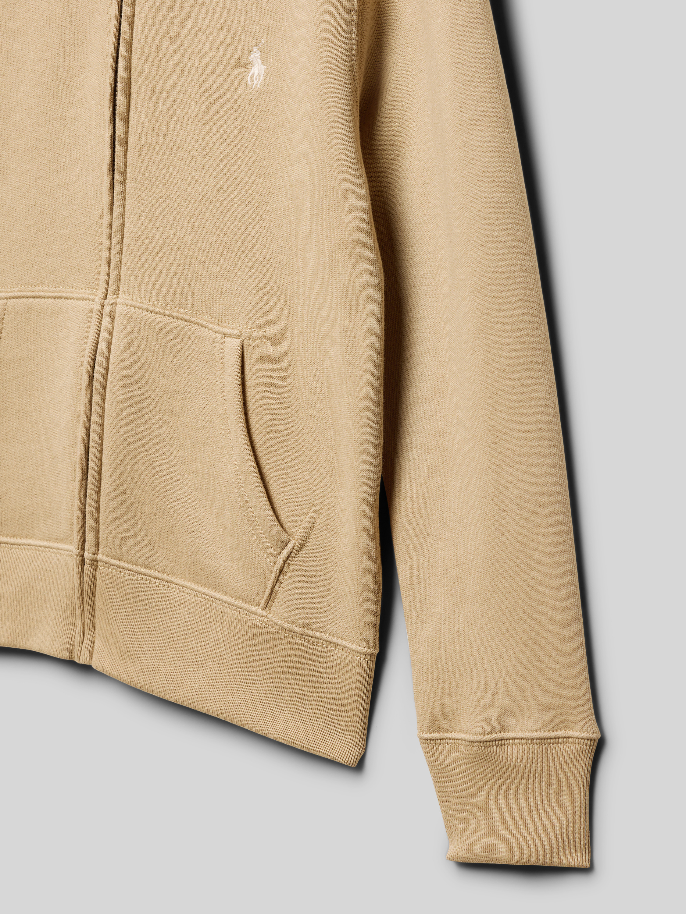 Sweatjack met labelstitching en kangoeroezak in kaki