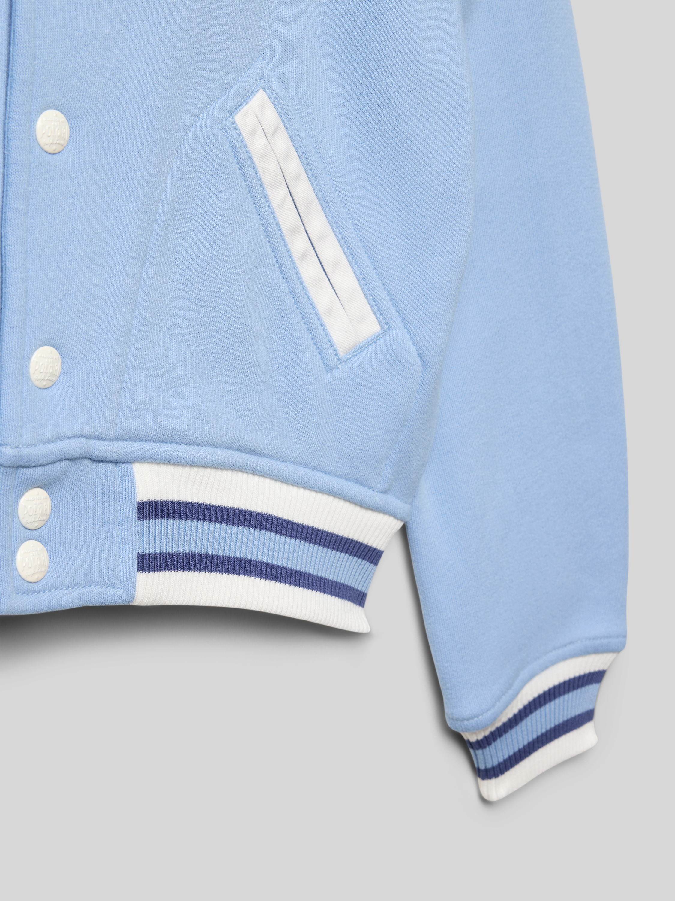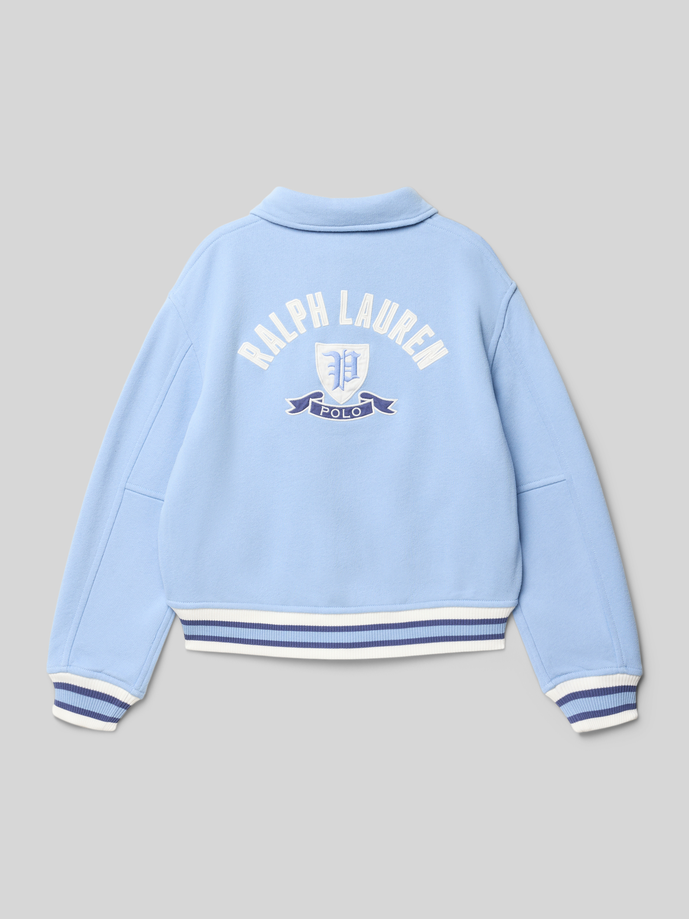 Collegejack met platte kraag en labelstitching in lichtblauw