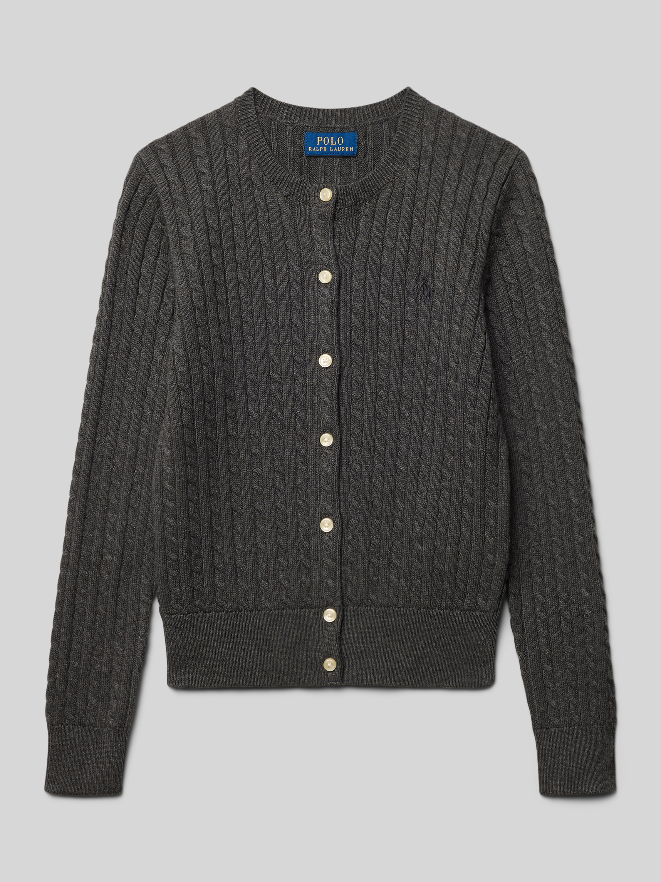 Gebreid jack met kabelpatroon en labelstitching in middengrijs