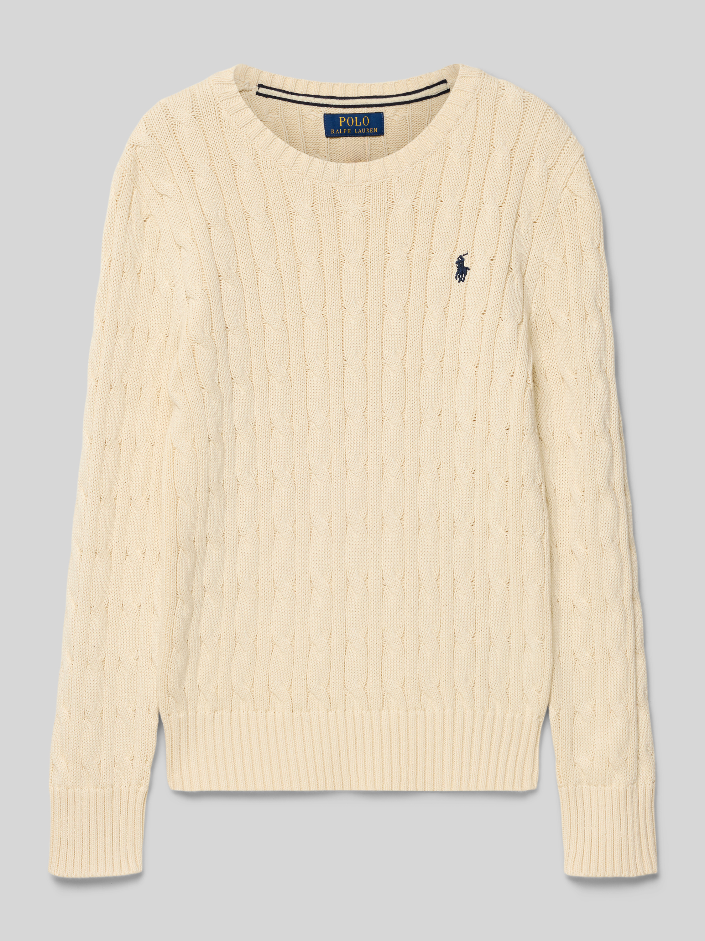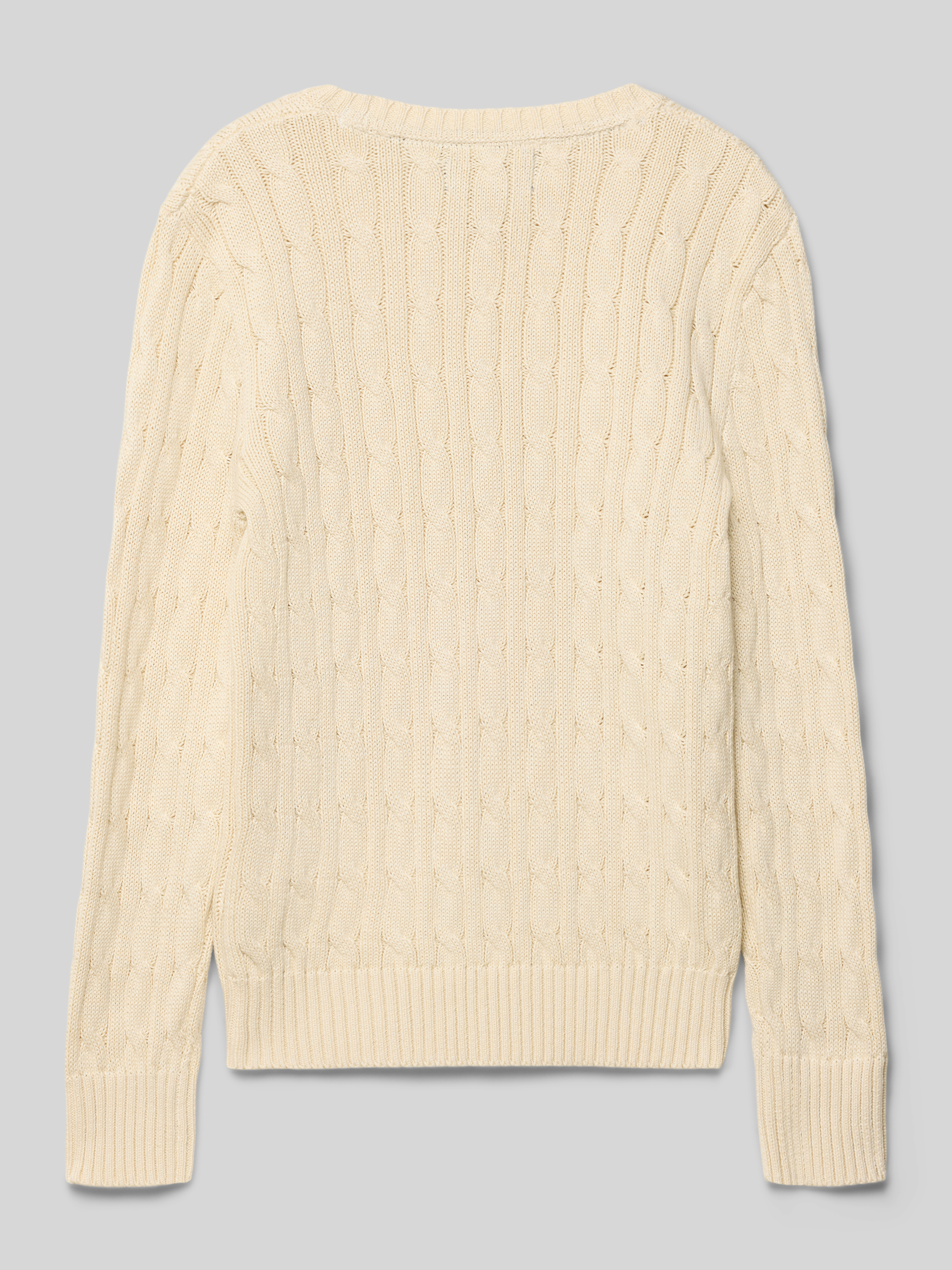Gebreide pullover met kabelpatroon en ronde hals in zand