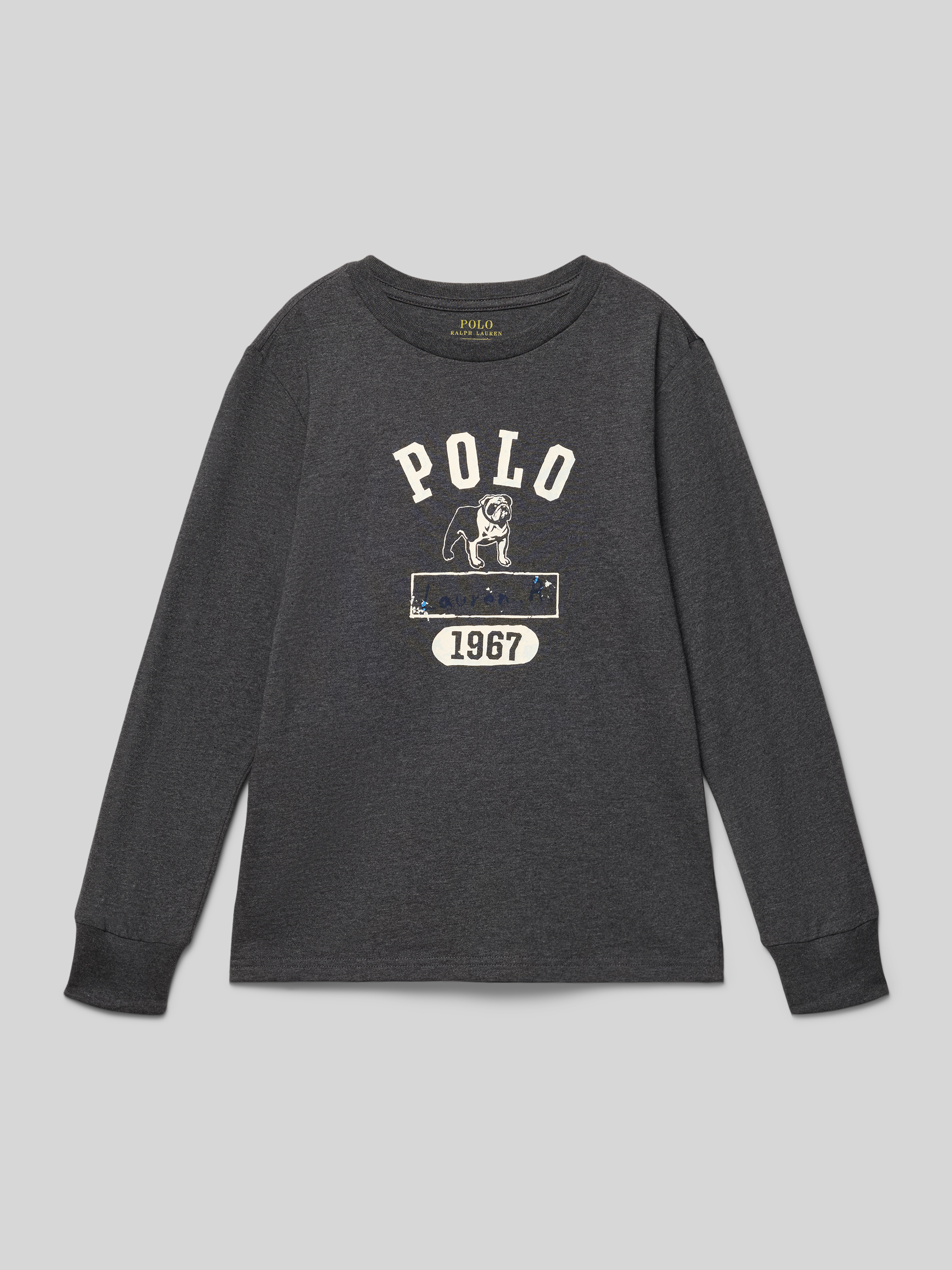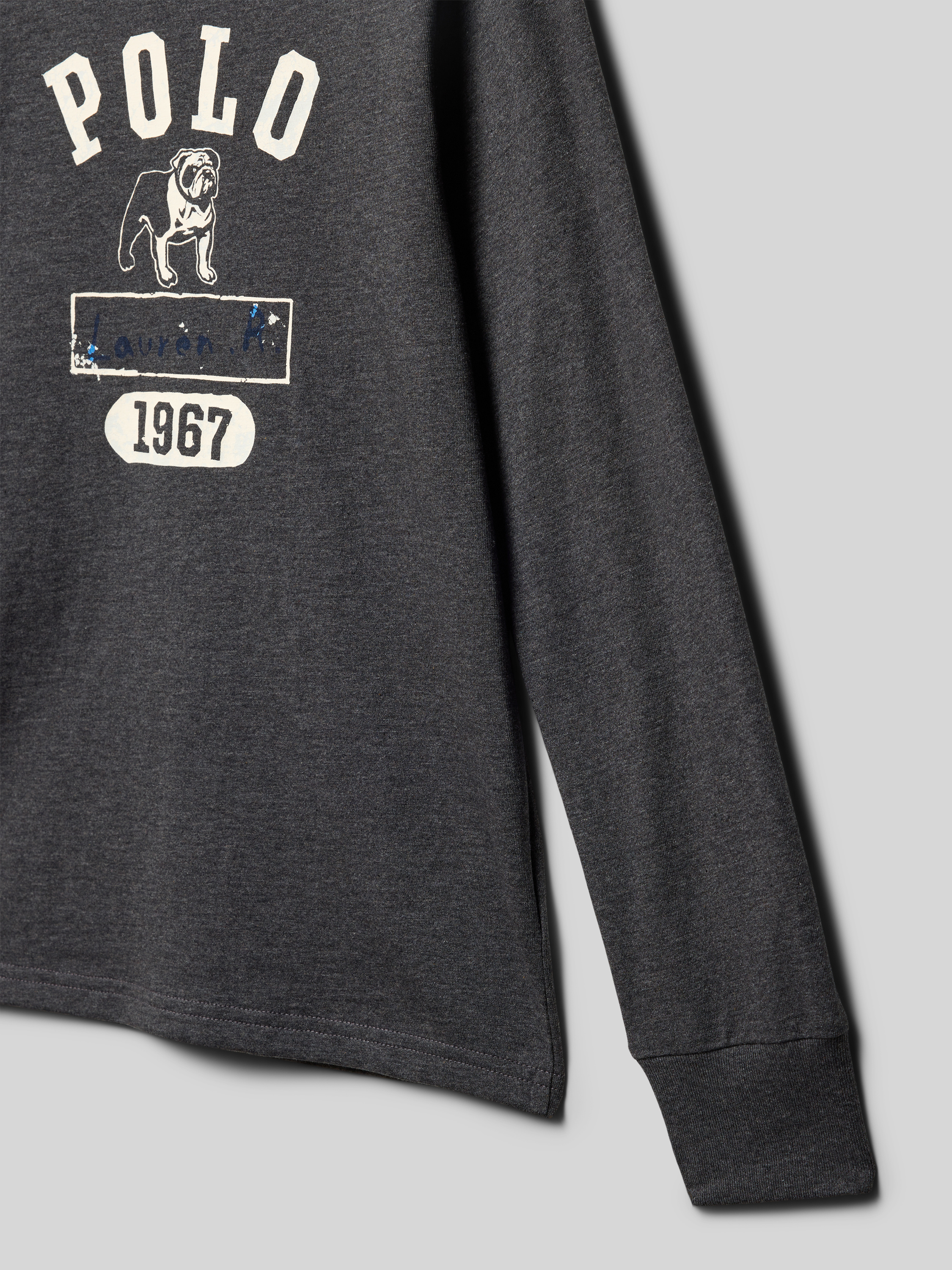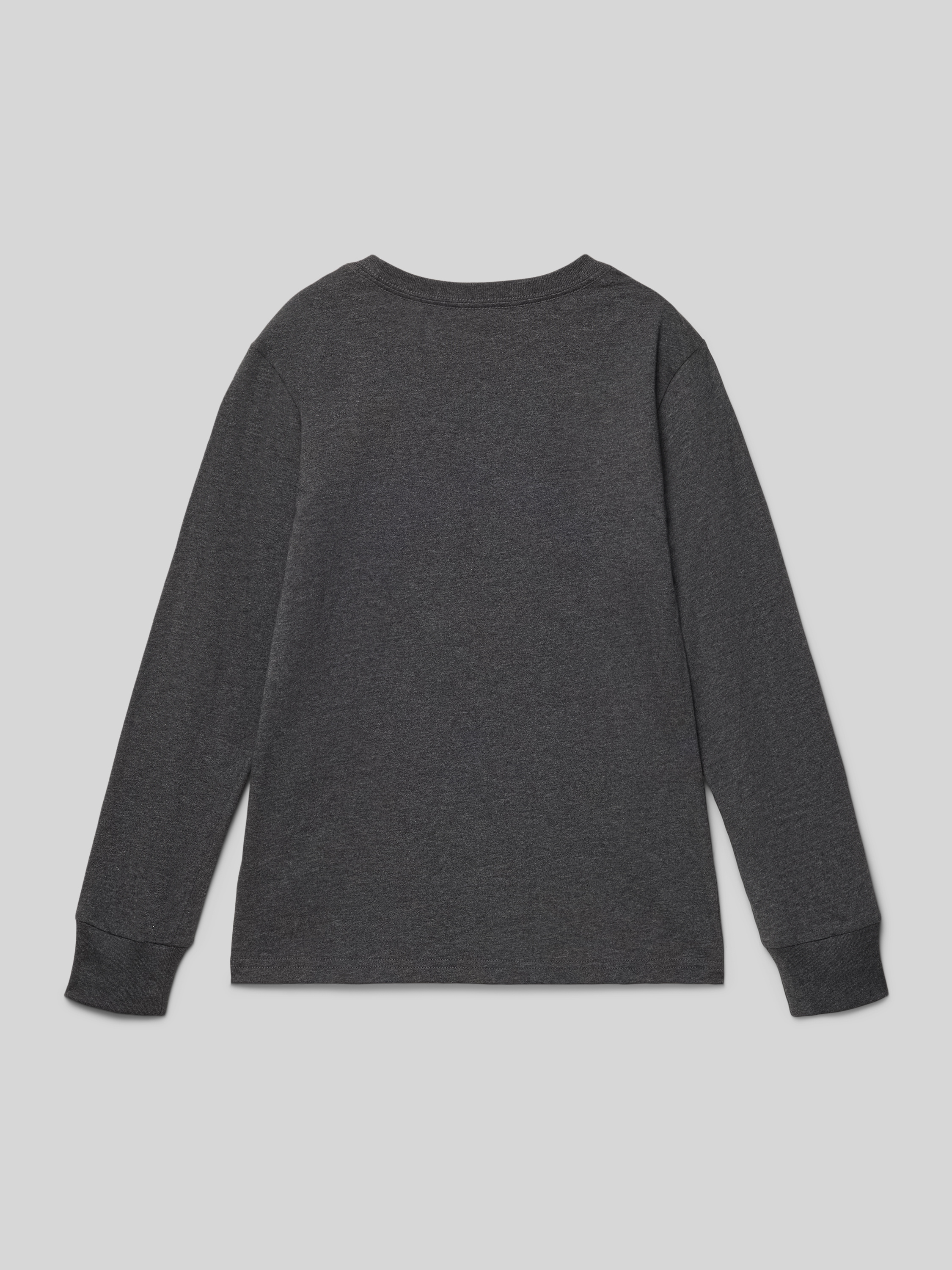 Shirt met lange mouwen en labelprint in middengrijs gemêleerd