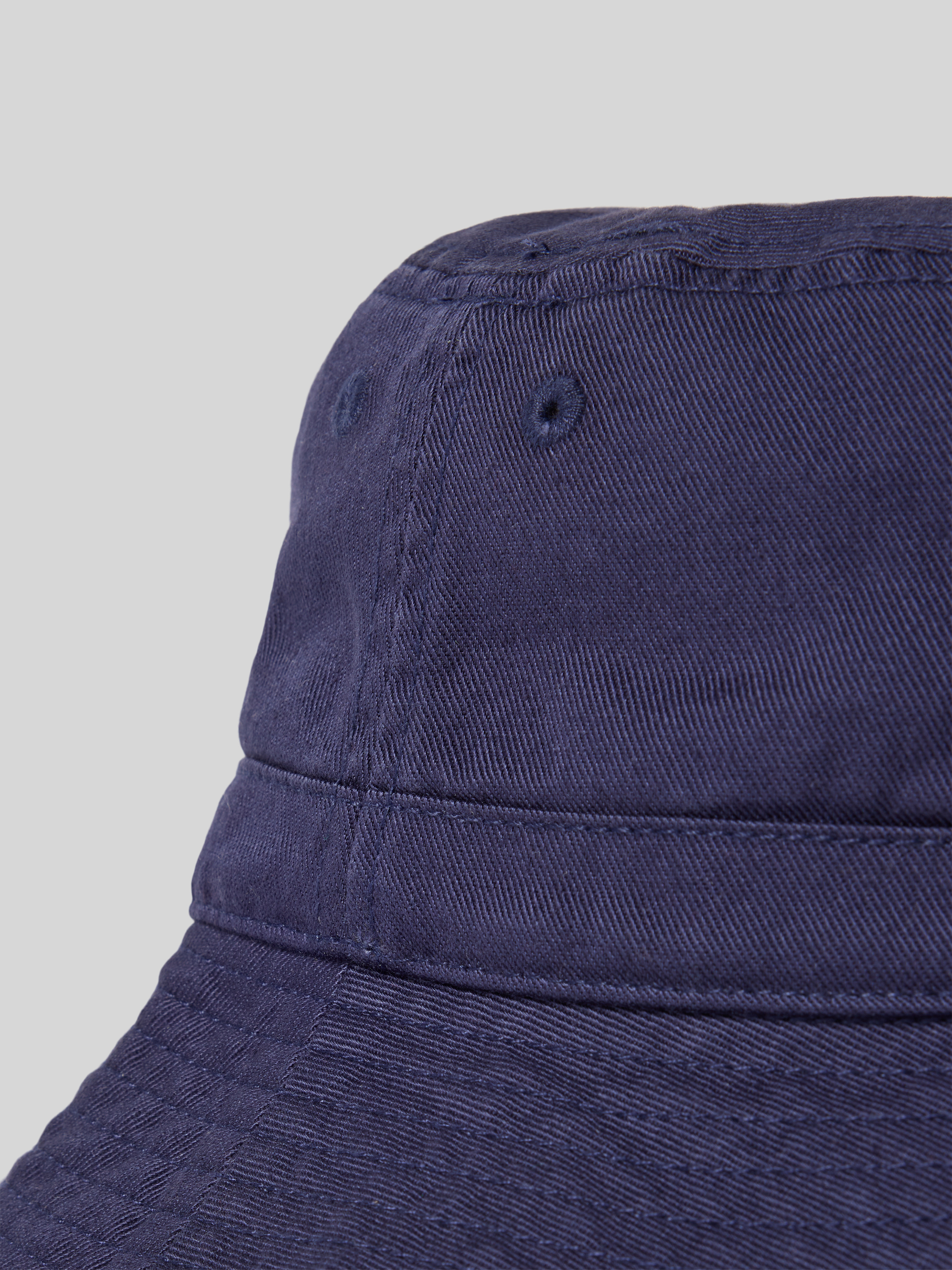 Vissershoedje met label- en motiefstitching in marineblauw
