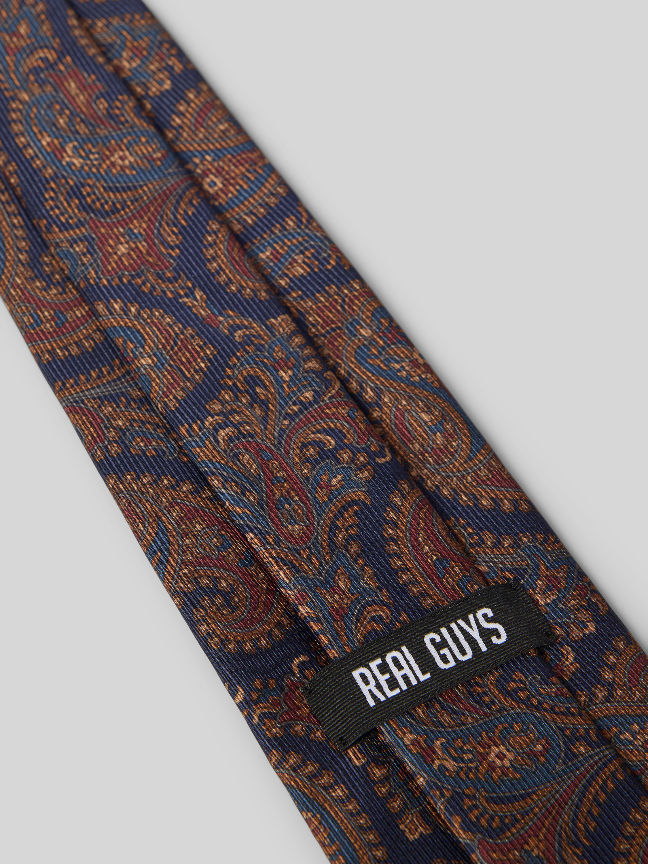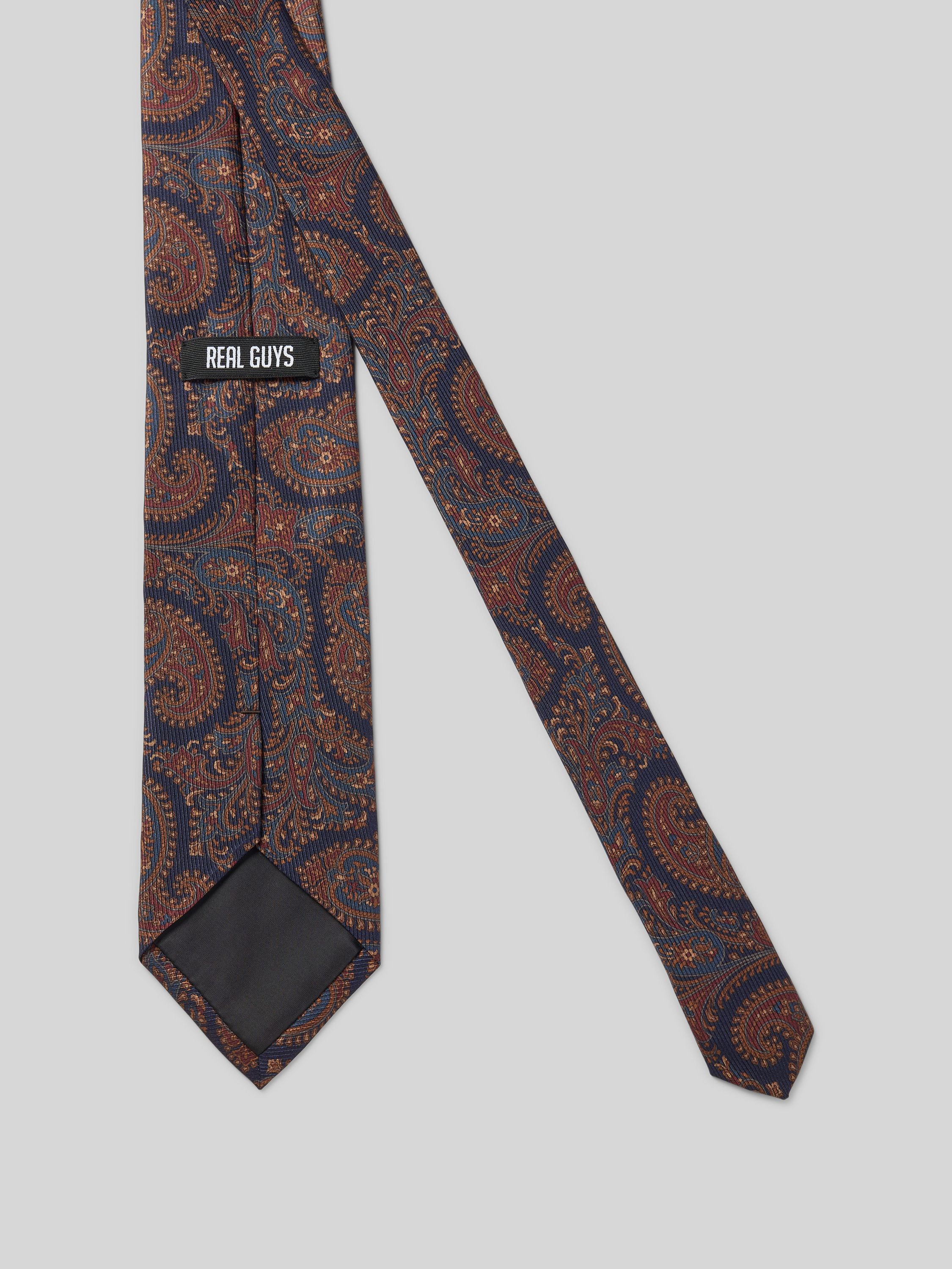 REAL GUYSZijden stropdas met logopatch (8,5 cm) in marineblauw
