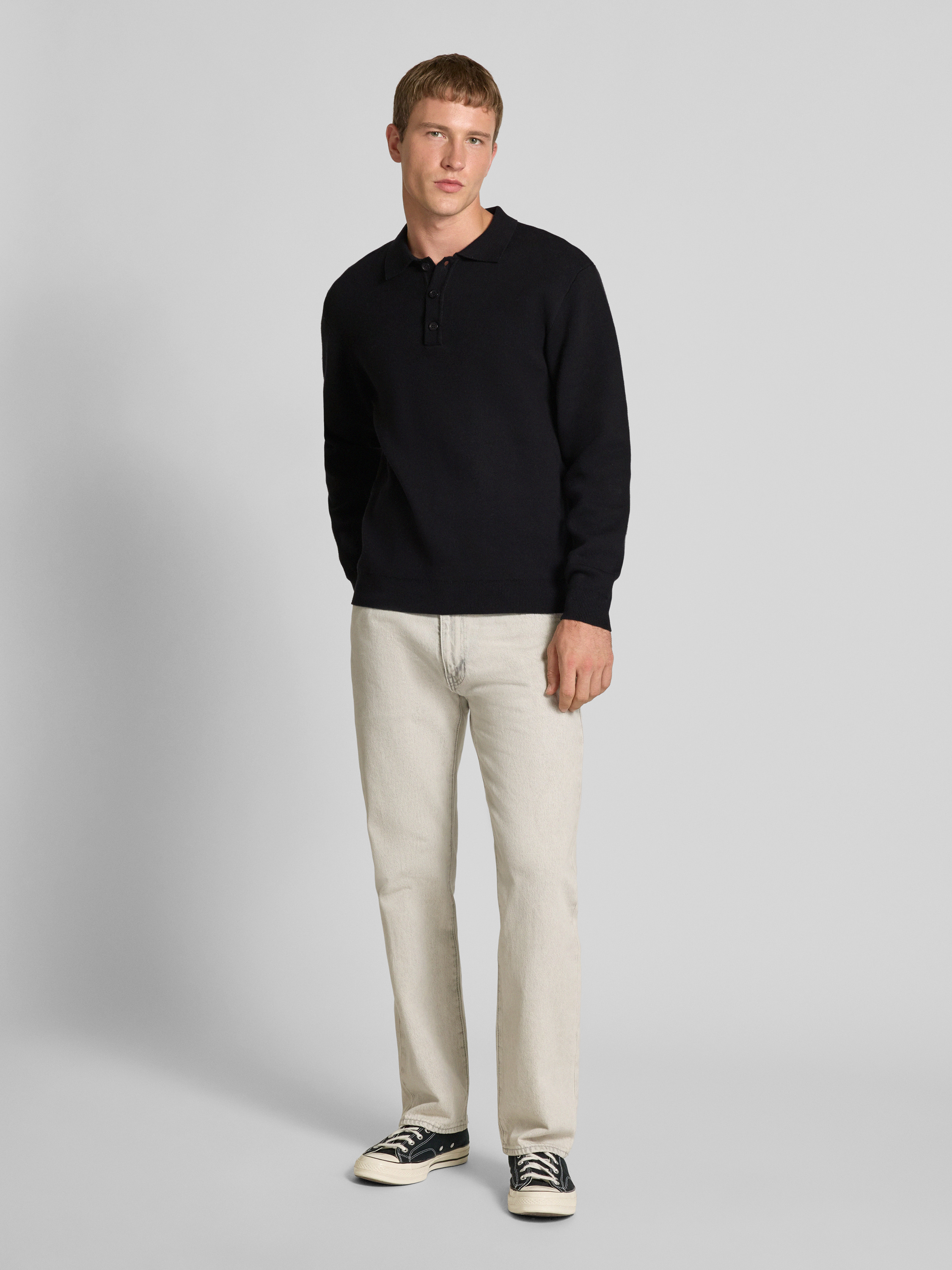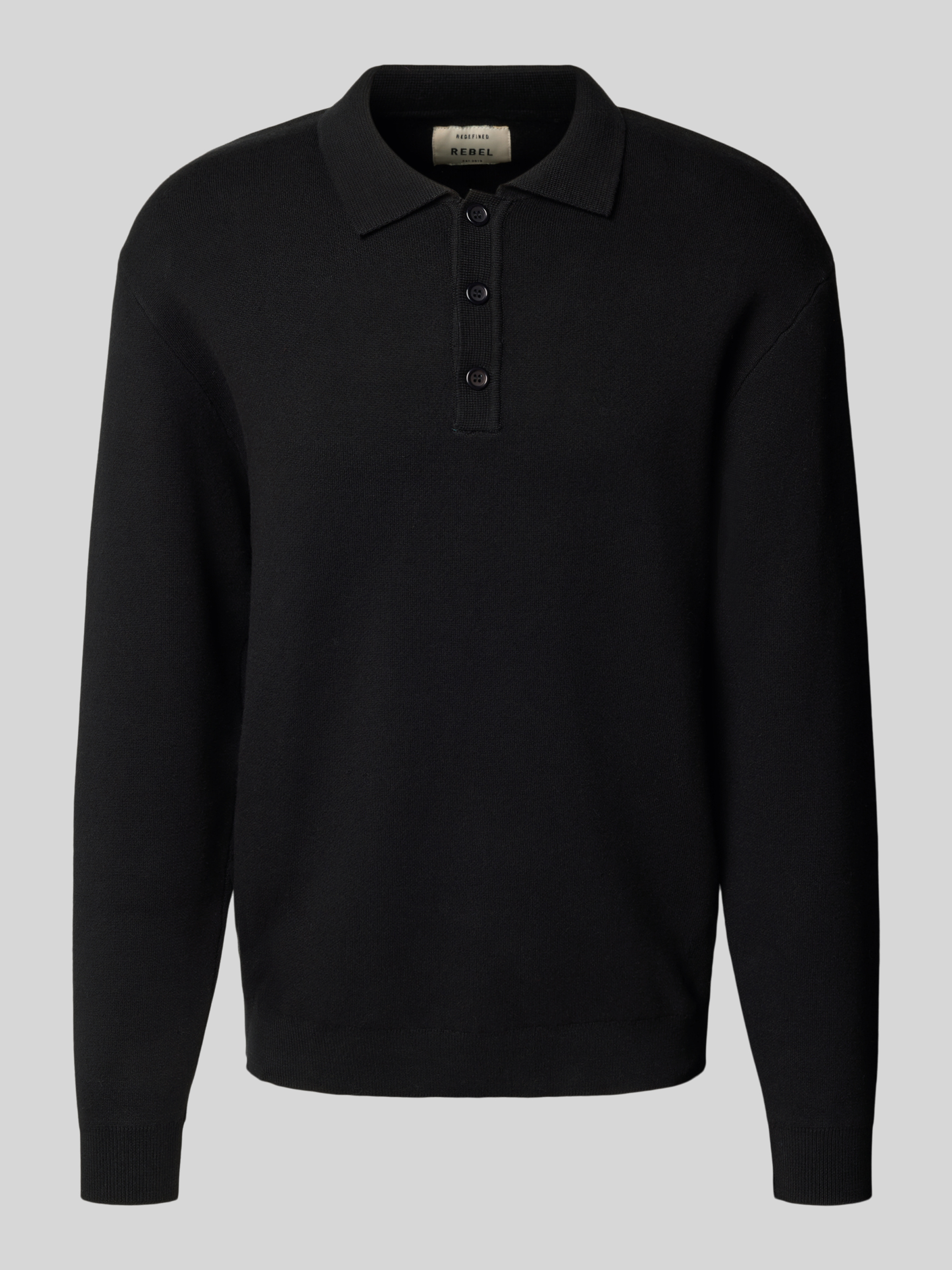 Gebreide pullover met kentkraag, model 'Peter' in zwart
