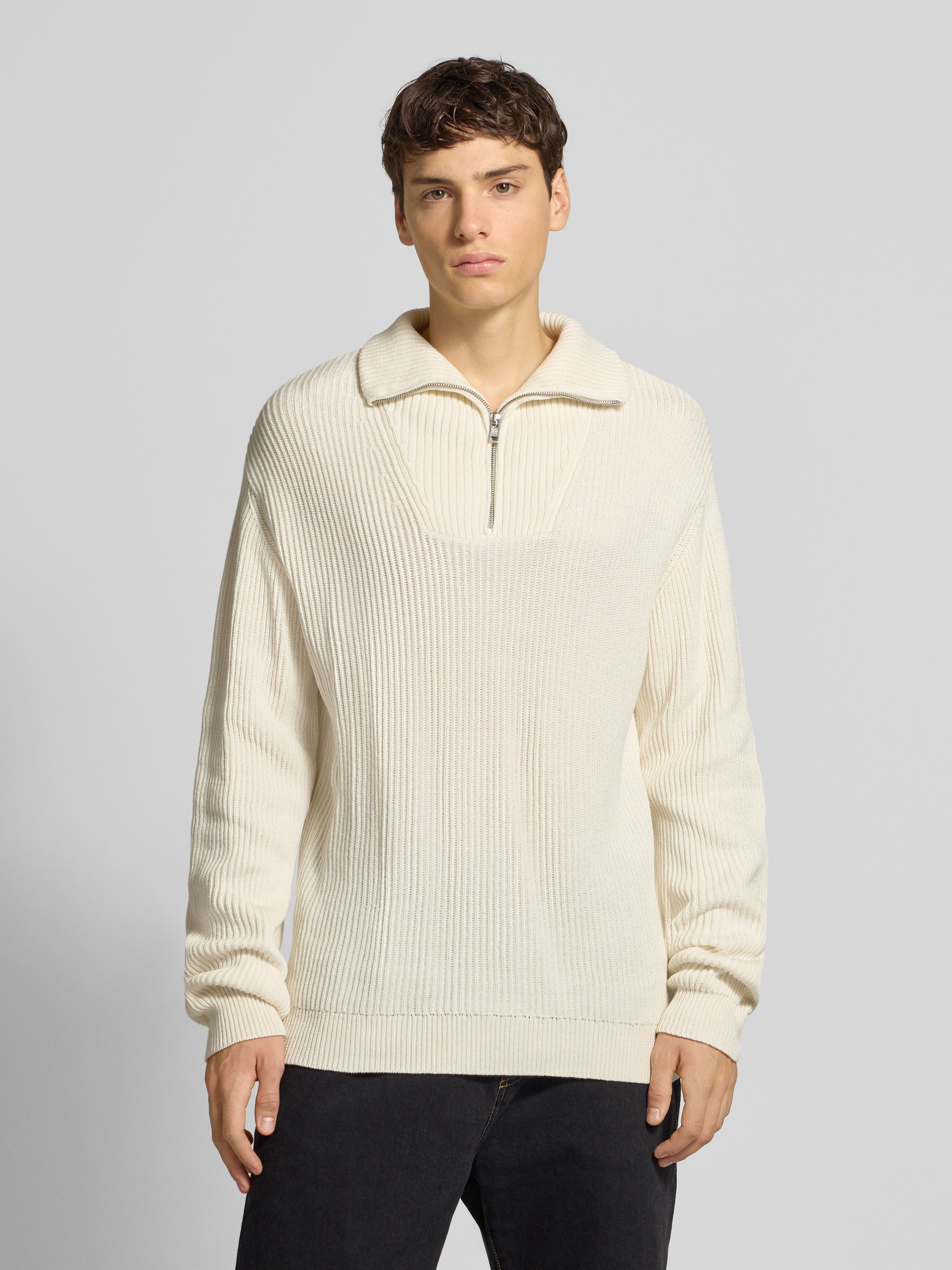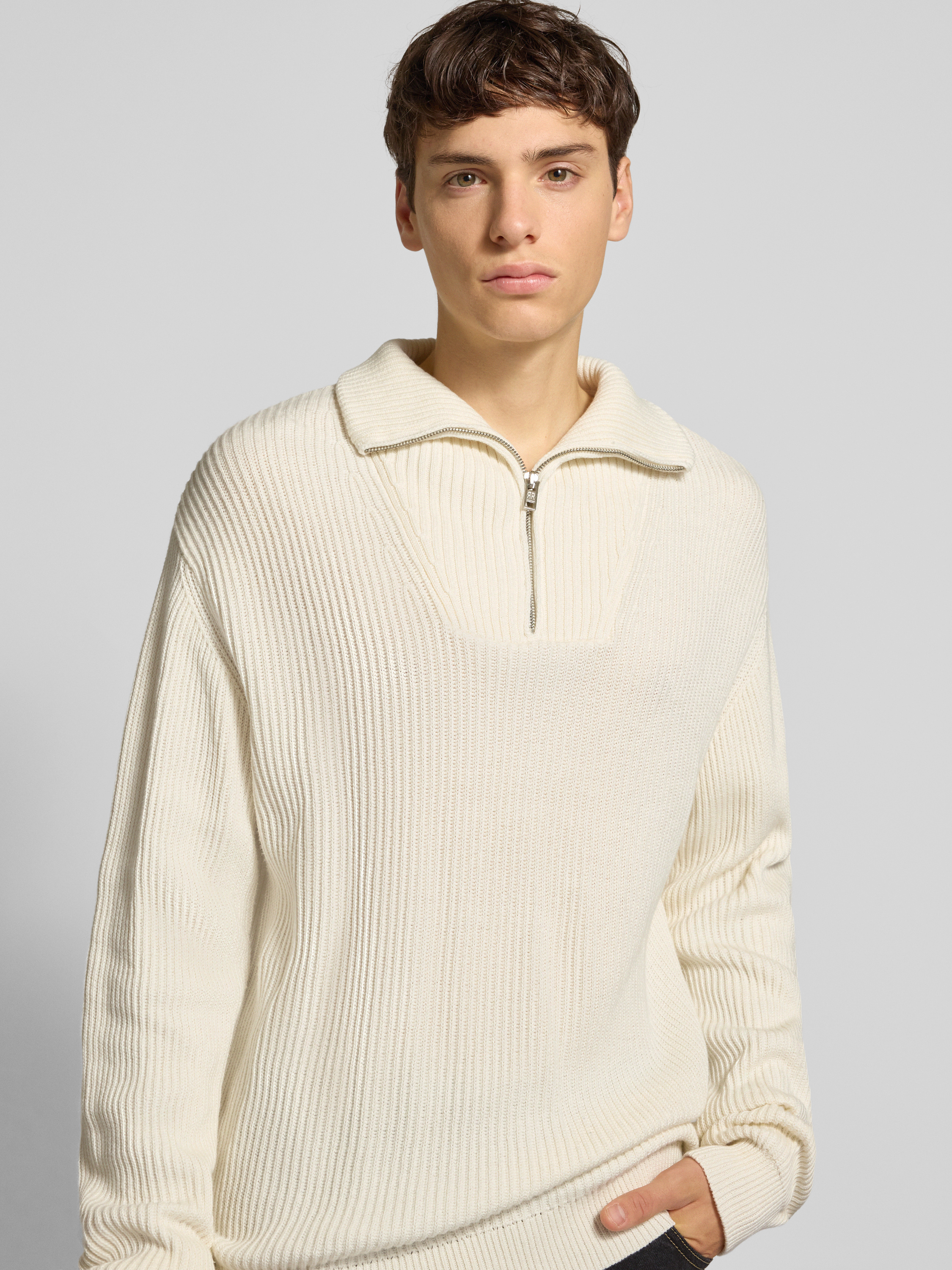 Gebreide pullover met ribboorden, model 'RIVER' in offwhite