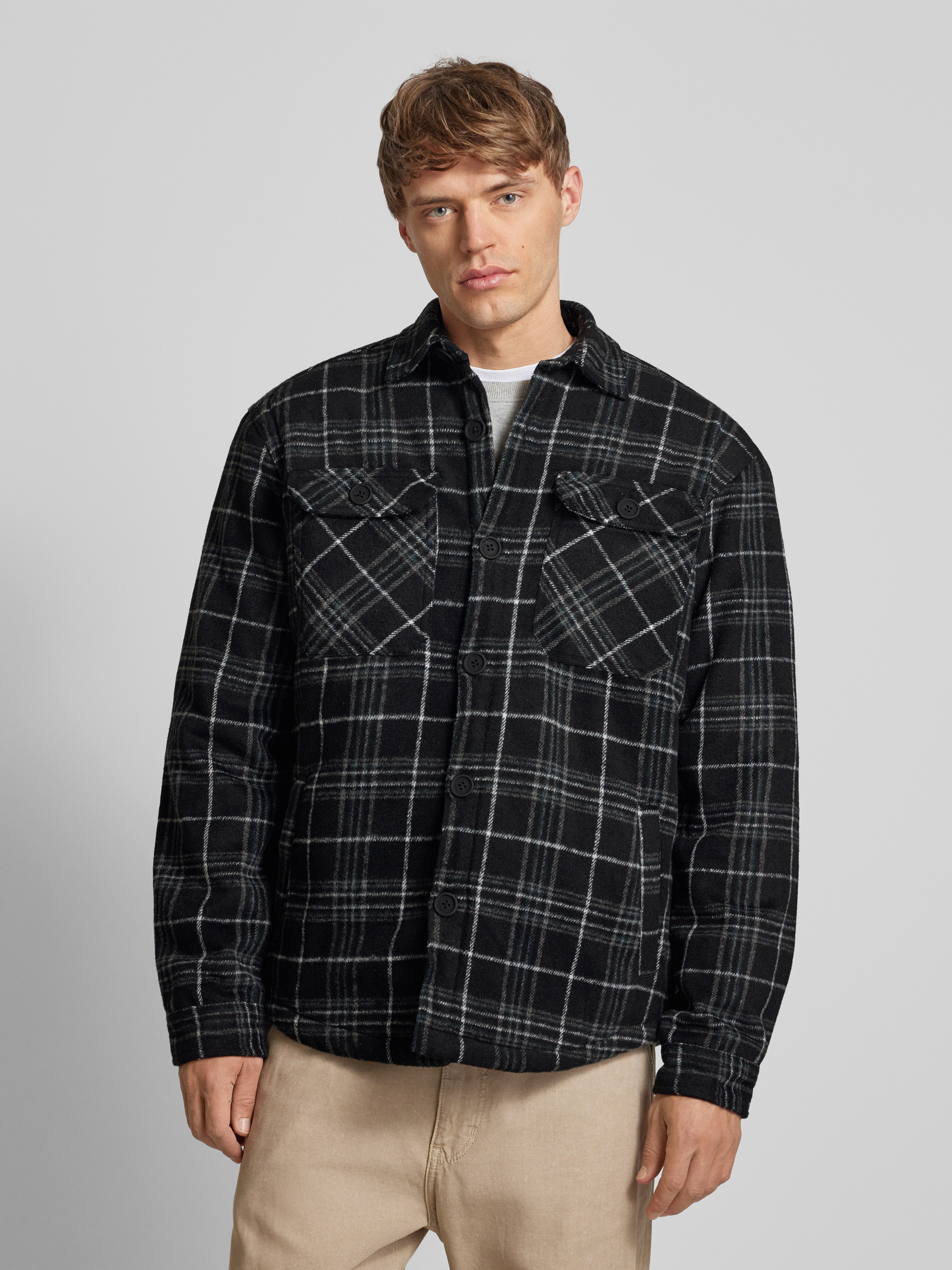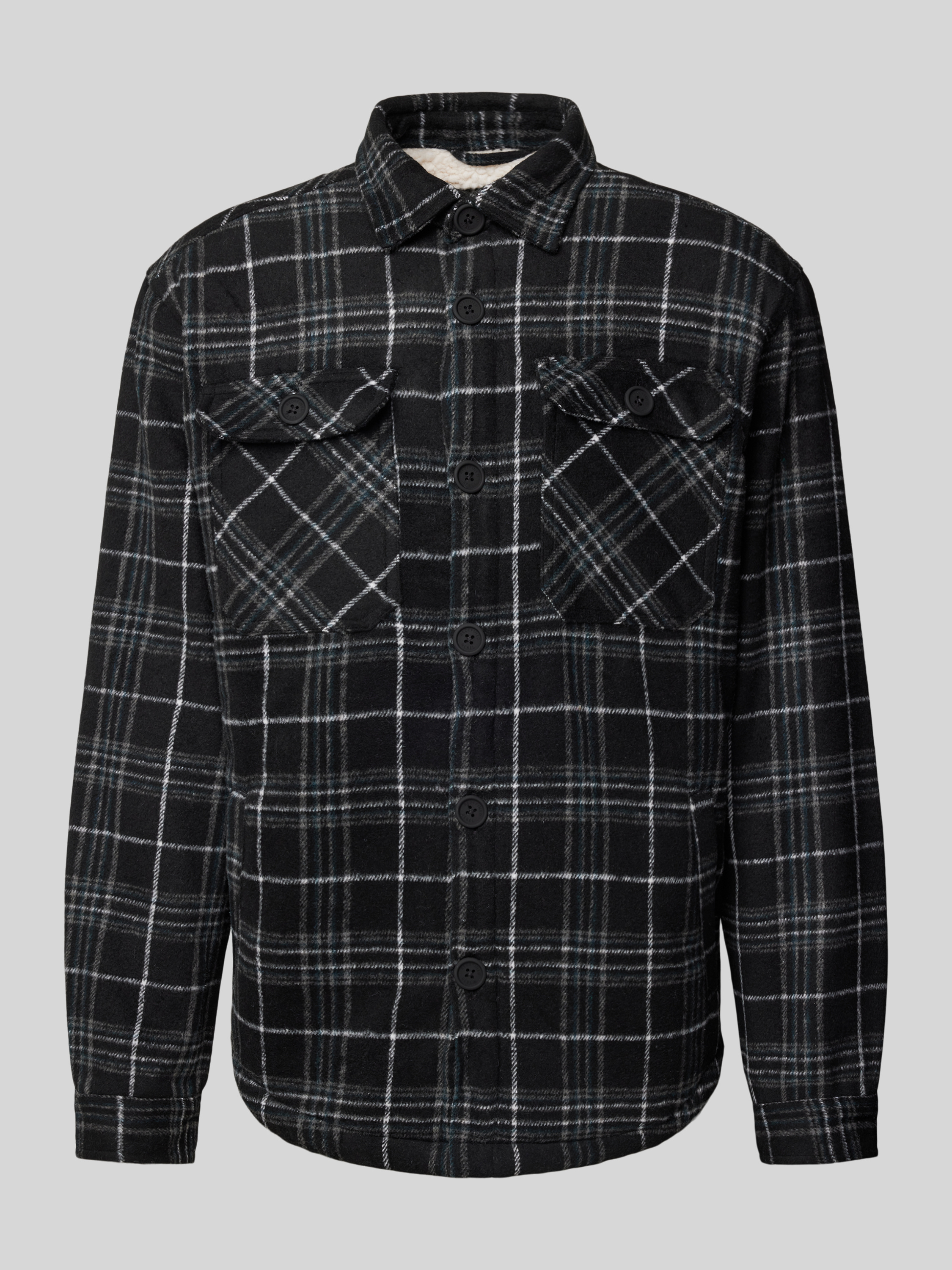 Regular fit overhemdjack met opgestikte paspelzakken op de borst in zwart