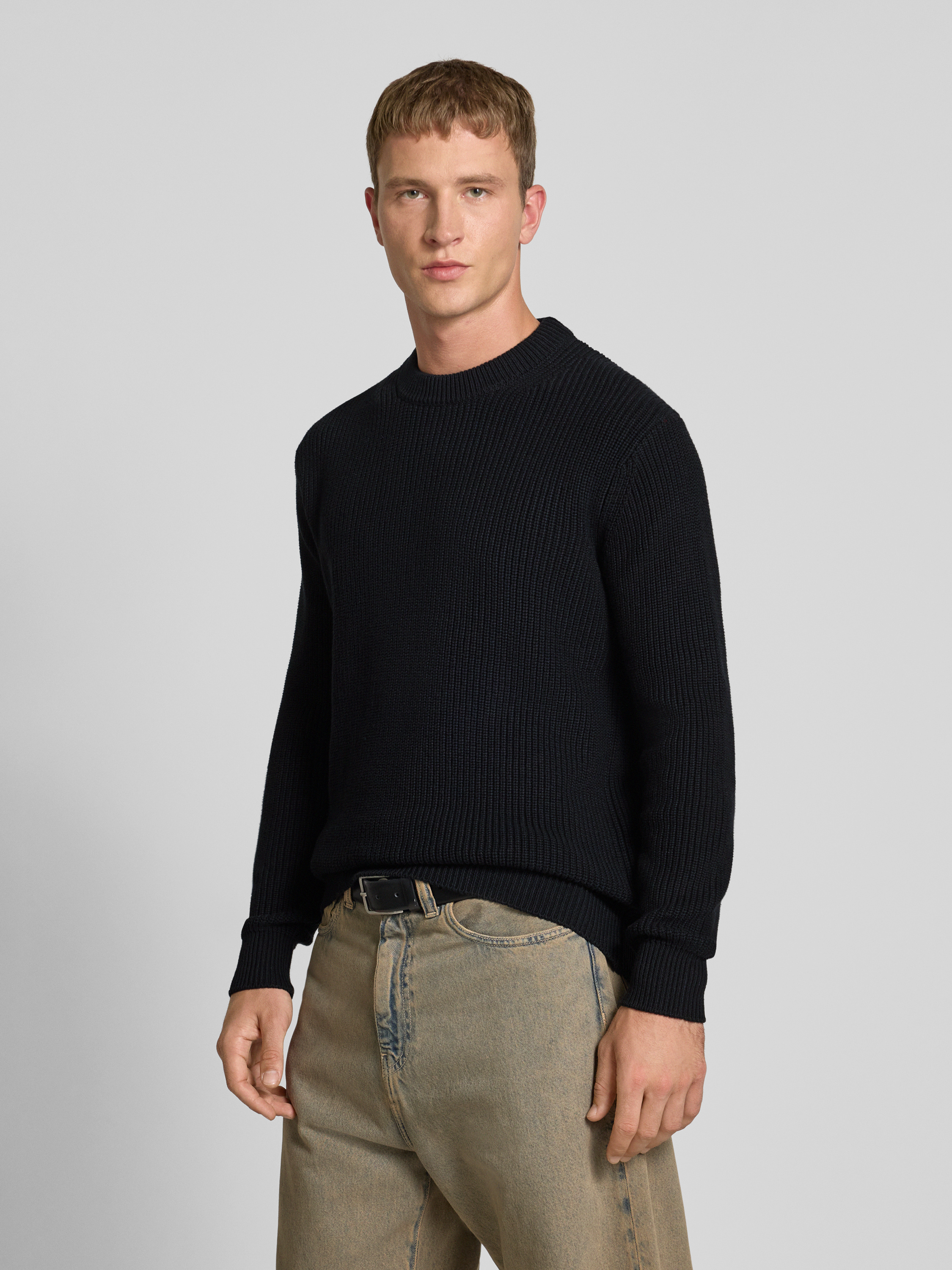 Gebreide pullover met ribboorden in zwart