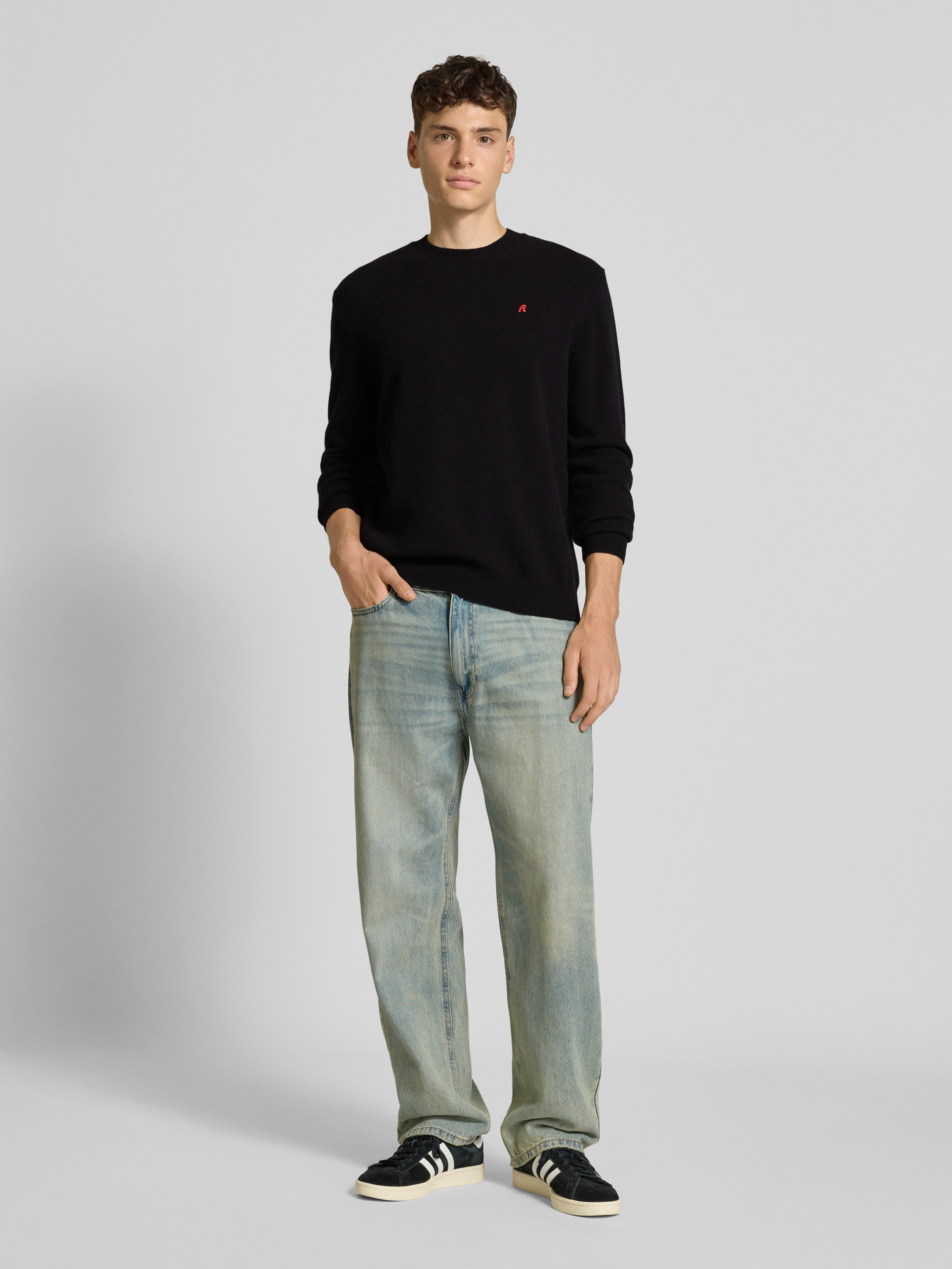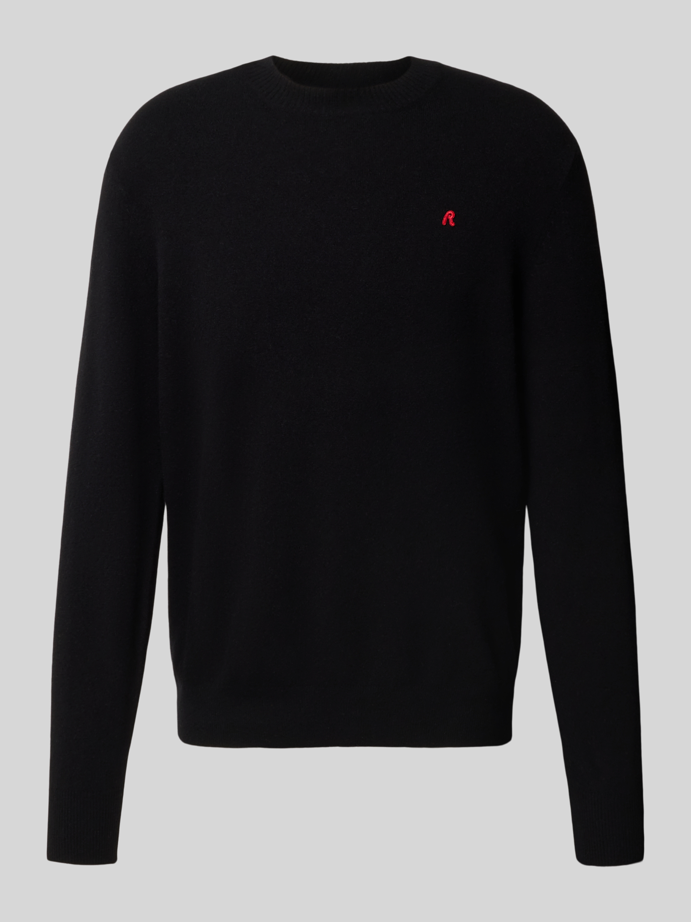 Gebreide pullover van lanawolmix met ronde hals in zwart