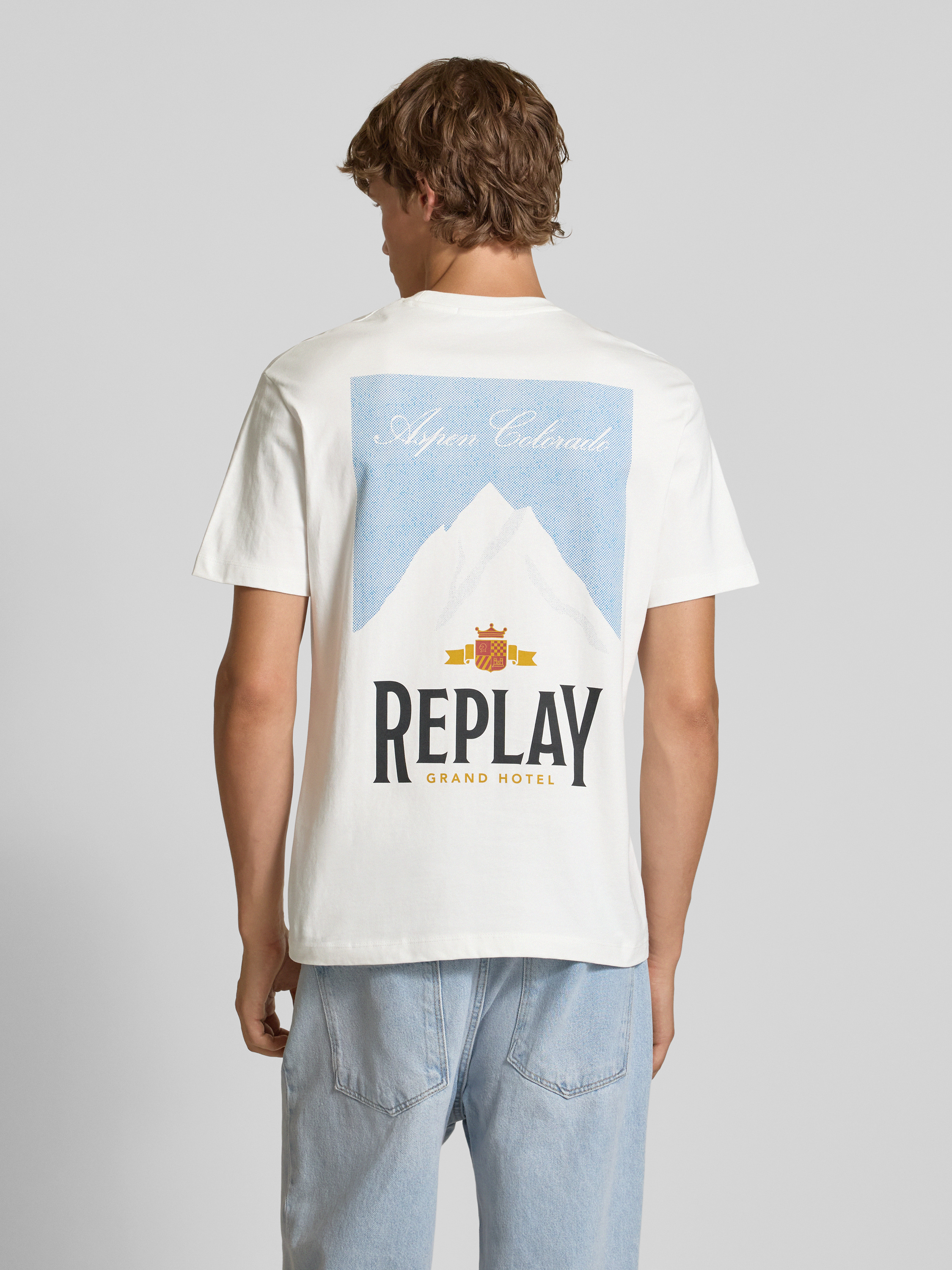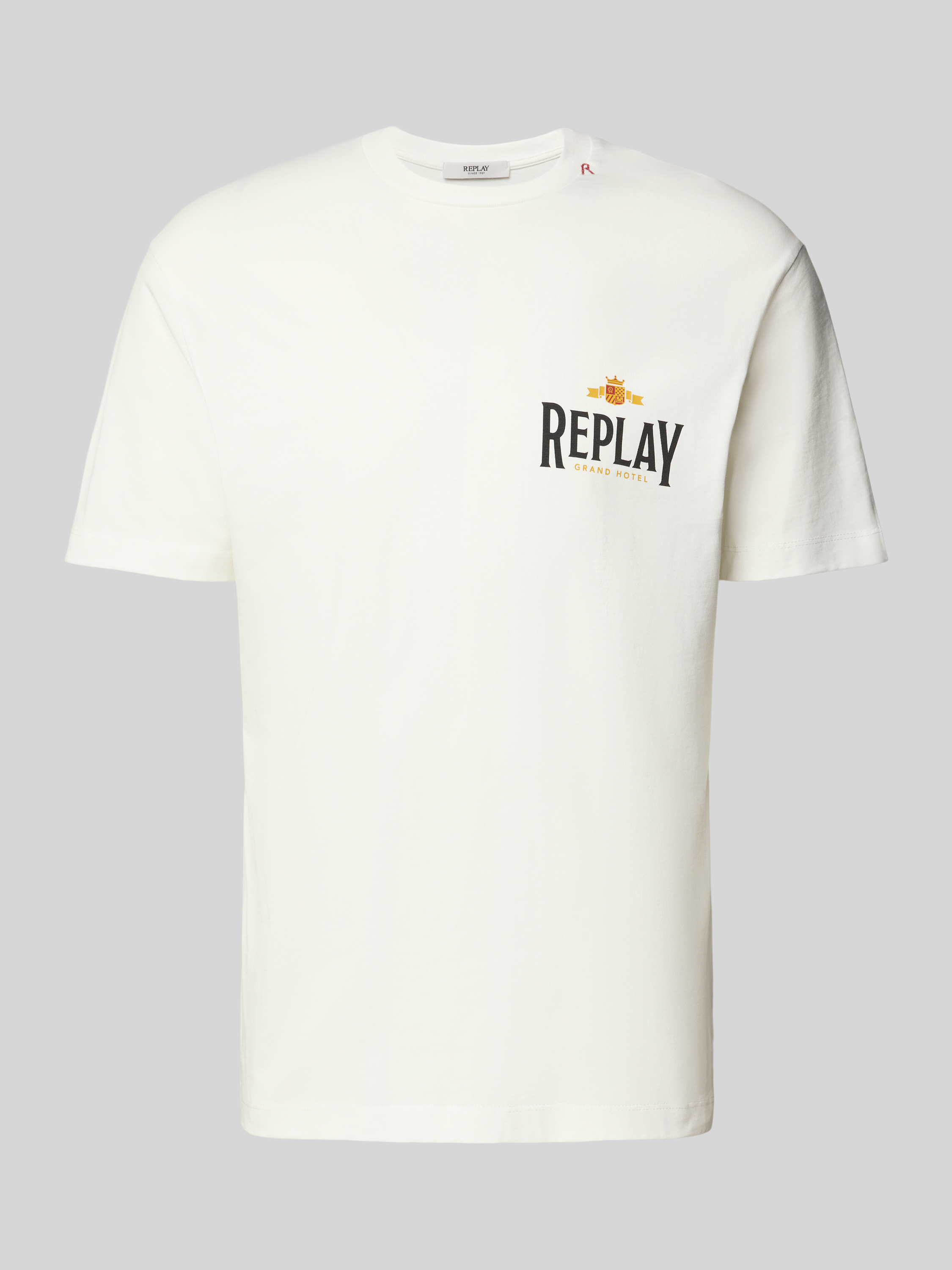Regular fit T-shirt van puur katoen met logoprint in offwhite