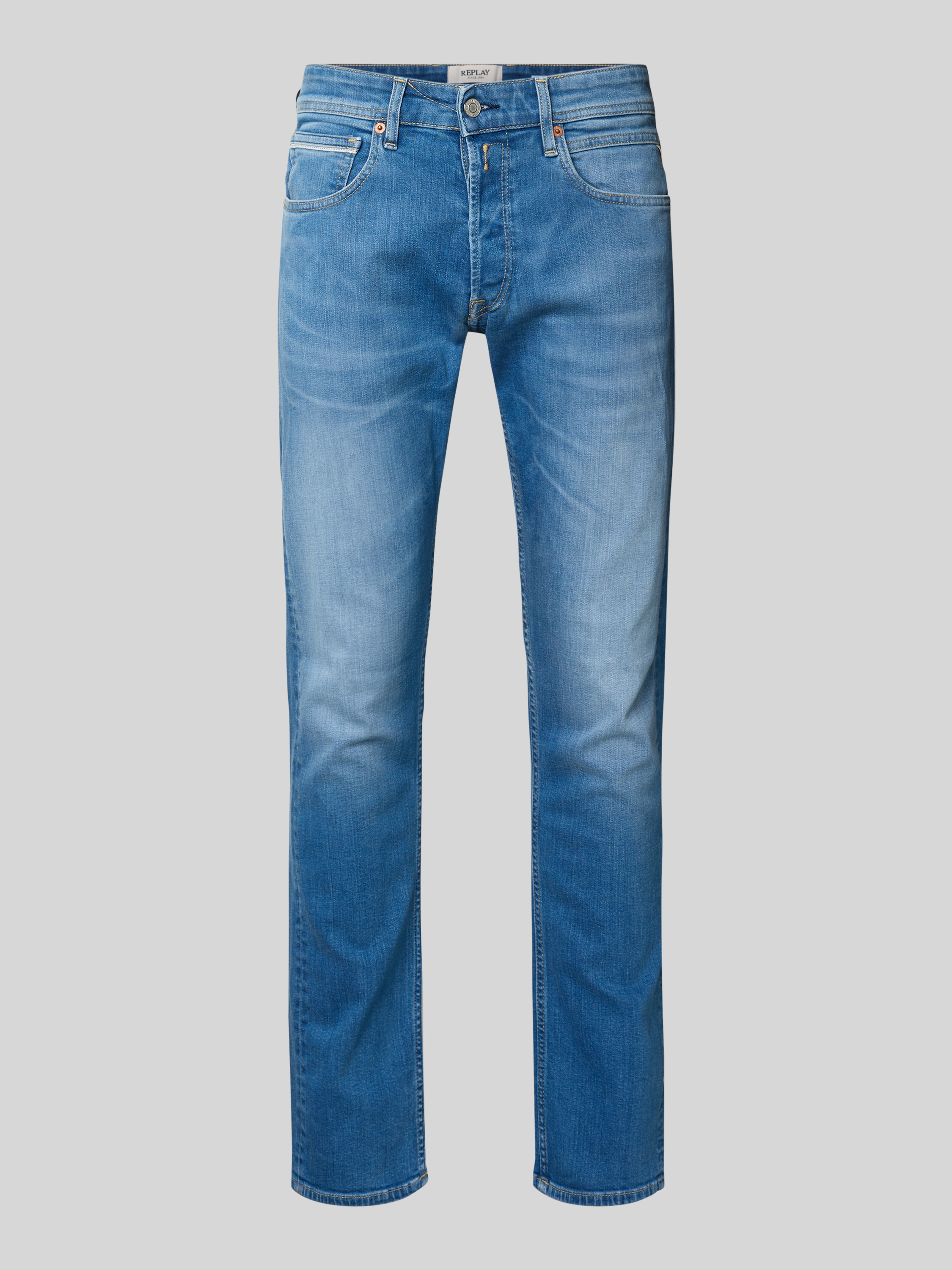 Straight fit jeans in used-look, model 'GROVER' in jeansblauw