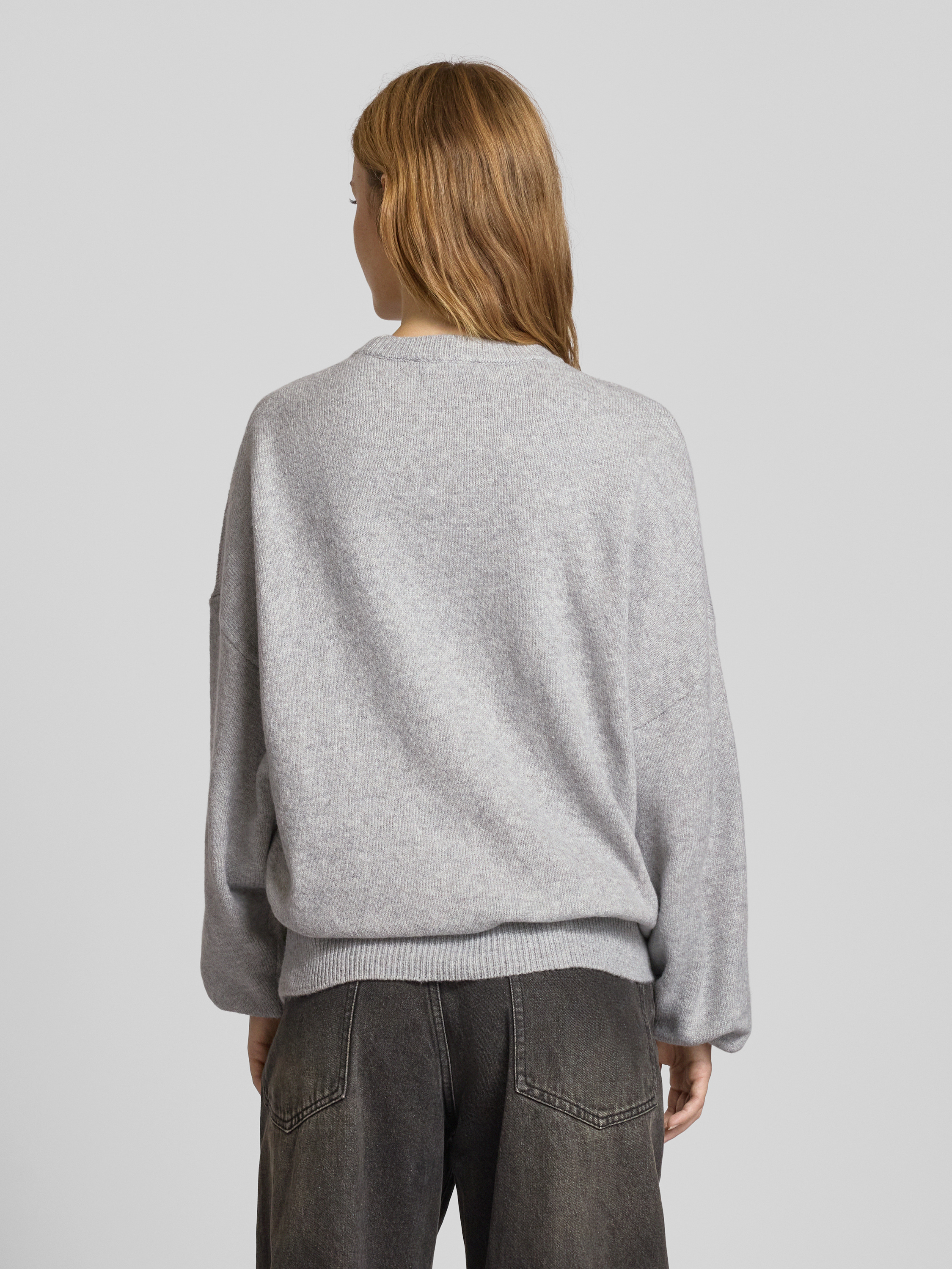 Gebreide pullover met labelprint in lichtgrijs gemêleerd