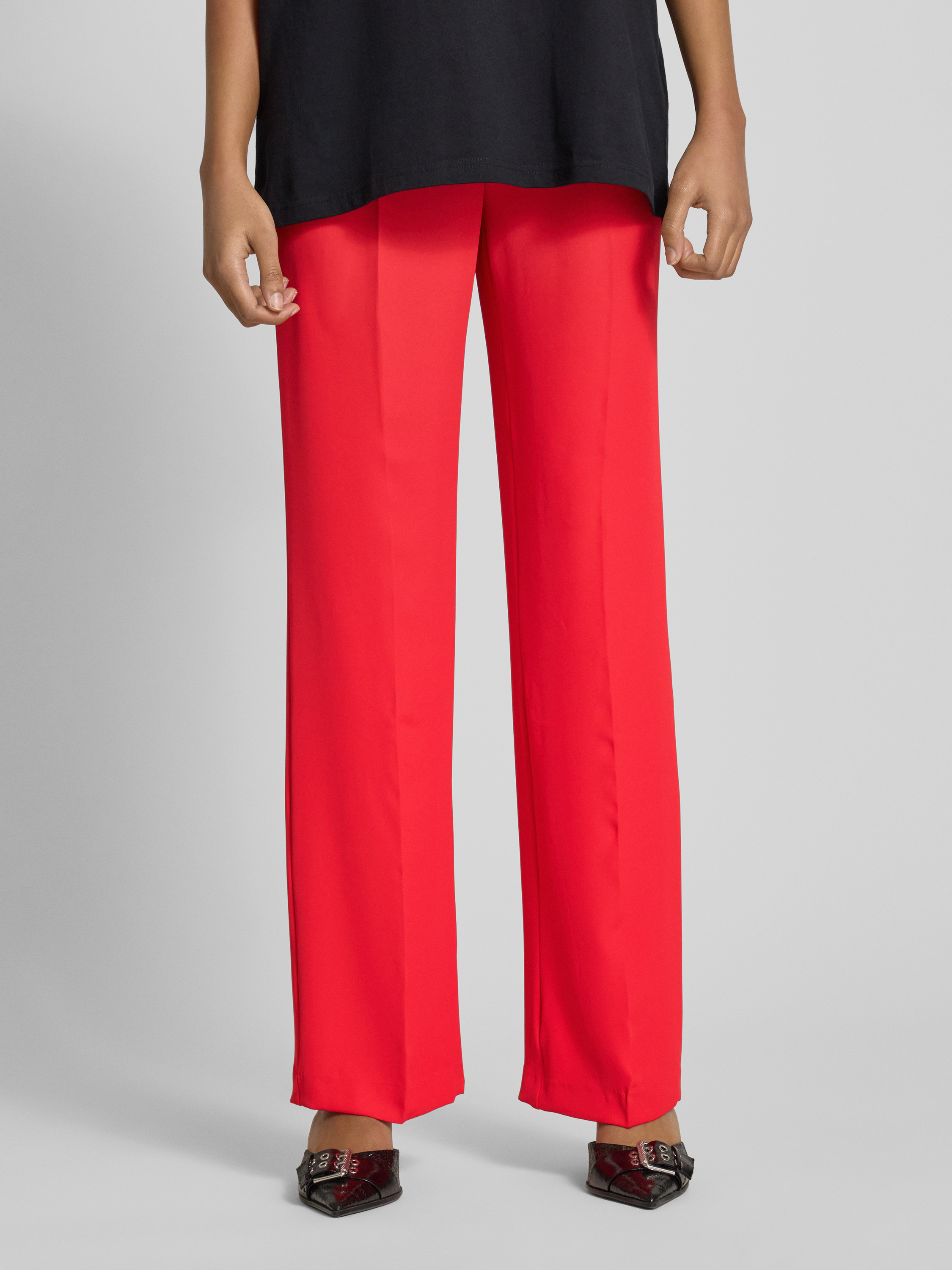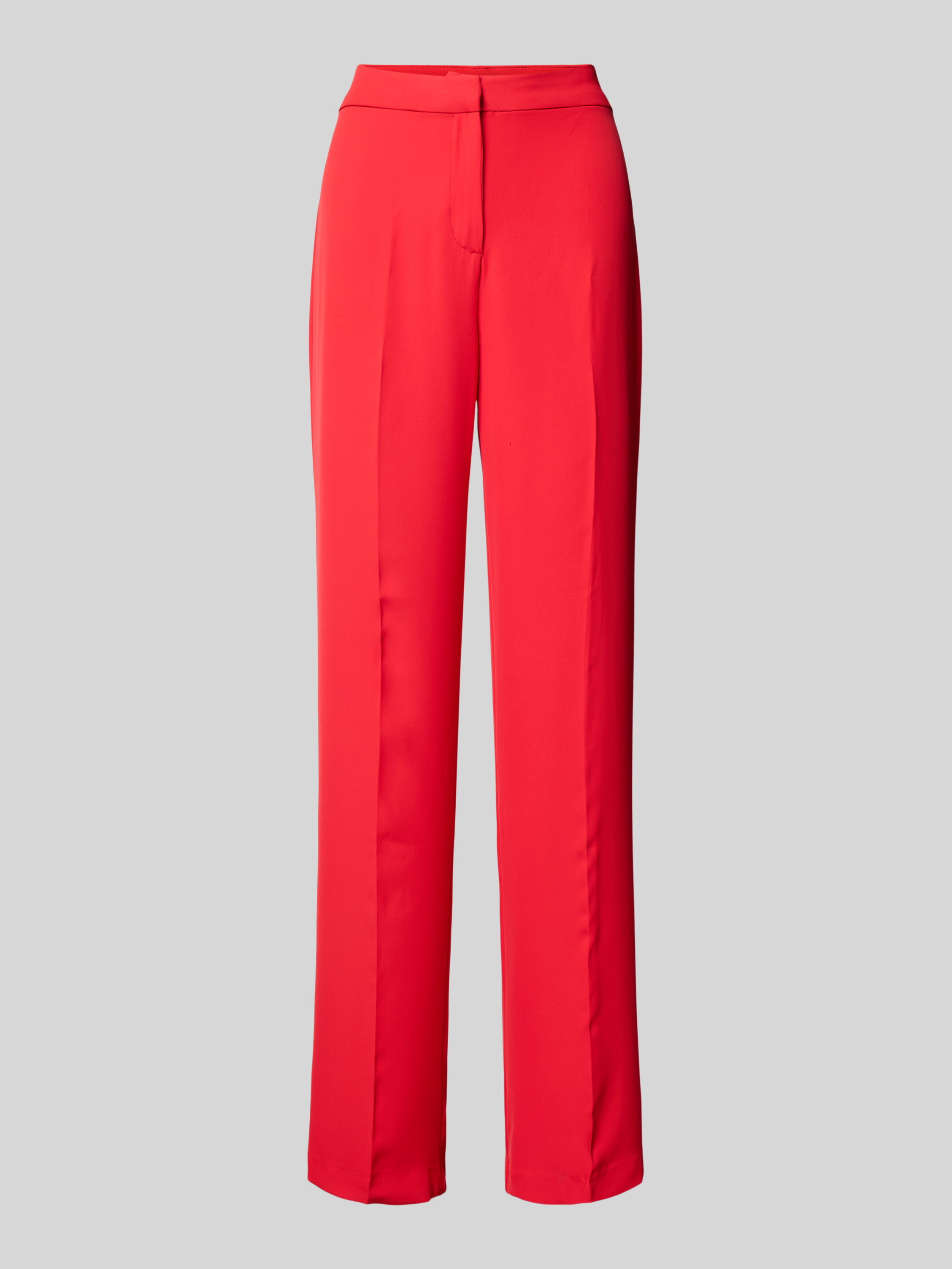 High waist stoffen broek met persplooien in kersenrood