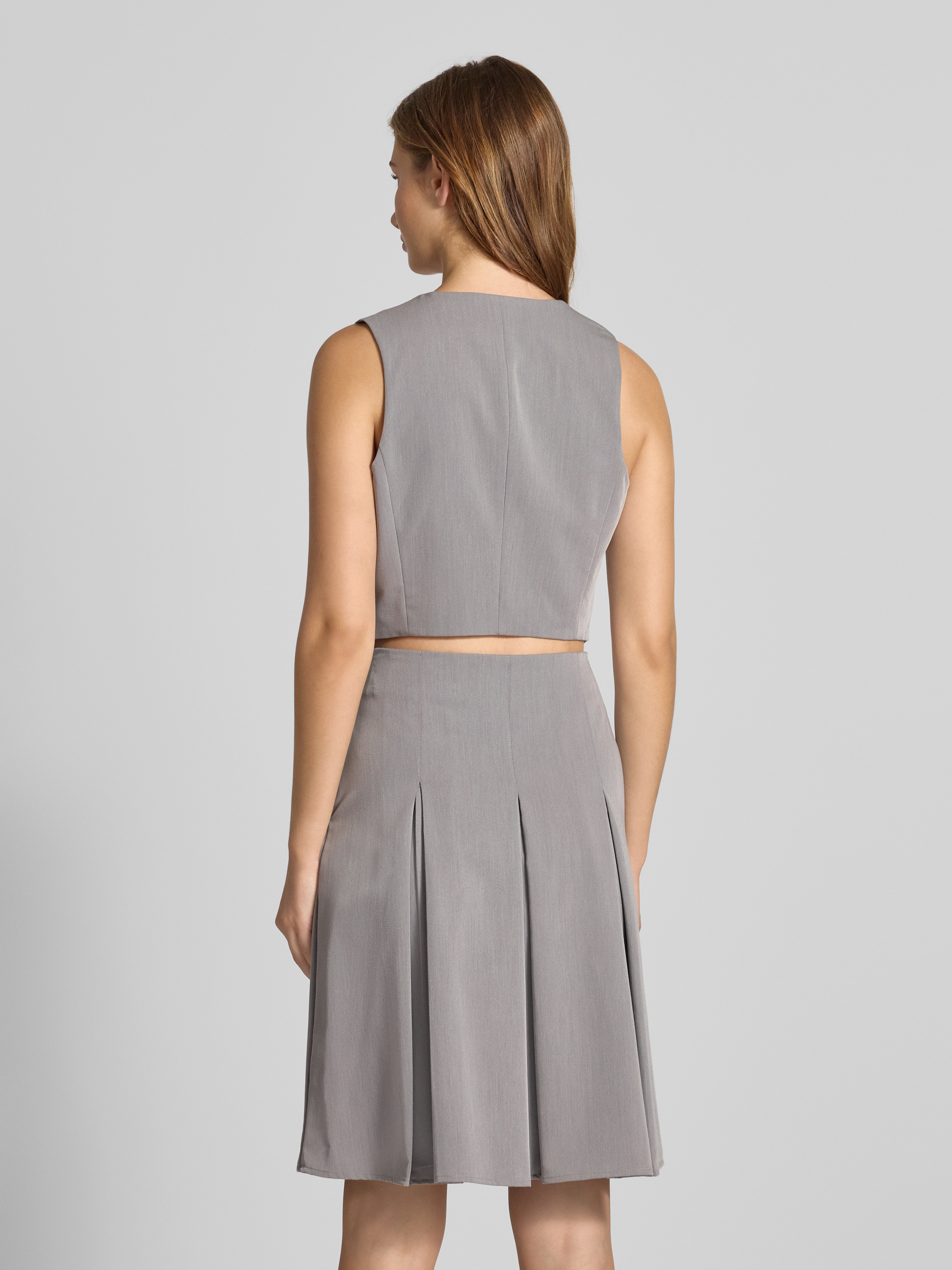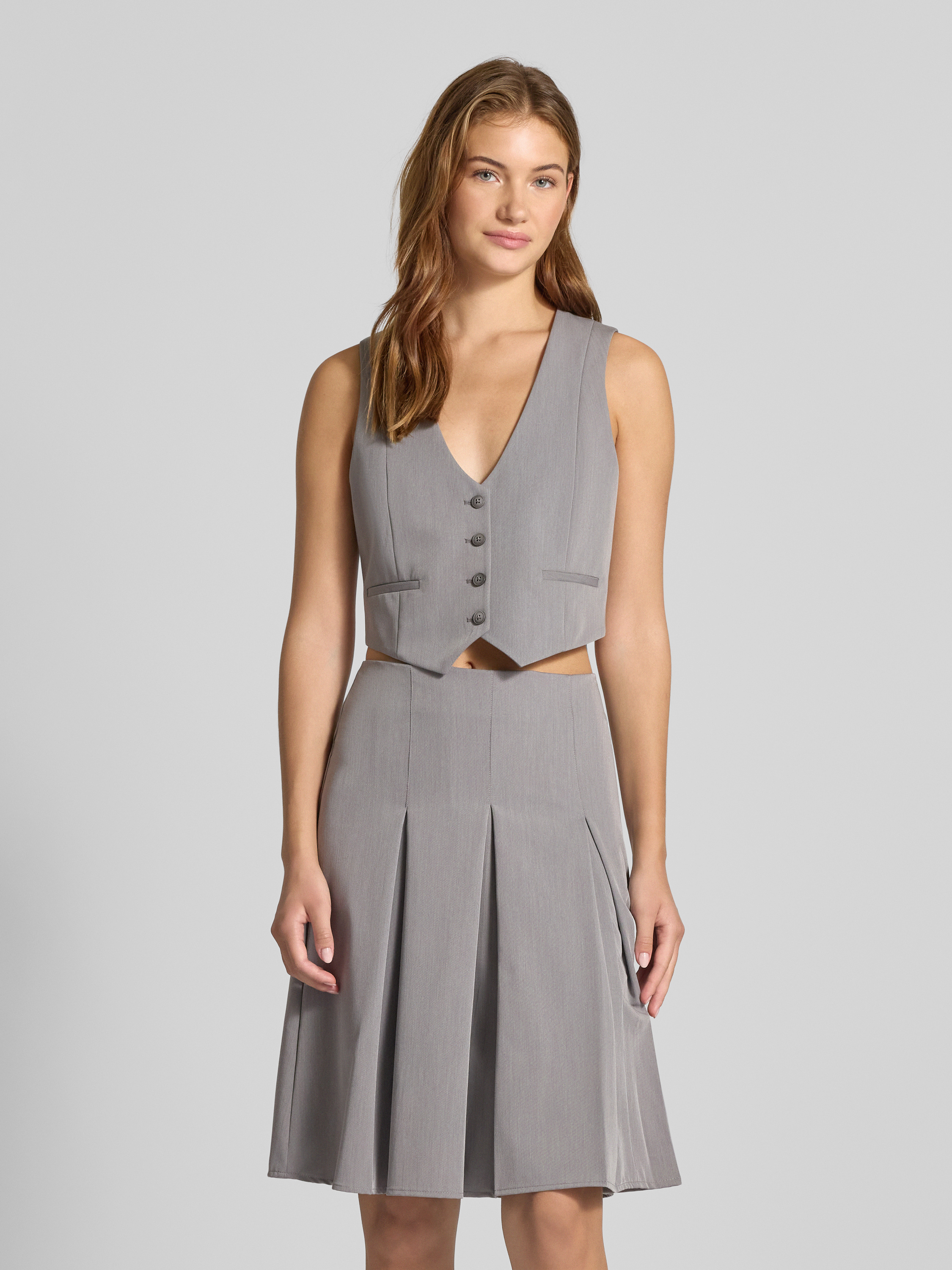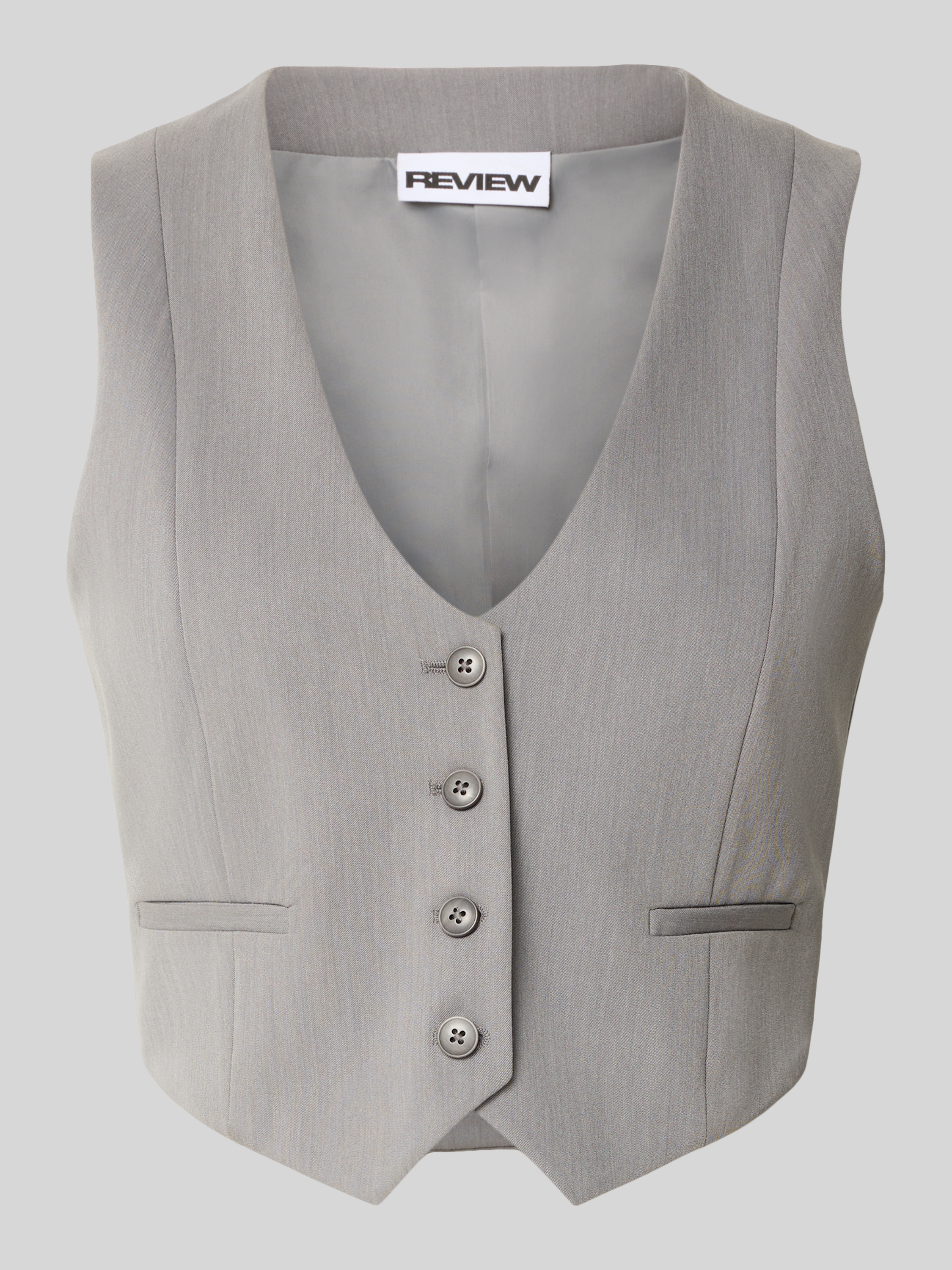 Kort gilet met V-hals en paspelzakken in middengrijs