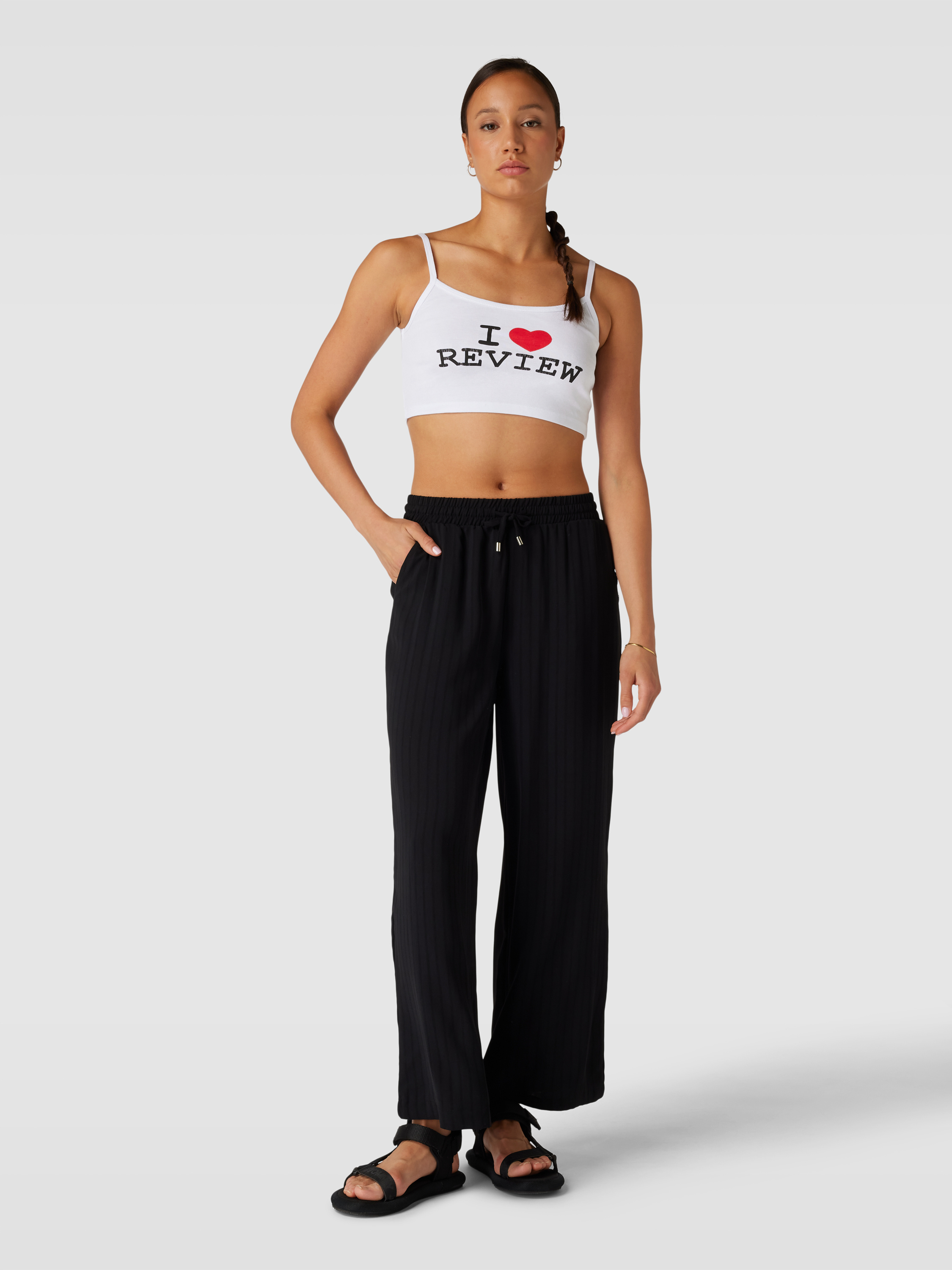 Korte top met print 'I love Review'' in wit