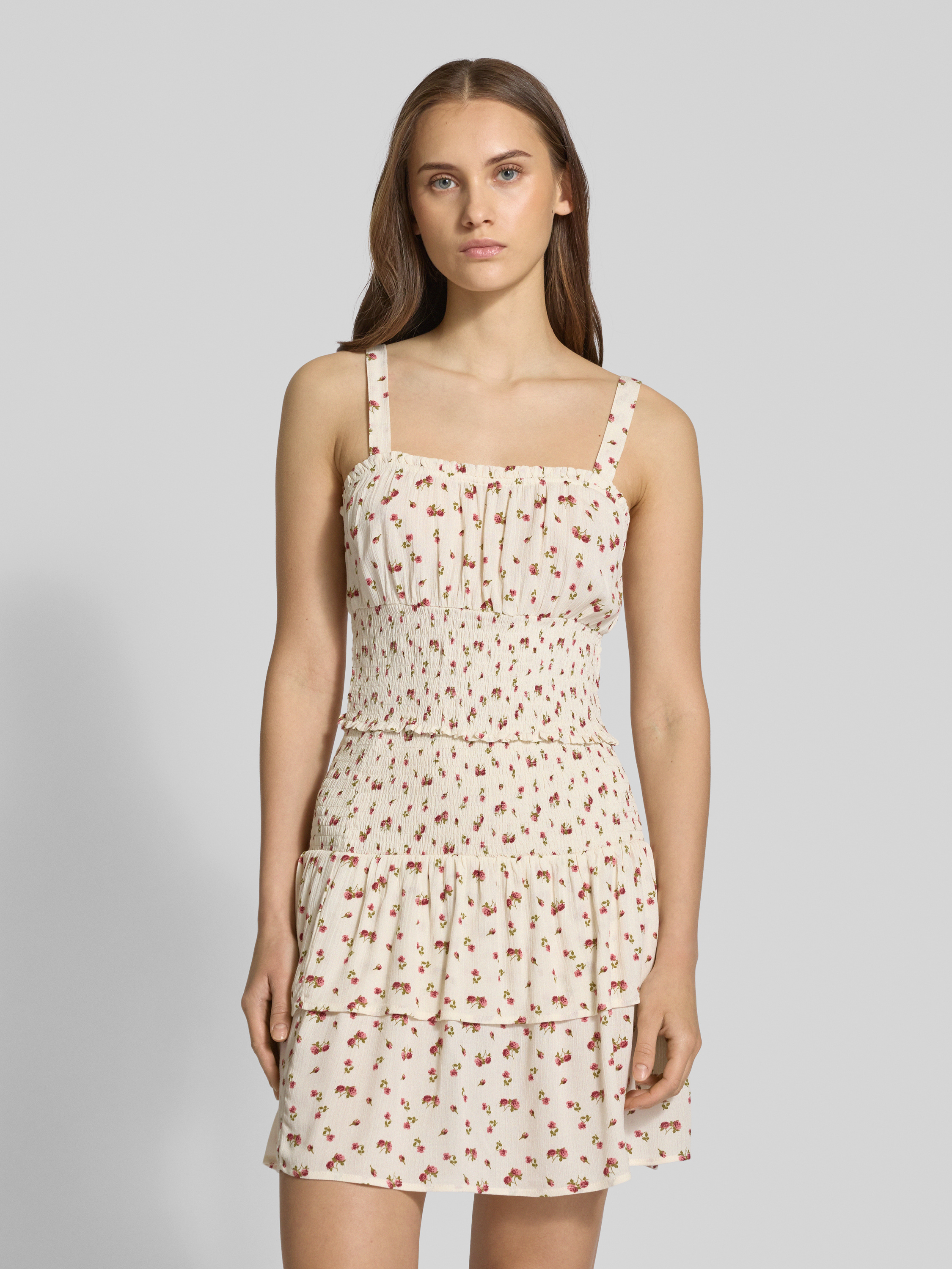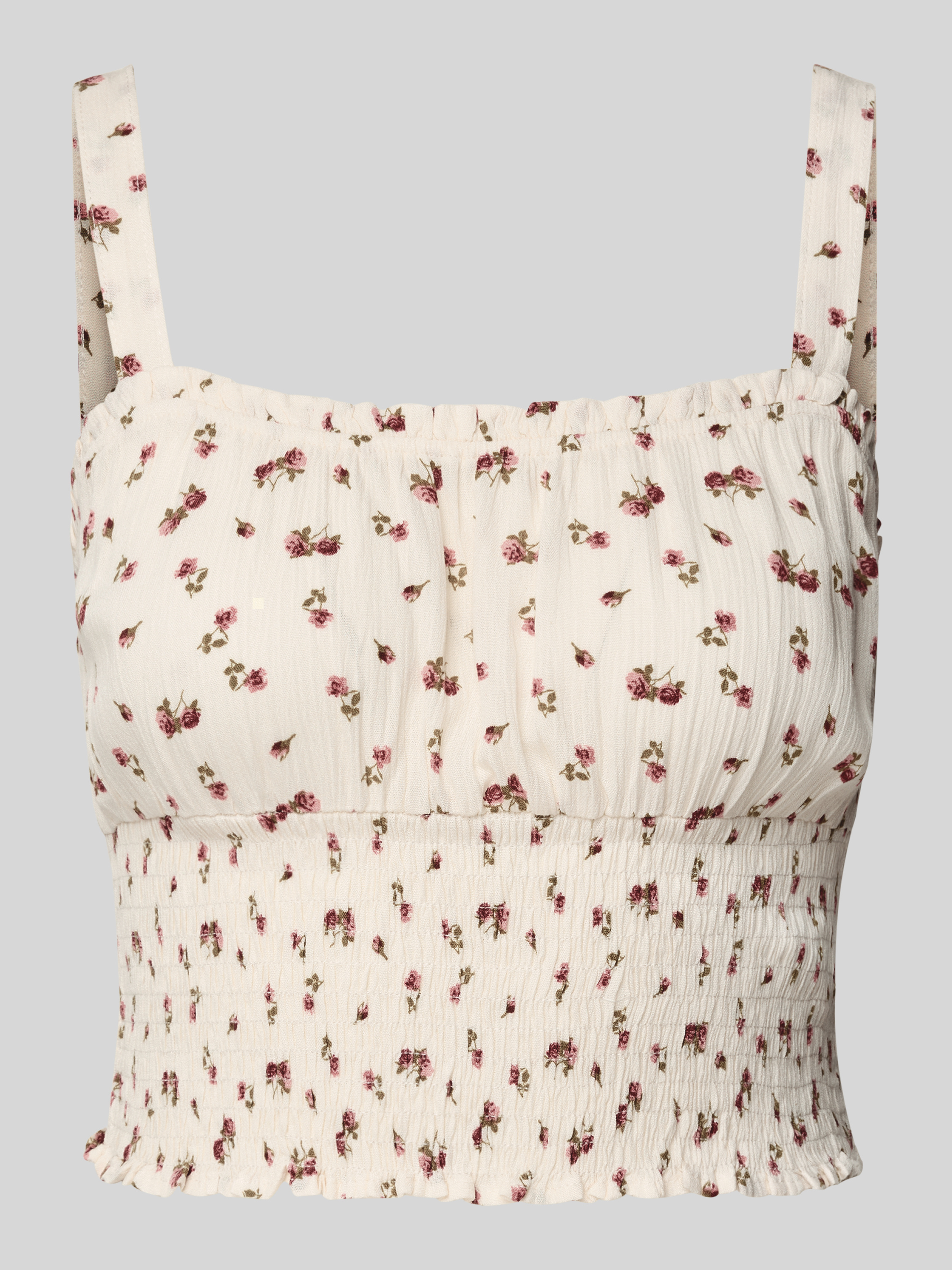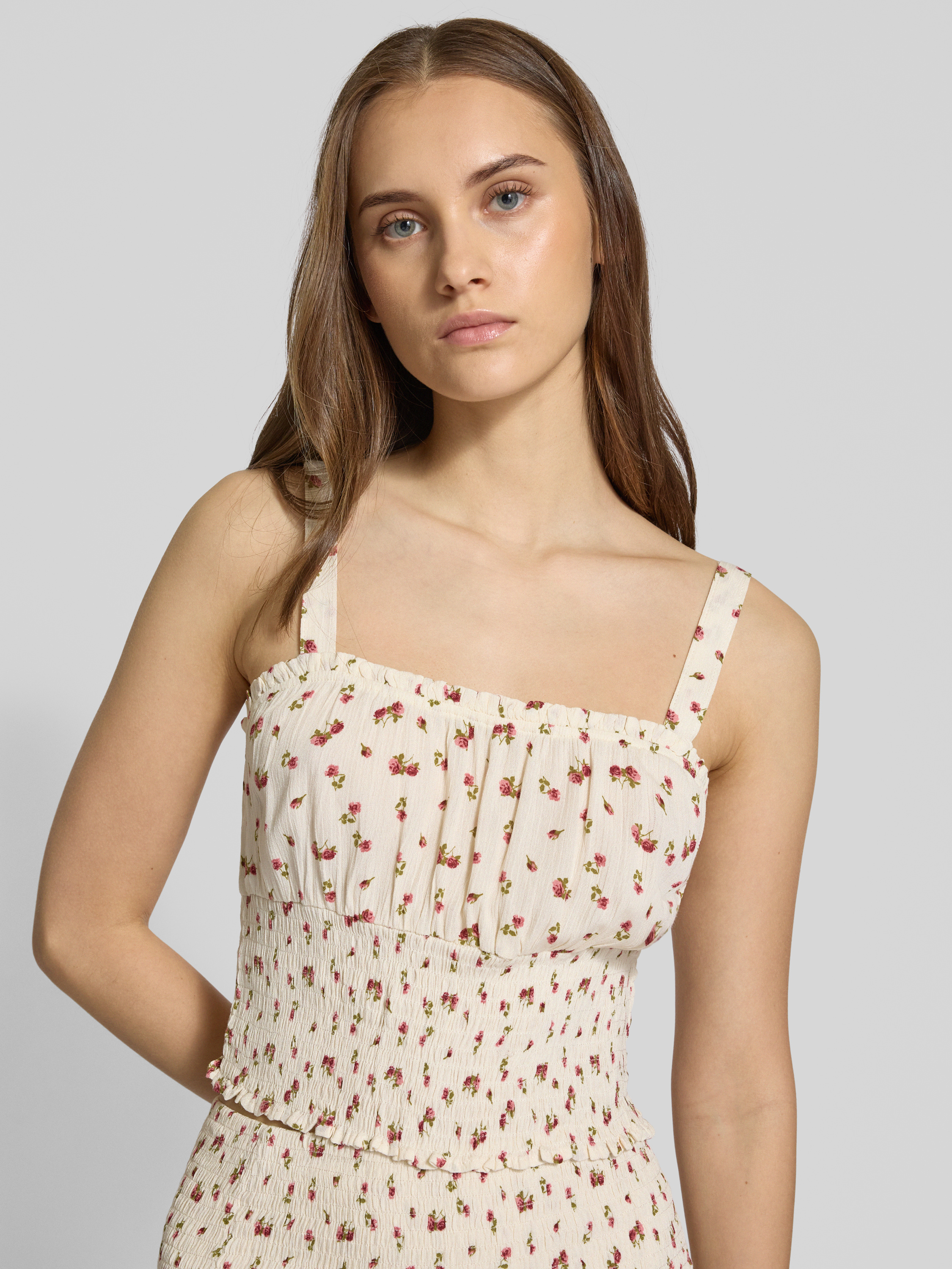 Korte top met smokdetails in beige