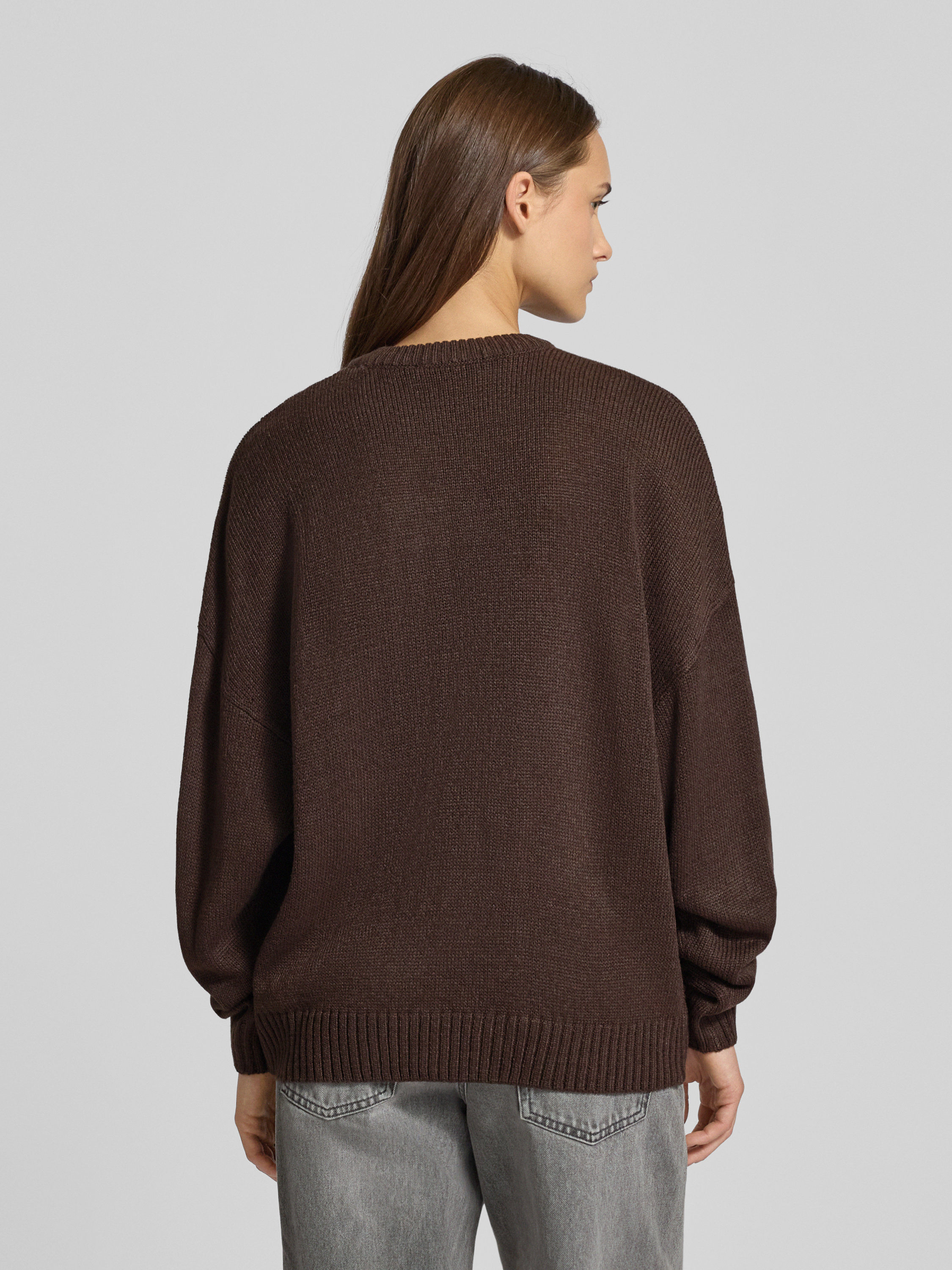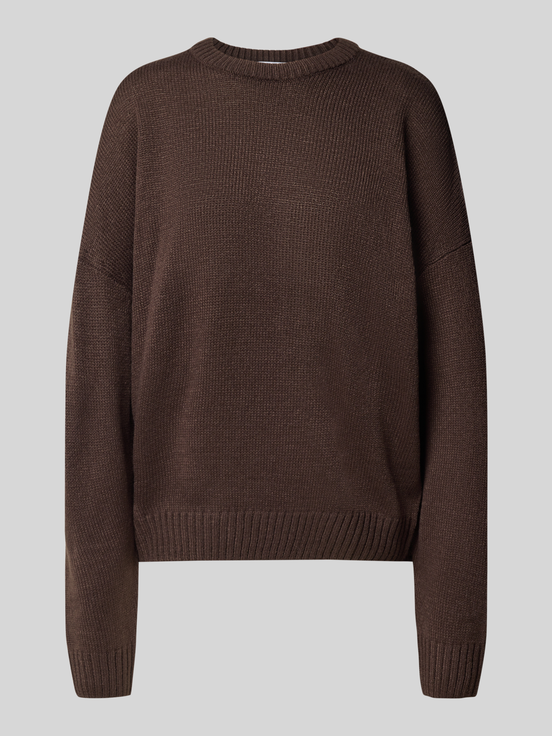 Oversized gebreide pullover met ribboorden in donkerbruin