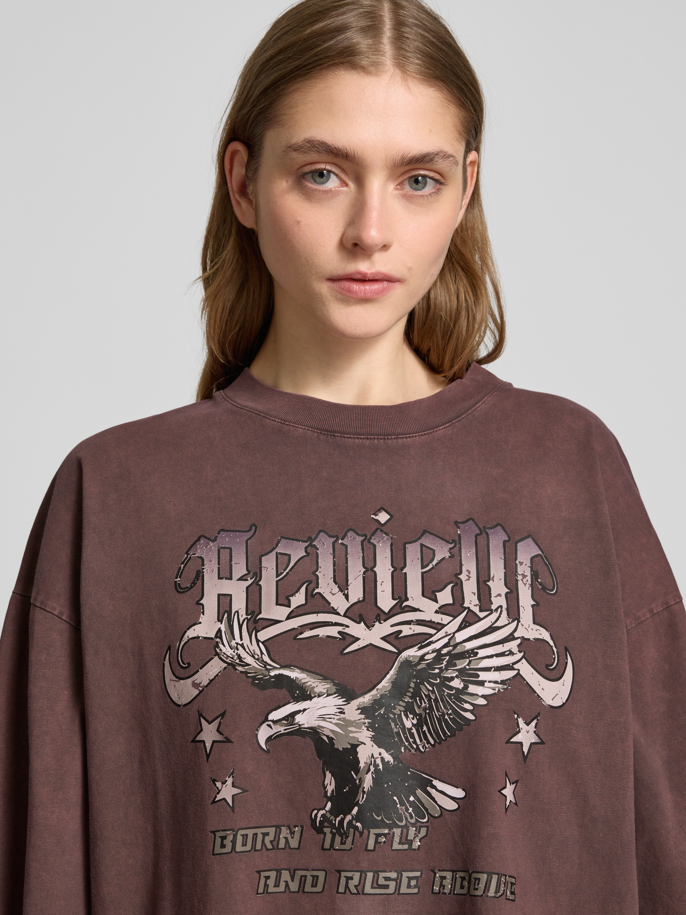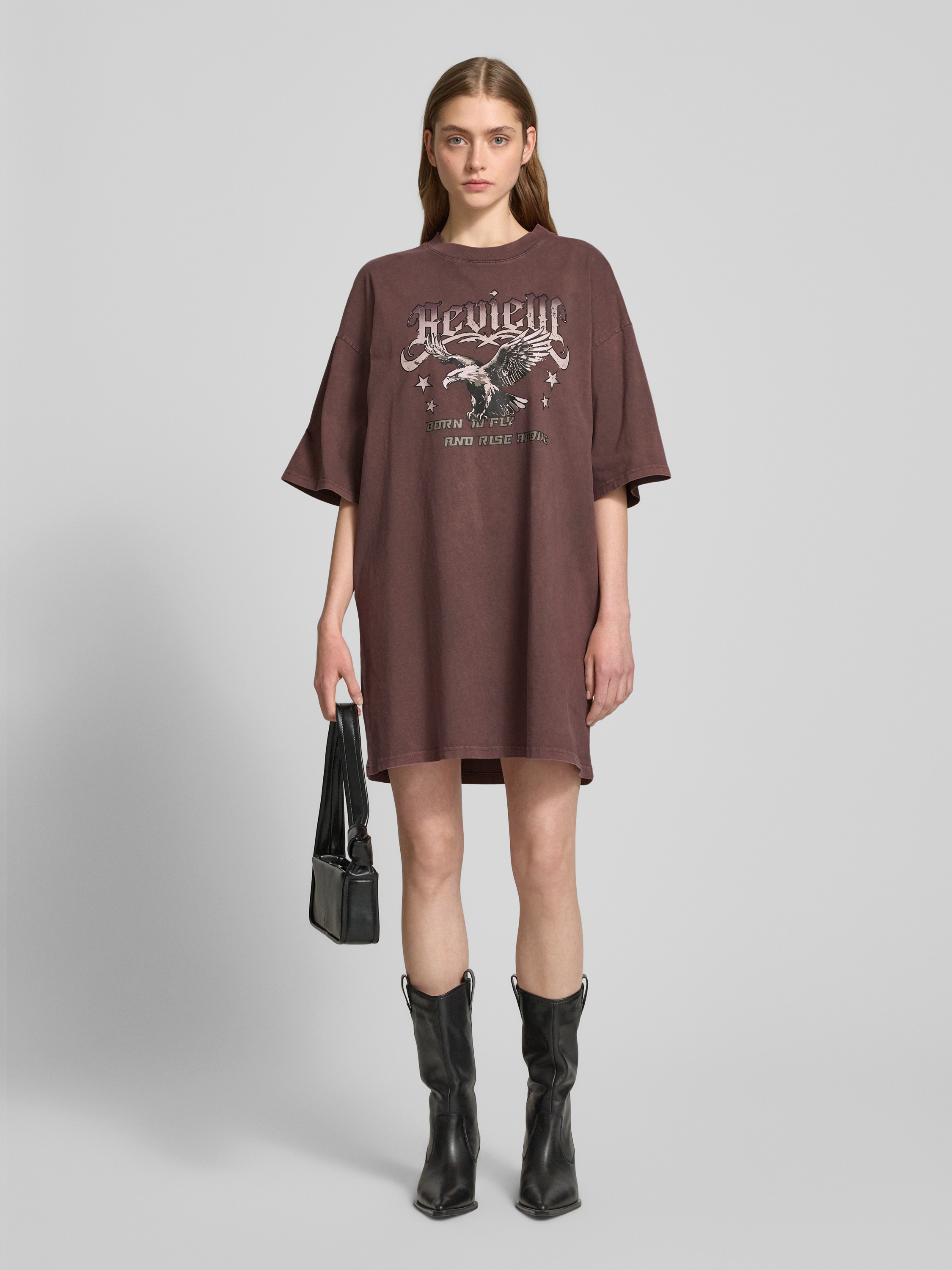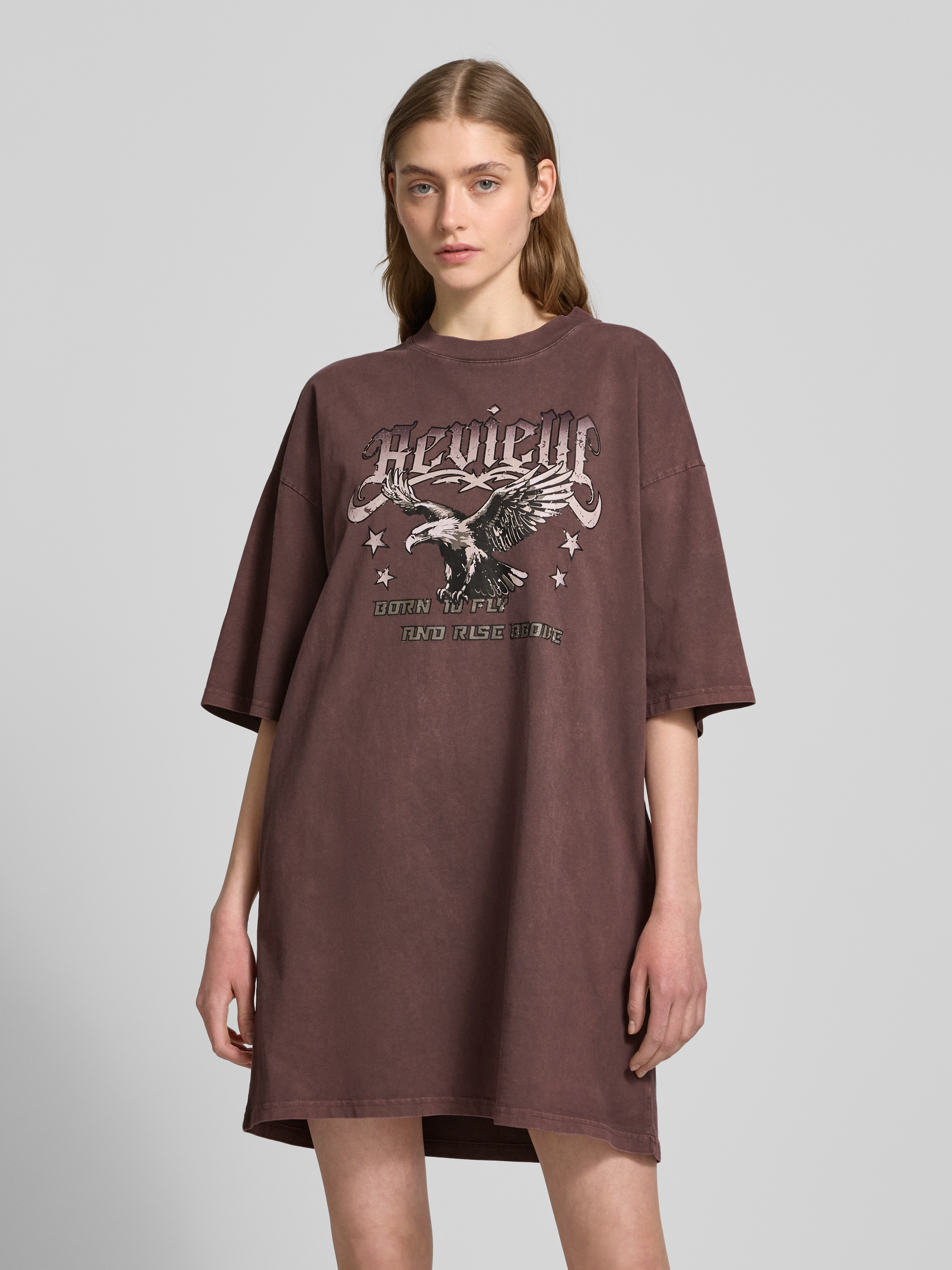 Oversized T-shirtjurk in minilengte, model 'ROCK' in donkerbruin
