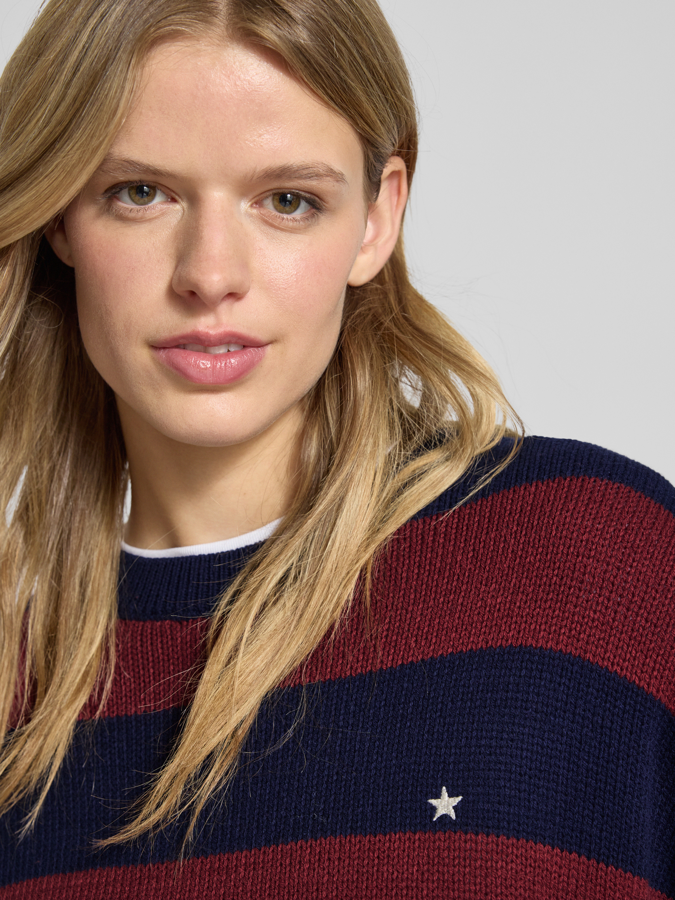 Relaxed fit gebreide pullover met streepmotief in bordeaux
